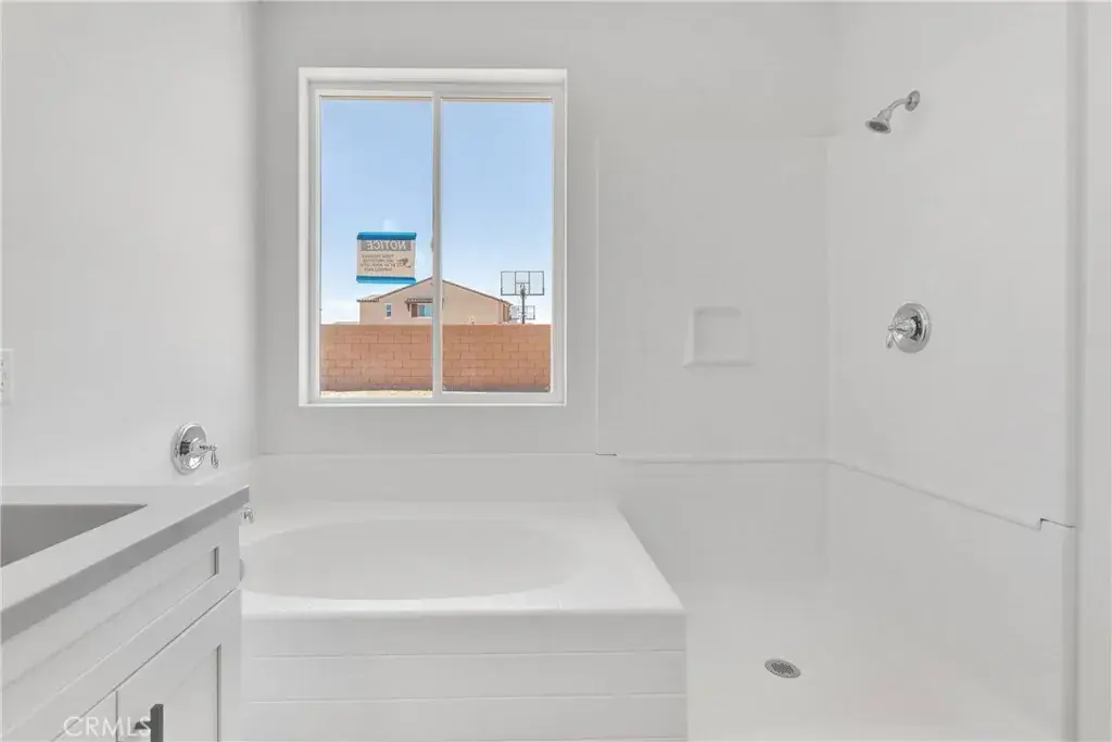 Step into the bright and open kitchen, complete with white shaker cabinets, elegant quartz countertops, and wood laminate flooring. Enjoy casual meals in the breakfast nook, surrounded by large windows that flood the space with natural light. With both a formal living room and a spacious family room, there’s plenty of room to relax, entertain, or work from home. The primary suite is a peaceful retreat featuring a double vanity, soaking tub, separate shower, and a walk-in closet. Energy-efficient features like a tankless water heater and solar panels (with lease or purchase options) offer long-term savings and sustainability. The backyard is a blank canvas ready for your personal touch and already includes block walls, wrought iron gates, and RV access. Conveniently located near freeway access, shopping, and more, this home offers everything you need and more—come take a tour and make it yours today!