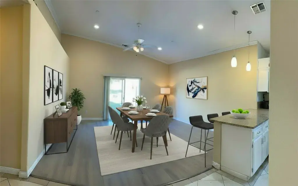 Easy walk to the park and easy commute to freeway access! Step inside and enjoy the open, inviting layout with high ceilings throughout the living areas. The bright kitchen opens to a spacious family room, creating the perfect spot for gathering and everyday living. The bedrooms are roomy and offer plenty of storage for the whole family. Out front you will find a beautiful, mature rose garden, and the back yard is a clean slate and ready for you to create your dream outdoor space. Recent updates include insulation, an upgraded AC unit, a tankless water heater, and leased solar panels to help keep energy cost down. All the important details have been taken care of- come see and imagine the final touches to make it your own! property is almost vacant so some of the pictures have been virtually furnished, Its doable and available!!
