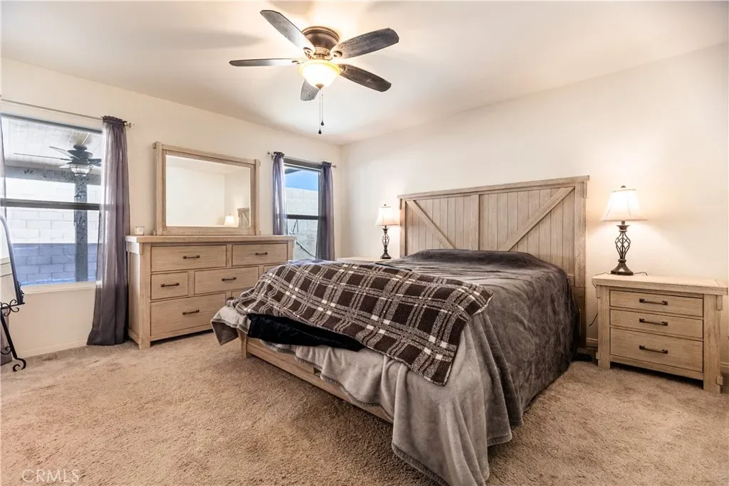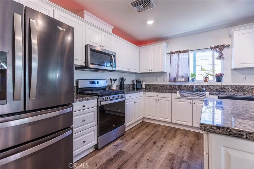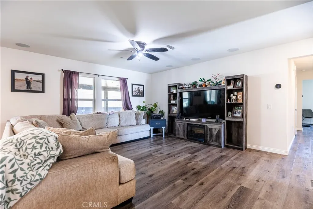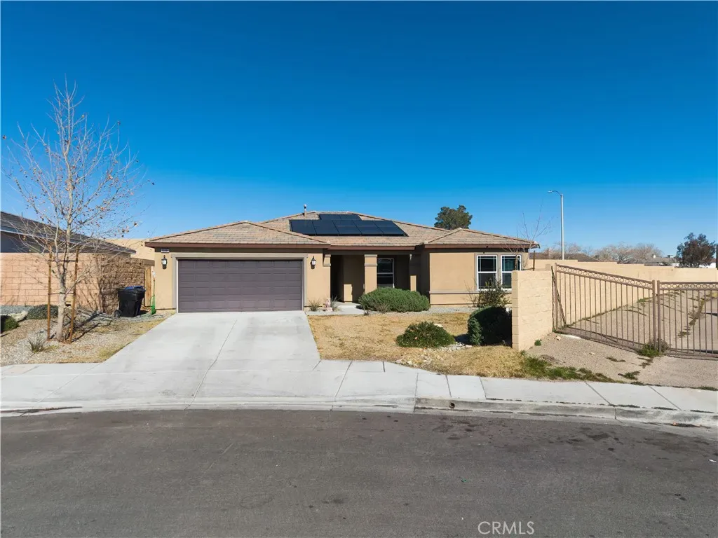 a 2-car garage, and modern comforts throughout. Step inside to find a flexible den and built in surround sound, a formal dining room, and an abundance of natural light filling every corner. The heart of the home is the upgraded kitchen, elegant quartz countertops, high end SPC flooring, a coffee bar area, and a large walk-in pantry—perfect for everyday living and entertaining. The open family room flows seamlessly from the kitchen, creating a welcoming space for gatherings. Enjoy the privacy of a split floor plan, with a generously sized primary suite that includes a double-sink vanity, walk-in closet, and a bright, relaxing atmosphere. Two additional bedrooms and bathroom offer a comfort and flexibility for family, guests, or a home office. Outside, the backyard features a 40 foot Alumiwood awning patio cover, newer big AC unit, corner lot with spectacular views, a block wall fencing all ready for your personal touch! Energy-efficient features include solar panels (with lease). Located close to freeway access, shopping, dining, and more, this move-in-ready home offers space, style, and convenience—a perfect place to call home!