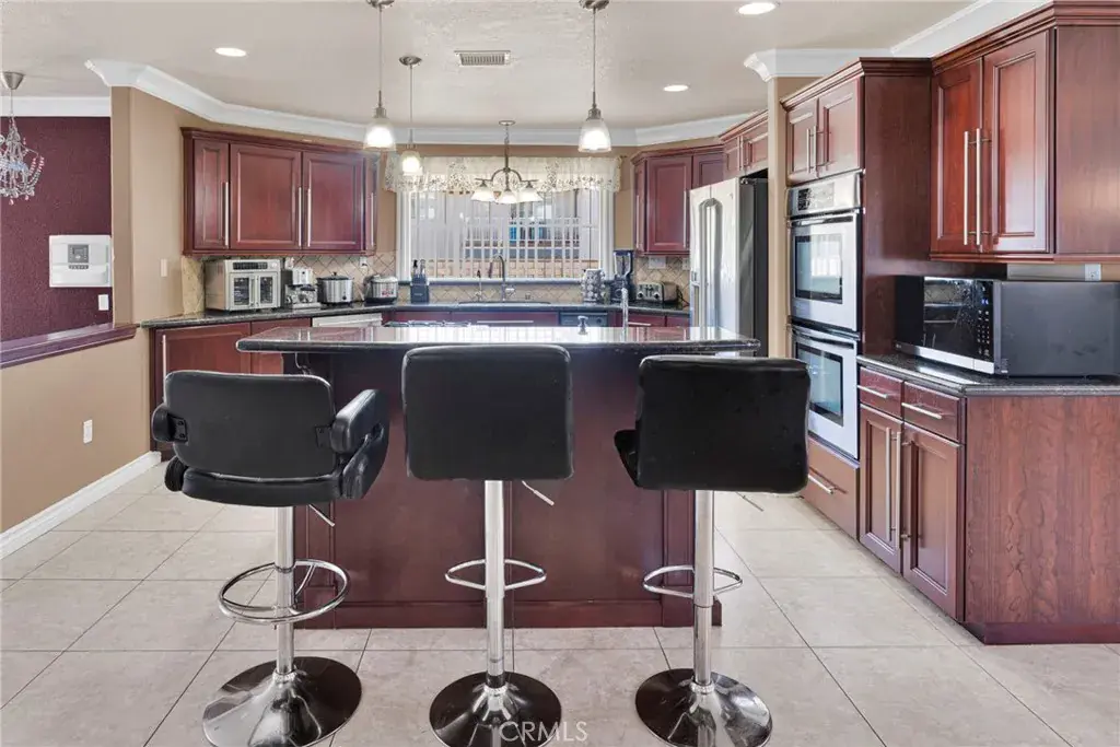 At the heart of the home is a gourmet chef’s kitchen featuring custom stainless-steel appliances, abundant prep space, extensive cabinetry, and a charming breakfast nook perfect for morning coffee. A dedicated kitchen office keeps busy households organized and on the go. Just steps away, the entertainer’s bar seamlessly connects the kitchen to the outdoor patio—creating the ultimate indoor-outdoor hosting experience.