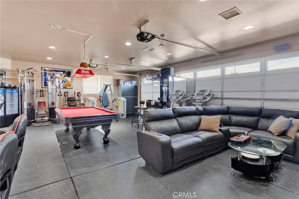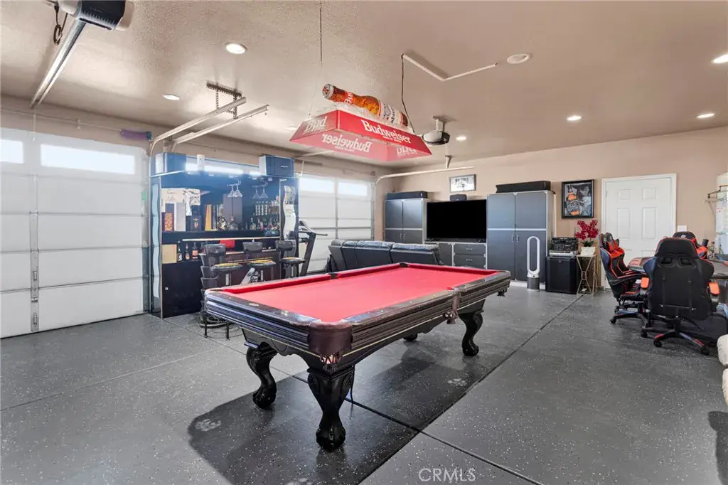 The garage has been transformed into a classic entertainment cave—ideal for game days, hobbies, or hosting unforgettable gatherings. Outdoors, the property continues to impress with extensive concrete hardscaping, RV and boat parking, and plenty of room for all your toys. Relax and unwind in the spa while enjoying spectacular sunset views across the valley.
