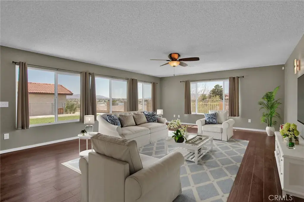 PRICE REDUCED!!! Rare hilltop, cul-de-sac home! Welcome to this gorgeous lake & mountain view home with RV parking in highly desired Spring Valley Lake(SVL). This remodeled 3-bedroom, 2-bathroom home is 1960 sf on a 7200 sf lot, with a perfect blend of style, comfort, and tranquility, for you and your family’s enjoyment. Upon entering, you’ll be greeted by a bright airy living space with ample natural light, high valued ceiling and fireplace, creating a warm and inviting ambiance. There is a formal dining room adjacent to the living room, perfect for special occasions. Enjoy the oversized family room, perfect for relaxation and entertainment. The newly remodeled kitchen is the heart of this floor plan, completely open to the family room and covered back patio. It features quartz countertops, new stainless steel appliances, along with a center island having lots of storage space, making meal preparation a breeze. The master suite offers a peaceful sanctuary with a private en-suite bathroom and mirrored closet doors. Master suite includes a sliding door out to the patio, to enjoy the beautiful views, while enjoying your morning cup of coffee. Two additional bedrooms and a second full bathroom. Recent upgrades include drought resistant front yard, remodeled kitchen and bathrooms with all new countertops, and freshly painted interior and exterior. Backyard is perfect for entertaining, new covered patio with ceiling fans for those beautiful summer nights with family and friends, and to enjoy the best view of the annual 4th of July fire work show on the lake! RV parking on the side of the home includes a 30 amp plug. The prestigious Spring Valley Lake community includes the benefits of access to a 200-acre lake perfect for water sports, a beautiful beach for those warm summer days, two family parks, dog park, and 14 fishing areas. The Community Center, offering gathering and monthly activities, is a place to meet neighbors and partake in holiday festivities. There’s also a 24-hour security patrol for peace of mind. Families seeking to elevate their lifestyle may join the Spring Valley Country Club within SVL, which offers an array of amenities: tennis and racquetball courts, a fitness center, and 18-hole golf course. The Country club also offers an Olympic-sized pool, Jacuzzi, and a restaurant with sports pub having music regularly on their patio.This house is a must-see and will not last!! ** Some photos are virtually staged to show endless possibilities!!