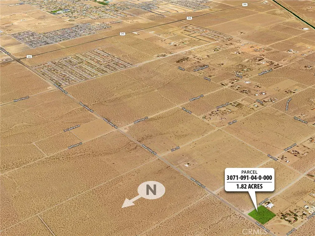 Unique opportunity to buy land on Bear Valley Road in the city of Victorville, CA. This 1.82 acre lot is the SW corner of Bear Valley and Salem Road, 1.6 miles West of HWY 395. This is a great investment as it’s in the immediate path of expansion for Victorville. Many homebuilders and investors own land in the area. This 1.82 acre parcel is zoned R-1 B1/2. Up to three single family homes can be built on this lot. (Buyer’s responsibility to conduct due diligence with the city of Victorville.) Or, if your plan is to build your dream home on a spacious lot located on a paved road, don’t miss out on this parcel! A city water main is located under Bear Valley Road. Electric runs adjacent to the lot. (Buyer’s responsibility to conduct due diligence to confirm the availability of utilities for the property.) Seller financing available.