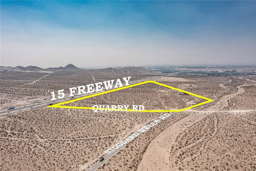 Unlock the potential of this high-visibility, approx. 71.87-acre parcel located on Stoddard Wells Rd in Victorville. Strategically positioned along the I-15 Freeway near the proposed E-220 interchange, this property offers incredible long-term value for investors and developers alike. All required environmental studies for the E-220 project have already been completed and approved — saving you time and money. With direct access via Quarry Rd and exceptional exposure to northbound and southbound freeway traffic, this is a rare chance to secure a piece of land in the path of future infrastructure and regional growth. Buyer to verify zoning, utilities, and potential uses.