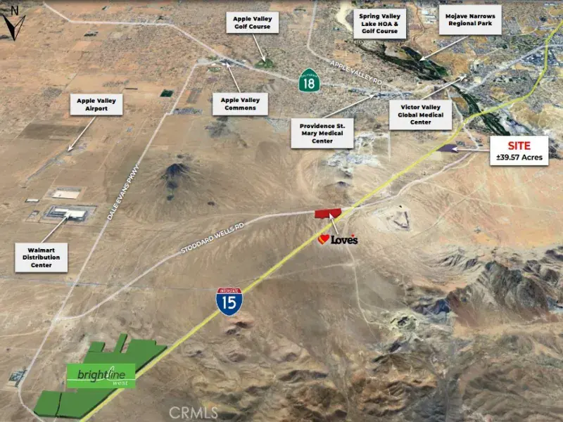 An expansive ±39.57-acre parcel is now available in the City of Victorville, zoned MU-2, offering flexible opportunities for commercial and/or multi-family development with potential for up to 30 residential units per acre. With approximately ±1,650 feet of frontage along the high-traffic I-15 corridor, the property enjoys prime exposure. Convenient access is provided by two nearby I-15 interchanges, making it easily reachable from surrounding areas. Additionally, the upcoming Brightline West Victor Valley station, expected to be completed by summer 2028, will be just a 10-minute drive north at the Dale Evans Pkwy. and I-15 interchange. Utilities, including sewer and water, are conveniently located at the southwest corner of the site. Buyer to verify all information contained herein.