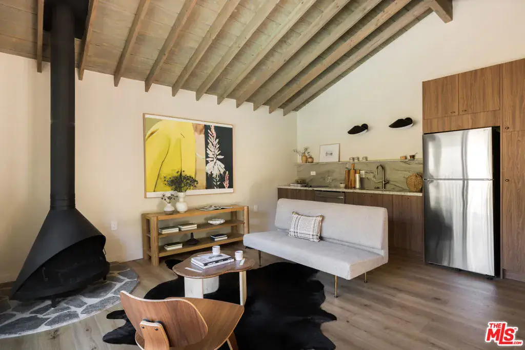A rare View Park retreat designed for elevated California living. Thoughtfully reimagined by Vein Design and expertly built by CCS Construction, this private compound blends refined design with effortless livability behind an understated exterior.The property unfolds into a custom 4-bedroom, 4-bath main residence, a detached fully equipped pool house, and expansive, beautifully landscaped grounds featuring an outdoor kitchen, multiple lounging areas, and a sparkling pool.At the center of the home, the living room anchors everyday life and entertaining alike. Sun-filled and expansive, it features wide-plank wood floors and a striking sculptural plaster fireplace, creating a warm focal point that seamlessly connects the kitchen and opens directly to the outdoors perfect for indoor-outdoor gatherings and relaxed California living. The adjacent kitchen is designed to impress, offering professional-grade stainless steel appliances, handcrafted cabinetry, and a generous quartzite peninsula ideal for hosting. Just beyond, a substantially sized pantry, linen storage, and a tucked-away laundry room provide exceptional functionality rarely found in homes of this caliber. Custom millwork leads down the hallway to two bedrooms with a shared Jack-and-Jill bath, each thoughtfully designed with built-in desks overlooking the street. A stylish powder room with a statement cork wall adds a memorable design moment for guests. The primary suite is a true sanctuary, opening to a private flagstone patio ideal for morning coffee or evening unwinding. The spa-like bath and thoughtfully designed walk-in closet offer both beauty and ample storage. Downstairs, a private en-suite bedroom with its own entrance offers flexibility for guests, work-from-home needs, or income potential. An oversized two-car garage provides direct access to the home. Outdoors, the pool house delivers a kitchenette, Malm wood-burning fireplace, and full bath, opening to a sun-drenched deck. Host BBQs, lounge poolside, pick lemons and figs, or enjoy family time on the manicured lawn. Multiple terraces and built-in seating make every corner feel intentional and inviting. Curated, distinctive, and designed with lifestyle in mind, this exceptional estate is ready to welcome you home. Main house: 2,381 sq ft | Pool house: 343 sq ft (per floor plan)