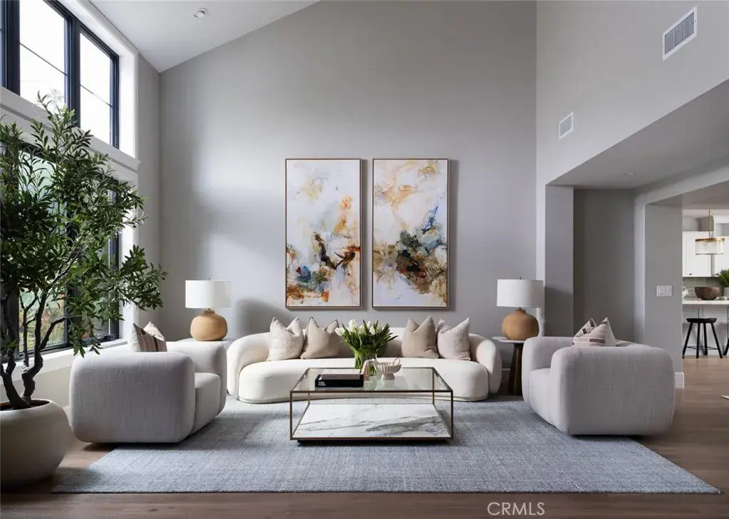 Newly rebuilt in late 2022 from the studs out and completely reimagined and expanded, this fabulous new home in Villa Park is truly unparalleled. Move-in ready, the residence offers the rare and enviable combination of newer construction in an established neighborhood, with mature landscaping and a prime corner homesite of about .46 acres adding to its undeniable appeal. Bathed in natural light that shines through an abundance of large windows, the open design showcases a foyer and living room with double-height ceilings, a contemporary staircase and a lofty interior balcony above. The grand dining room is certain to be a favorite place to share memorable occasions, and it opens to the backyard, creating a seamless indoor/outdoor vibe. Equally open and stylish, the on-trend kitchen displays white Shaker cabinetry, a large island with bar seating, quartz countertops, subway tile backsplash, a stainless steel pro-caliber range, and a built-in cabinet-matched refrigerator. The kitchen flows effortlessly to a family room that is distinguished by a high ceiling, backyard access, and a stone fireplace flanked by custom built-in shelving and cabinetry. Sophisticated and modern, the home’s aesthetic is embellished with warm white and gray hues, wood-plank flooring and chic LED lighting. Five bedrooms plus office/gym and four and a half baths are featured in approximately 4,005 square feet, including ensuite bedrooms, a main-level bedroom, an office, and an upscale-modern primary suite with a vaulted ceiling, freestanding tub, separate shower and two sinks. Grounds are impeccable, with low-water plantings, a tranquil pathway, and an attached three-car garage with a large paver-finished driveway in the front yard. The rear yard reveals a brand-new pool and spa, a large patio, verdant lawn, a lower level with fragrant orange trees, and a beautiful pavilion with a built-in BBQ bar. Excellent schools serving K-12 are nearby, and parks, shopping centers, trails, and restaurants are close to home.