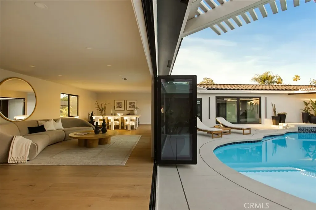 Photos do not capture the experience — best appreciated in person. Intentionally designed around single-level living, privacy, and seamless indoor-outdoor connection, this approximately 4,500-square-foot residence centers on a rare private courtyard that brings light and openness into the heart of the home. At the center of the layout is a stunning courtyard pool — a true indoor-outdoor retreat framed by expansive glass and dramatic bifold openings.