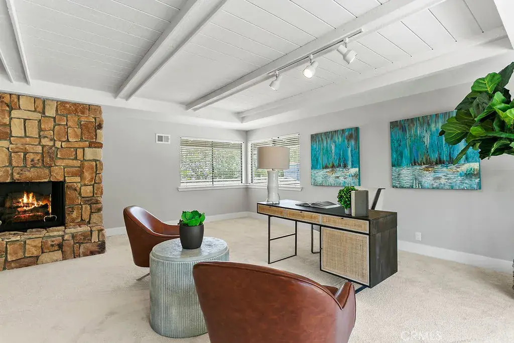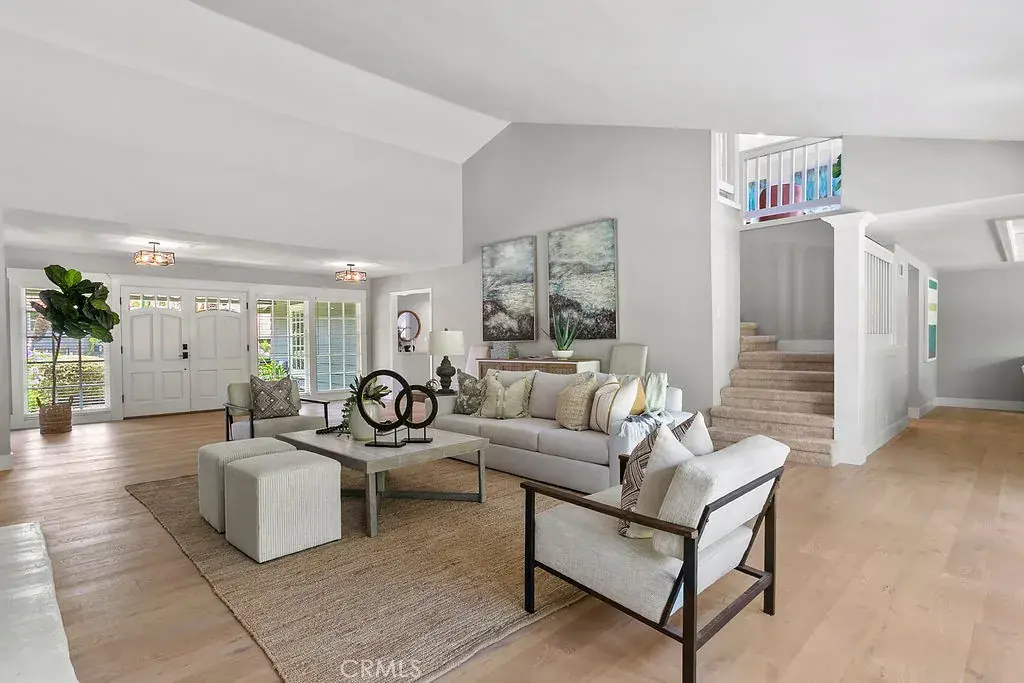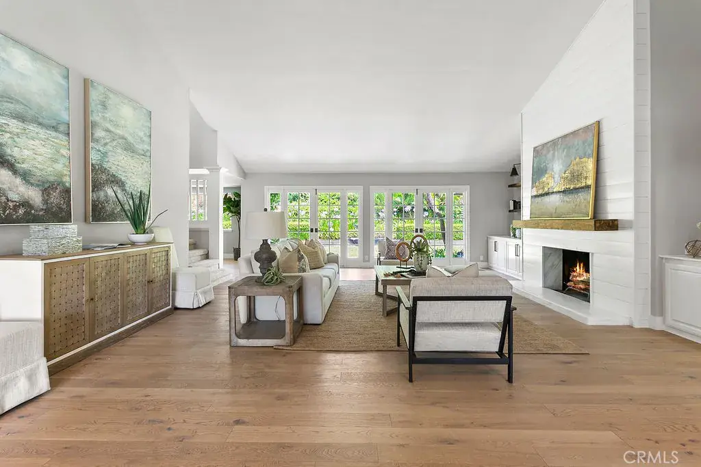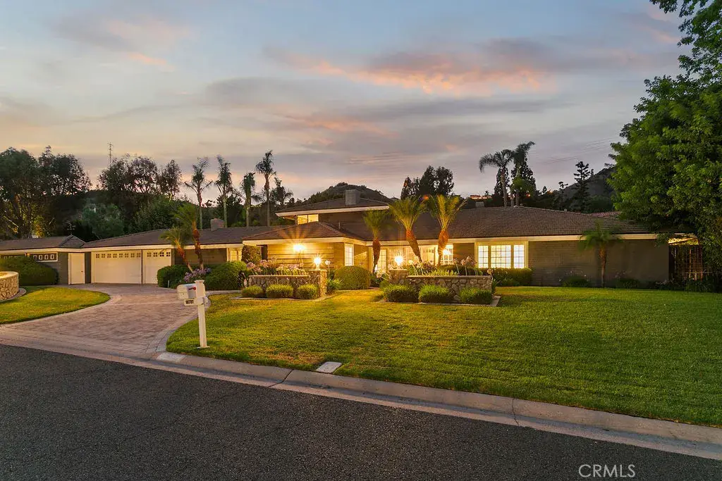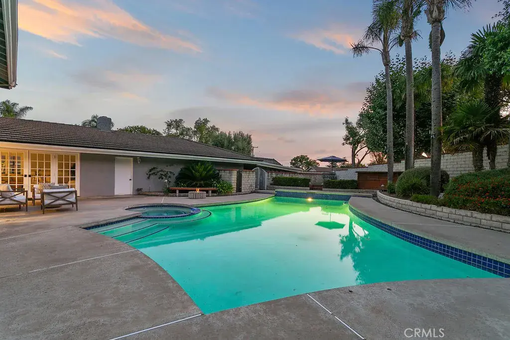 Your luxury dream has arrived with this sprawling Villa Park estate. Tucked away in the private rolling hills of Villa Park, this home has the perfect blend of traditional feel and modern utility. Situated on an expansive half-acre lot and featuring river rock hardscape, lush landscaping, and a circular driveway, the property offers stunning curb appeal and an unforgettable first impression. Step through custom, side-lit double doors into a light-filled and functional entryway. Soaring cathedral ceilings, trendy hardwood floors, and an expansive living room view set the tone immediately. The living room has an impressive custom finished fireplace framed with built in shelving and hutches on either side. French Doors along the back give this entry experience a light and airy feel. Kitchen is a culinary dream with moveable butcher island, custom two-tone cabinets, quartz counters, farm sink, walk in pantry, SS appliance package, and views of the sparkling pool. The kitchen also boasts a custom-built in hutch with glass inlaid uppers, and plenty of room for a kitchen nook table. Family room is once again, spacious and cozy with cathedral exposed beam ceiling details, white block finished fireplace, wainscotting, built in wet bar, hardwood floors and French door wall with views of the sparkling pool and spacious backyard. The primary bedroom is open and inviting with brick finished fireplace, French door wall, and access to a resort like primary bath. The primary bath is complete with spacious walk-in closet, custom cabinets, dual vanity, cosmetics counter, floating shelves, walk in shower, and bath yard access for after swim washes. Secondary baths have been finely appointed with custom cabinetry, massive soaking tub, elegant hardware and faucets finishes, and dual vanity sink in hall. This home lives like a true single story with all living area on the main level. It does enjoy a second story bonus room with a private balcony and stone finished fireplace. The dining room is such a treat with elegant ceiling detail, rear location for privacy, and oversized windows for plenty of light and scenic exterior views. The backyard is your own peaceful retreat complete with lush, manicured landscape slope, sparkling pool, raised deck, firepit, and quiet tranquil atmosphere. Other features include ceiling fans, spacious 3 car garage, huge attached and covered storage area, cathedral ceilings in common areas, idyllic quiet location, spacious laundry, and so much more!