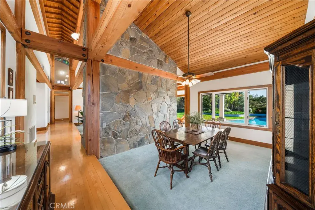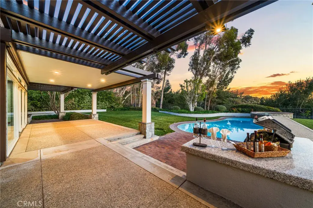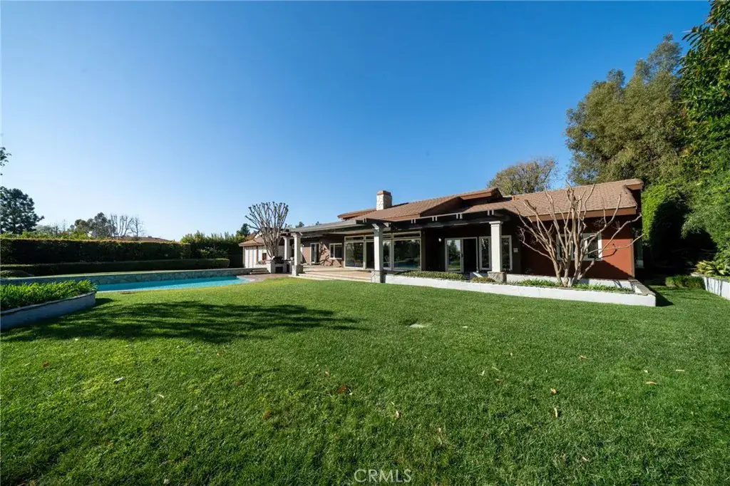 Villa Park Jewel…… a custom 3-bedroom 4-bath pool home on a one-acre lot. A garage featuring an oversized 3-car garage, plus an office and a guest room or craft room(s). There is also a convenient greenhouse/potting shed connected to the rear of the garage. Direct access from the garage into the house to make the Costco runs easy. The kitchen is a chef’s delight with a center island with a downdraft JennAir electric range and a produce sink. custom white quartzite stone counters featuring upgraded stainless bosch dishwasher, microwave appliances with vaulted wood ceilings. There is an eating area in the kitchen with a view of the breathtaking backyard, outdoor bbq area ,and pool with spa. formal dining room and formal living room with a slate floor to ceiling fireplace and a wall of windows to take advantage of the park-like rear yard. Two-story high wood ceilings with lots of upper windows and a custom skylight. Formal entry with double doors to enter the open floorplan. 3 bedrooms with extra closets, private ensuite baths, office, and retreat areas. This flexible floor plan allows you to design the layout that best fits your needs. The primary bedroom and bath include a soaking tub, a shower, and a large walk-in closet with ample storage. Several cedar-lined closets. Zoned heating and air conditioning to save money. The large 1-acre lot has a fruit orchard that sits in the front allowing the house to be tucked away in the orange groves of Villa Park, the way it was in the 60’s when the town was incorporated. The long, winding driveway accommodates multiple cars, both entering and exiting the garage. The rear yard features the sparkling pool and raised spa that cascades into the pool with an endless view of the lush green lawns. It would take decades to recreate the mature growth on this lot. Convenient 3/4 tile bath that serves as a guest bath and a pool shower before you enter the house. Trouble-free tile roof offering years of service. Custom-built and designed for the Villa Park lifestyle!
