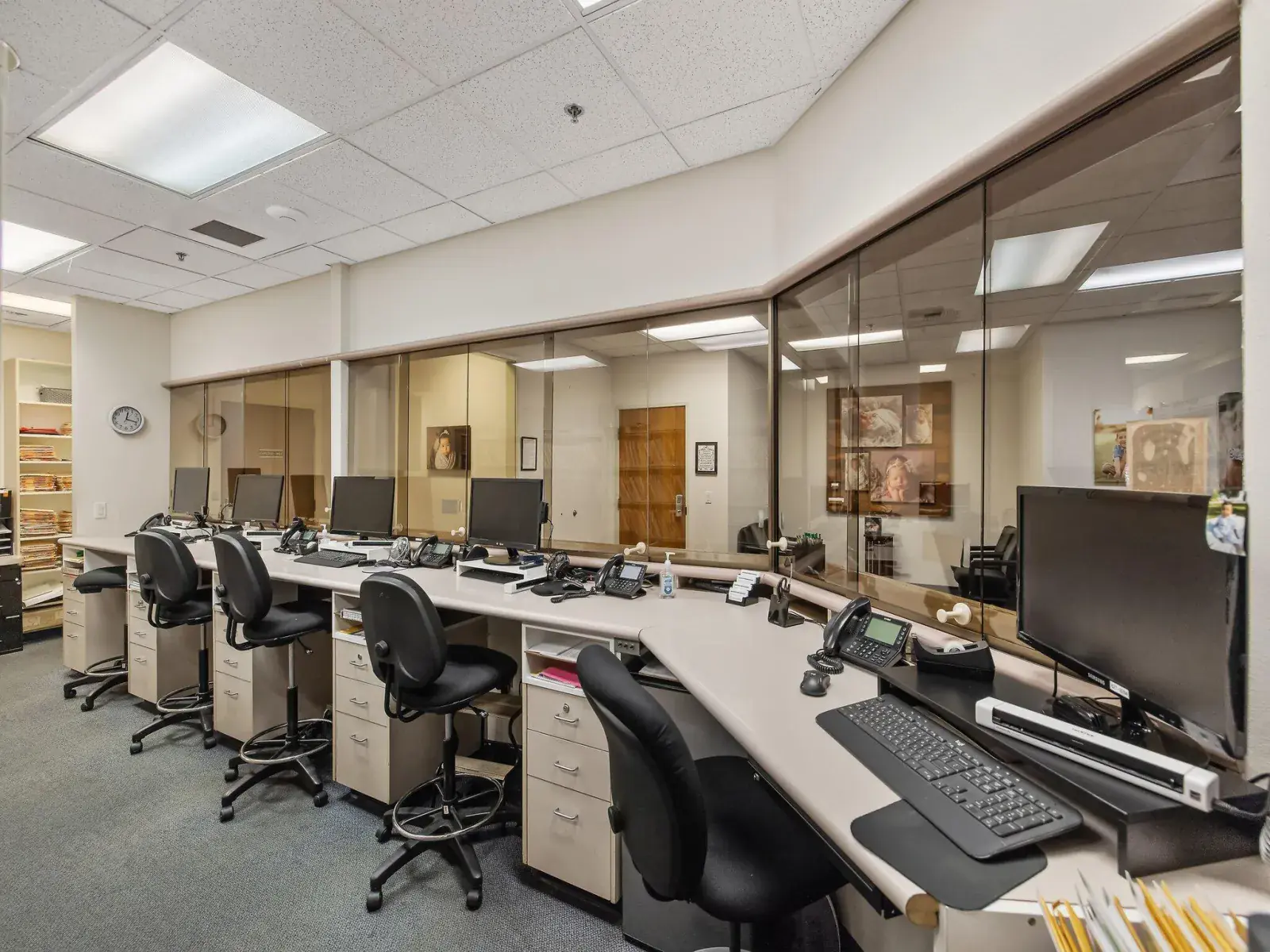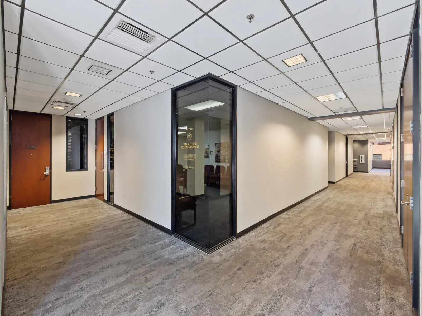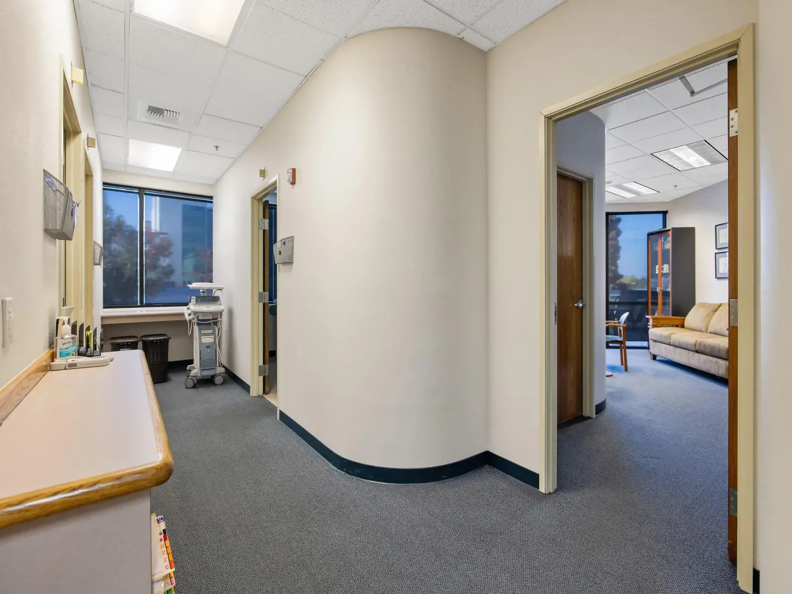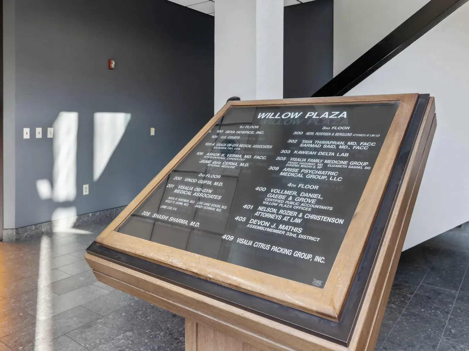 Positioned on the second floor of the renowned 100 Willow Plaza building in Downtown Visalia, this modern medical office offers an unparalleled opportunity for healthcare providers. Located directly across from Kaweah Health Medical Center, it ensures prime visibility and accessibility within a vibrant, service-rich community. The thoughtfully designed space features a spacious reception and waiting area, four private offices (including two physician offices with private restrooms and a shared balcony with stunning views), two nurse’s stations, a consultation and procedure room, an employee break room, six restrooms, ample storage, and a business office. Building amenities include a striking atrium entrance, bridge access to an adjoining parking structure with designated spaces available, common restrooms, and elevators. With a functional turnkey layout and breathtaking views, this exceptional office is ready to elevate your growing practice. Contact today to schedule a tour.