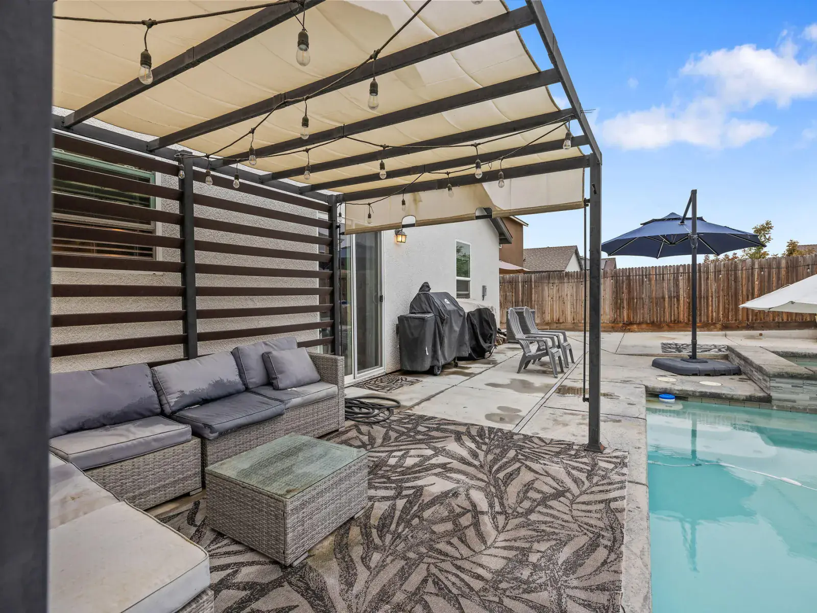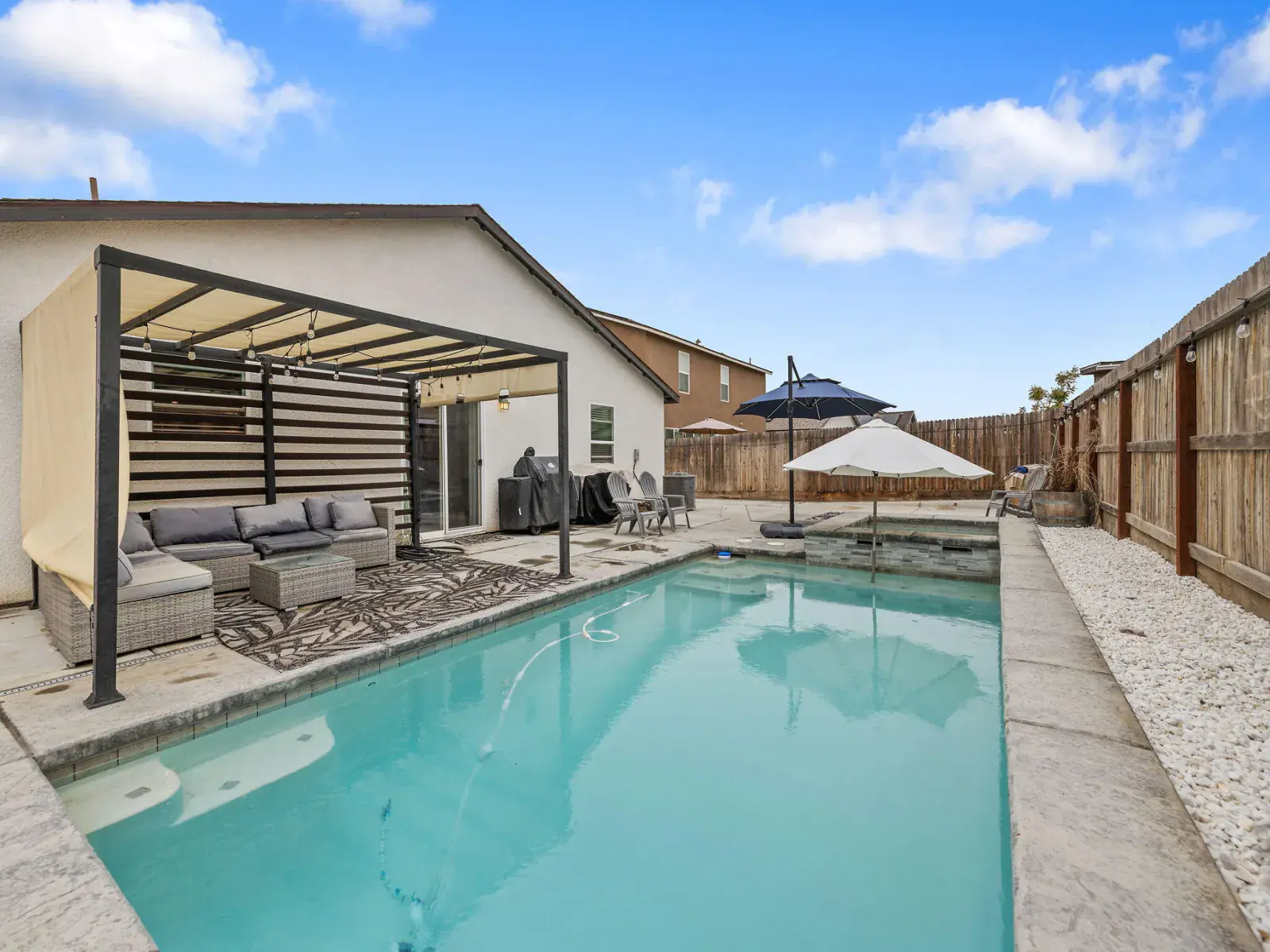 Welcome to this stunning four-bedroom, three-bath home with OWNED solar that feels practically brand new! Built in 2021, this modern residence sits on an over sized lot with plenty of space and features RV parking for added convenience. The open and inviting floor plan includes a desirable Jack and Jill bathroom, making it perfect for families or guests. Step outside to enjoy a beautiful backyard with a sparkling pool and spa, built in 2022, ideal for relaxing and entertaining!! Located close to excellent shopping, dining, and everyday conveniences, this home offers modern comfort, style, and a fantastic location.