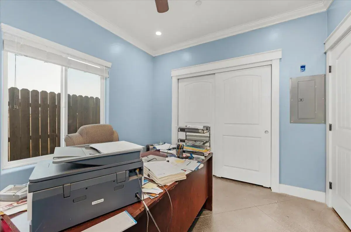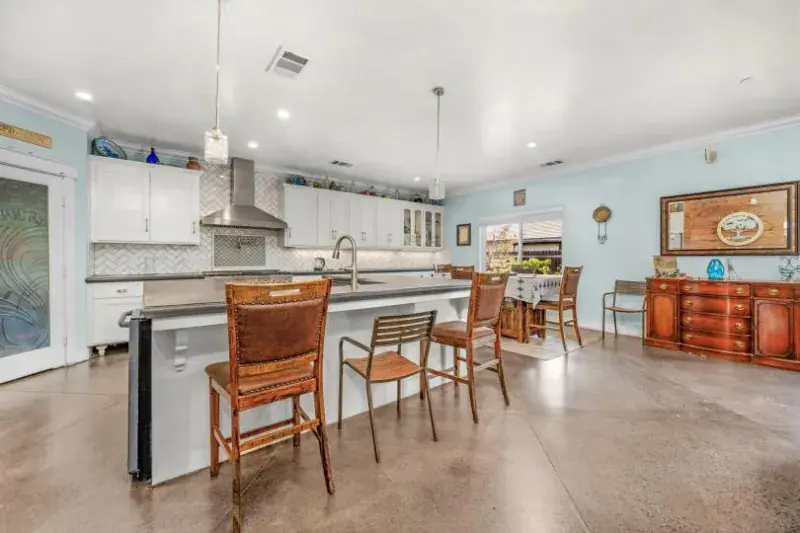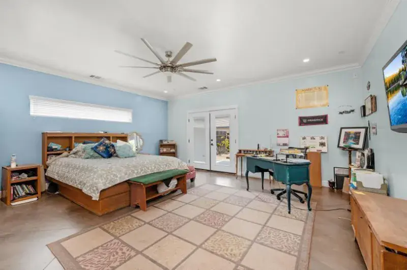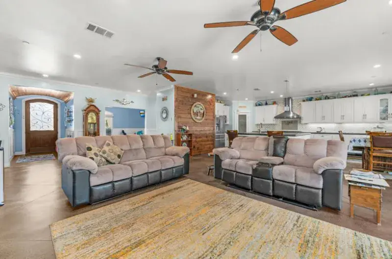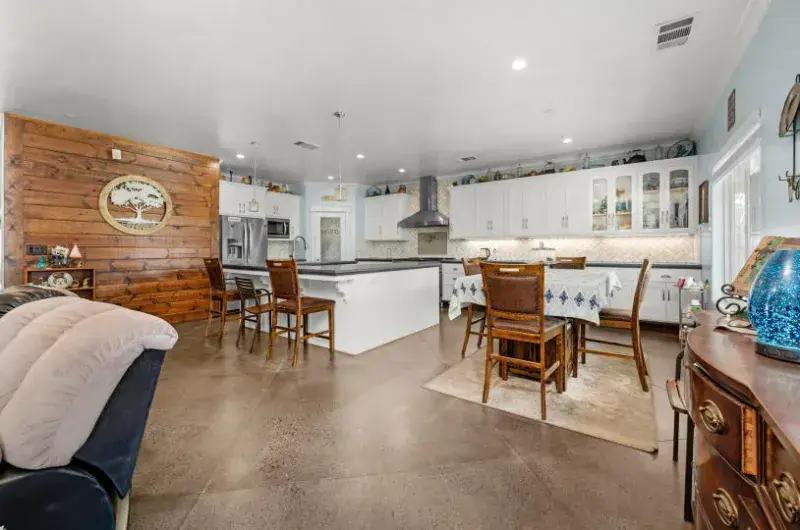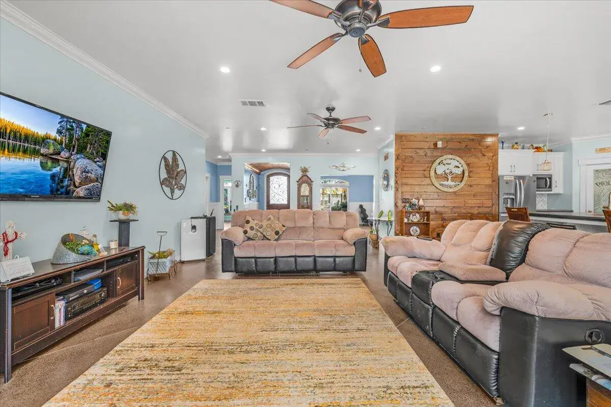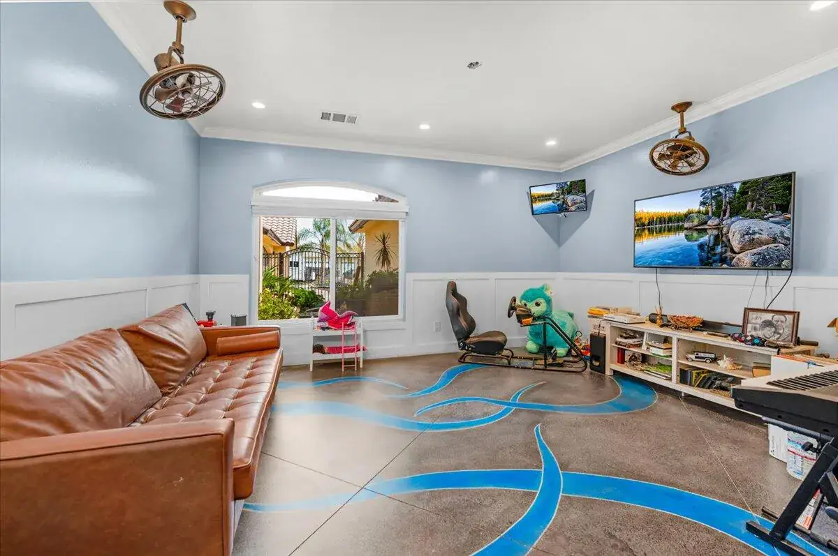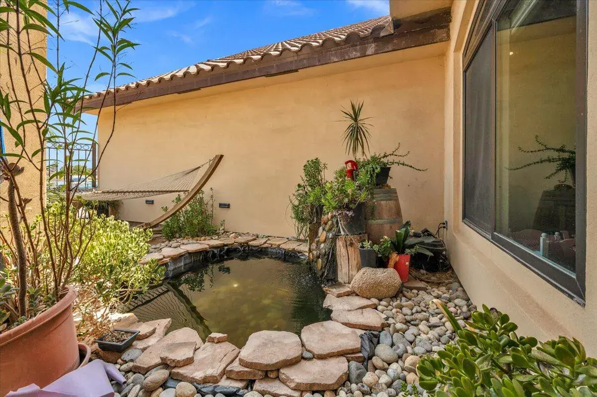 Car lovers and hobbyists will appreciate the 6-car garage plus RV parking with full hookups–a rare find! Step into your own retreat featuring a tranquil water feature, ideal for relaxing and entertaining.