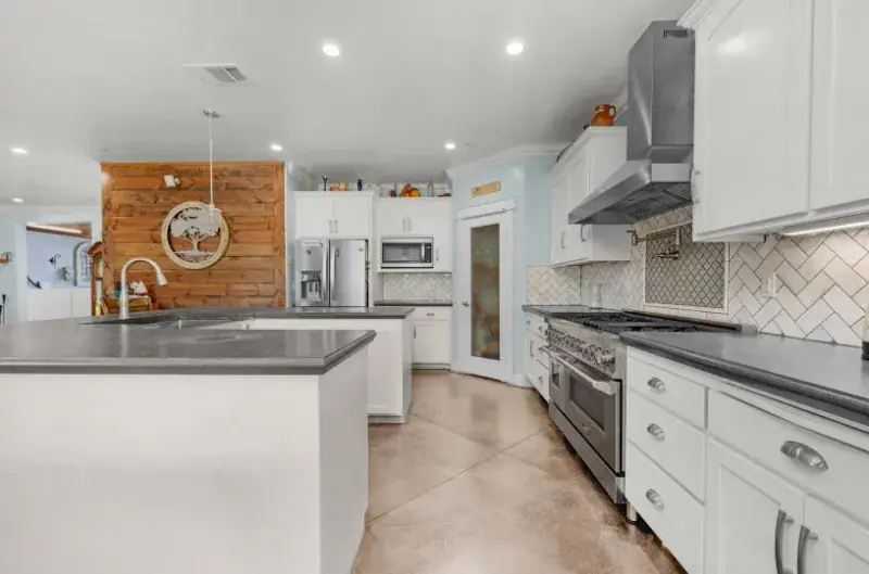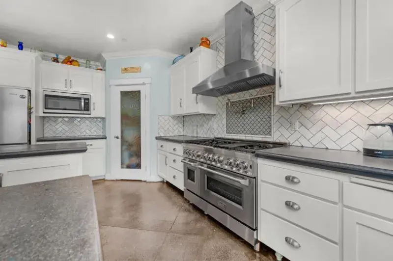 Chef’s Dream kitchen with large center island is highlighted by a 6-burner with griddle Zline stove, with a convenient pot filler faucet over the range, perfect for creating family meals and entertaining guests. Kitchen cabinets feature soft close drawers and under cabinet lighting. Solid core doors, upgraded insulation, and modern electrical updates showcase the quality craftmanship that went into this build.