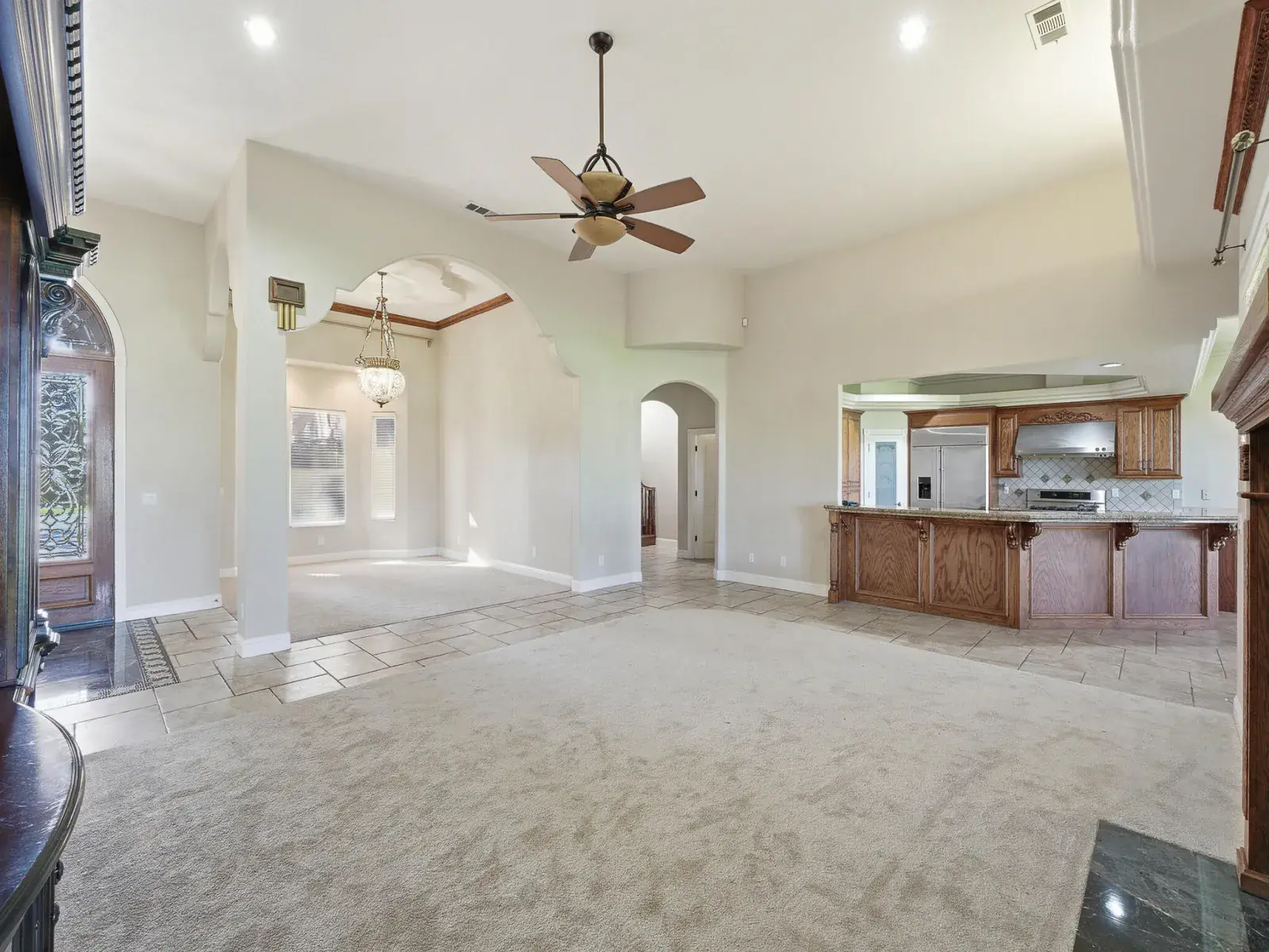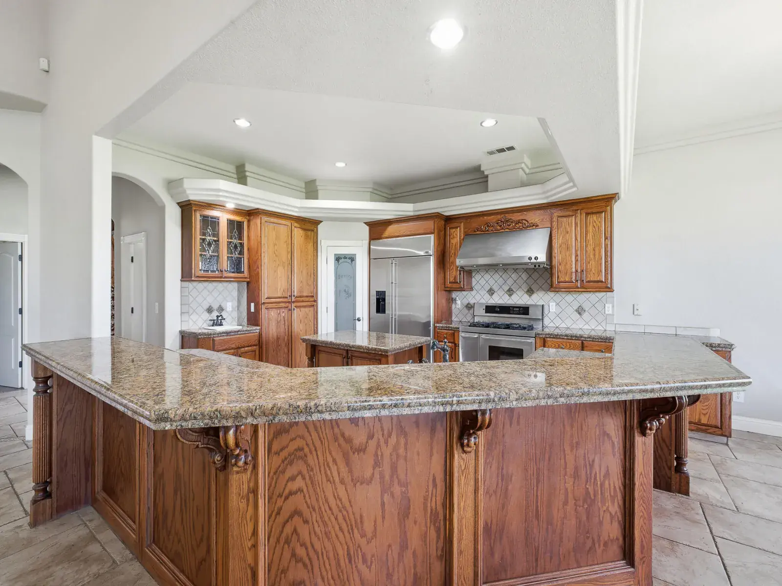 Breakfast Bar, Ceiling Fan(s), Crown Molding, High Ceilings, Kitchen Island, Open Floorplan, Recessed Lighting, Stone Counters, Tray Ceiling(s), Vaulted Ceiling(s), Pantry