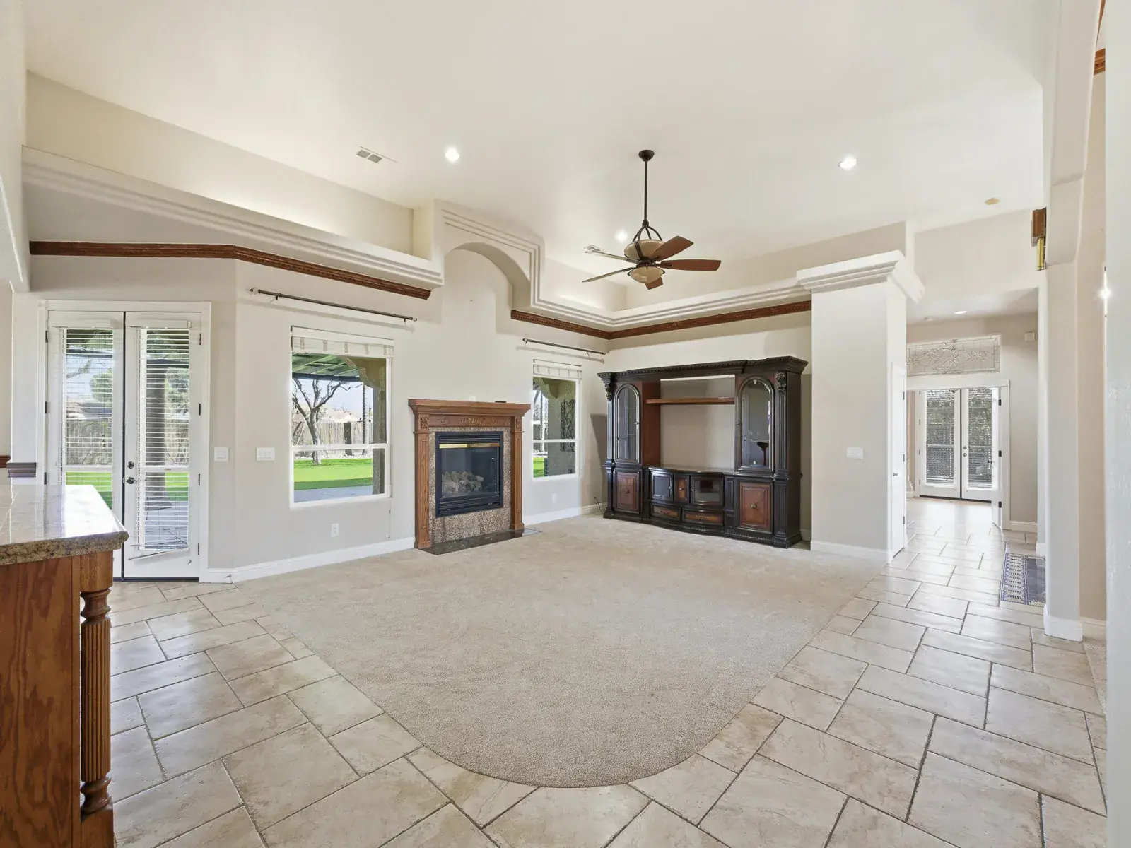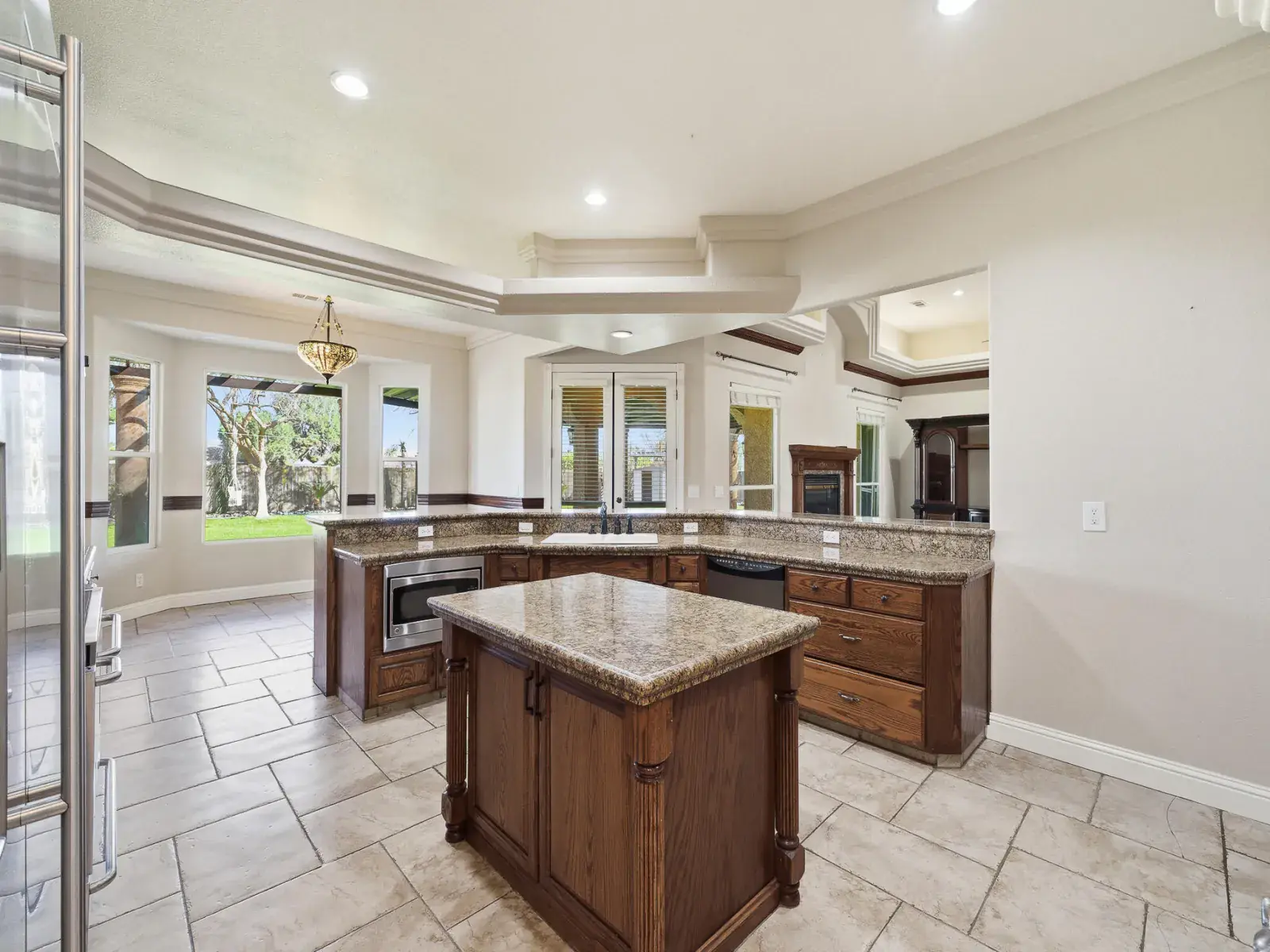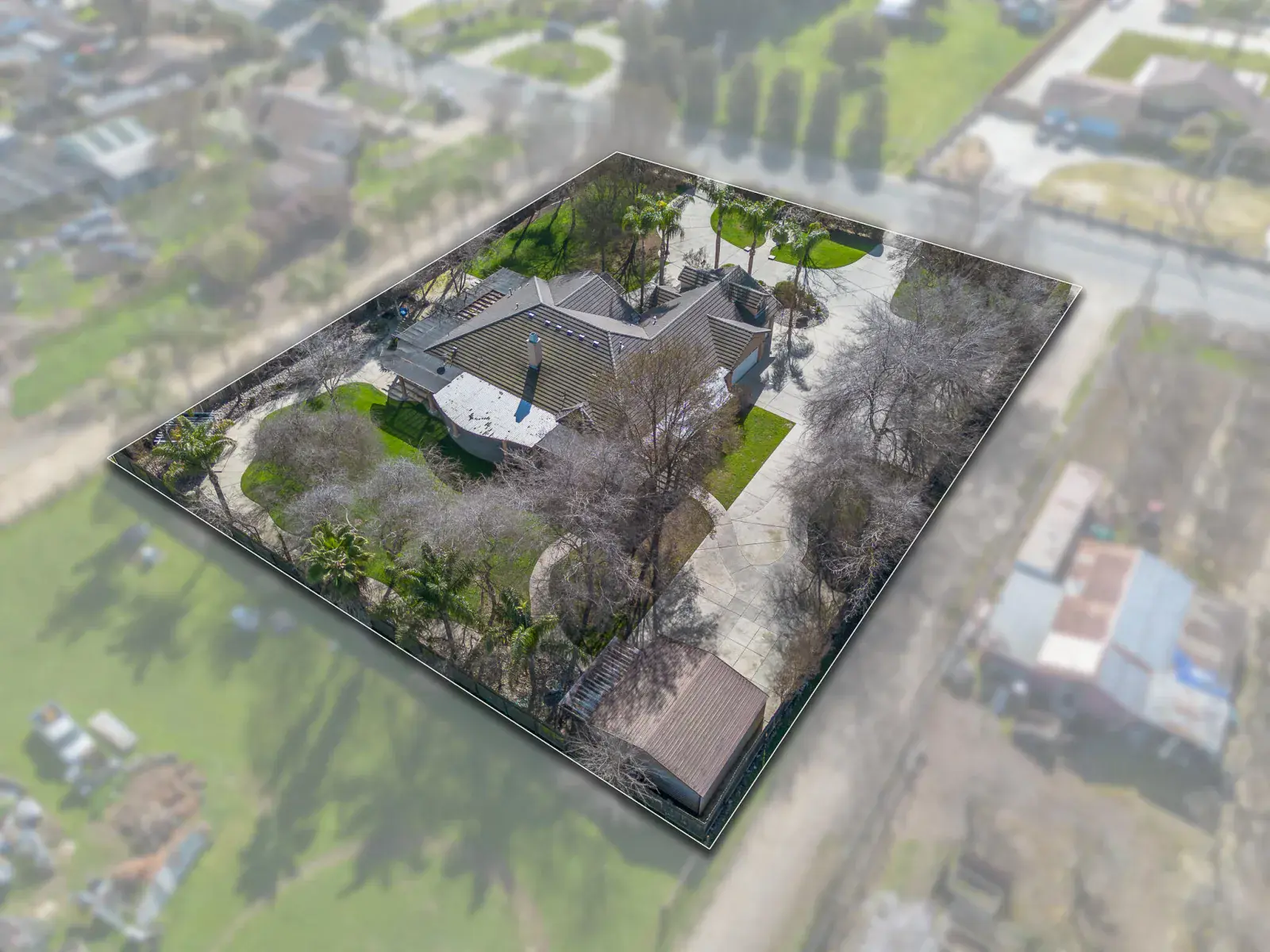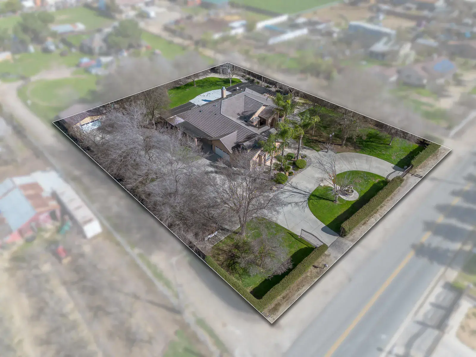 Welcome to a rare custom estate offering space, privacy, and timeless elegance on an expansive gated lot in one of North Visalia’s most desirable and tightly held areas. Surrounded by custom homes on large parcels, this exclusive neighborhood rarely sees properties come to market, with many sales occurring privately off market, making this a truly unique opportunity. From the moment you enter through the private drive, you’re greeted by lush mature landscaping, a circular driveway, and a stunning fountain centerpiece that sets the tone for this impressive property. The beautifully designed home features a grand covered entry with decorative columns and double glass doors, leading into spacious living areas filled with natural light. Outdoors, the property truly shines with park like grounds, wide open lawn areas, mature shade trees, and extensive concrete pathways ideal for entertaining, relaxing, or enjoying peaceful estate living. A large covered patio spans the rear of the home, creating seamless indoor outdoor flow for gatherings year round. Car enthusiasts, hobbyists, or those needing extra storage will appreciate the additional detached garage/shop building, providing incredible flexibility for equipment, projects, or recreational vehicles. The long private driveway, multiple parking areas, and gated access offer both convenience and security, all while being just minutes from town amenities yet tucked within a quiet, prestigious North Visalia setting.