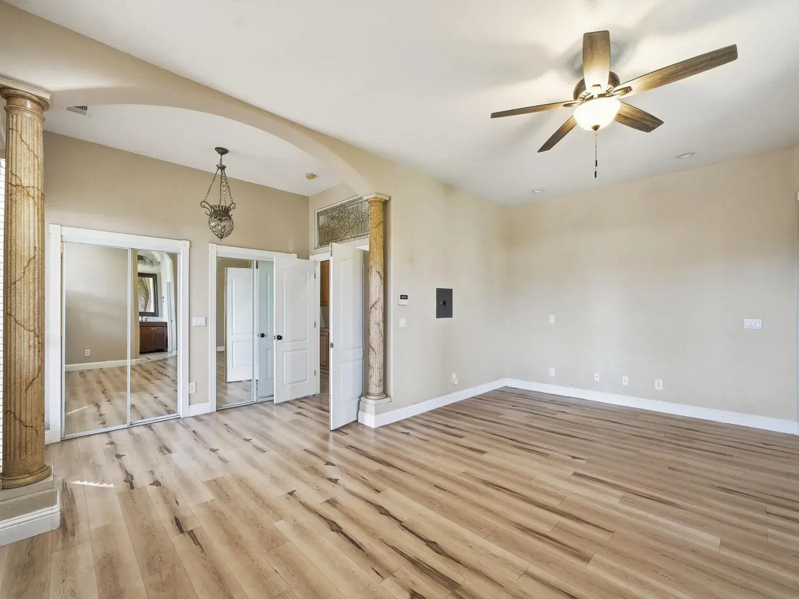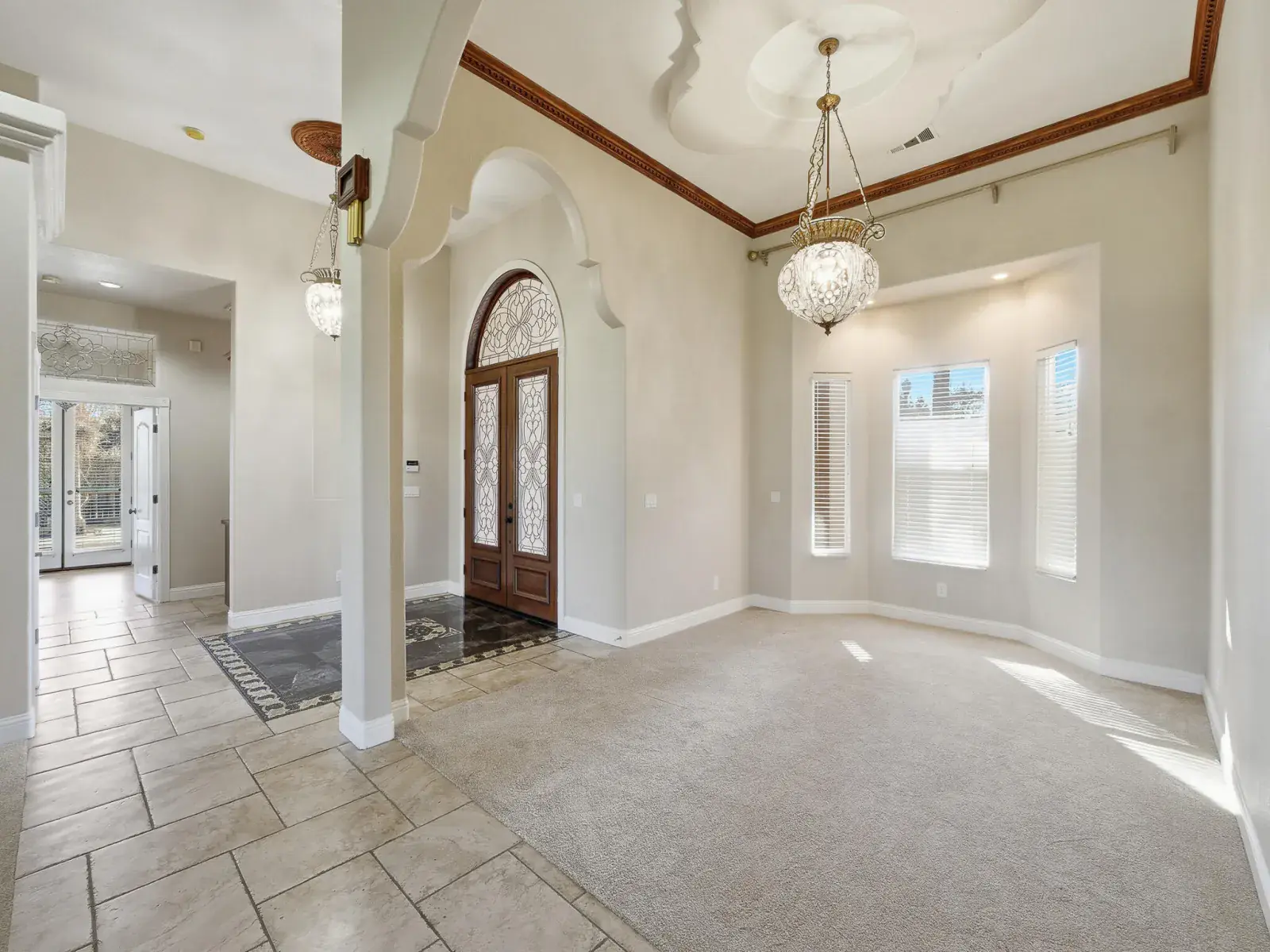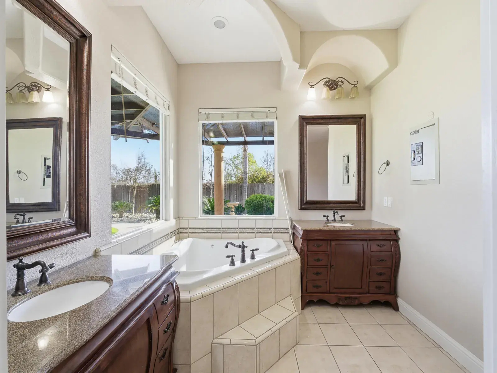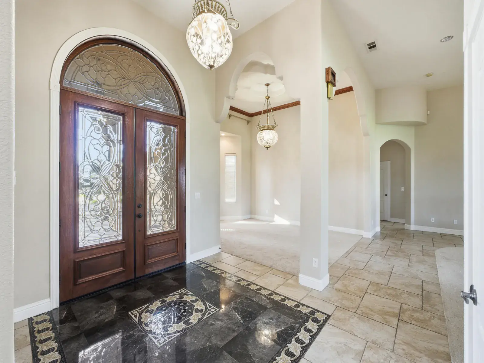 Welcome to a rare custom estate offering space, privacy, and timeless elegance on an expansive gated lot in one of North Visalia’s most desirable and tightly held areas. Surrounded by custom homes on large parcels, this exclusive neighborhood rarely sees properties come to market, with many sales occurring privately off market, making this a truly unique opportunity. From the moment you enter through the private drive, you’re greeted by lush mature landscaping, a circular driveway, and a stunning fountain centerpiece that sets the tone for this impressive property. The beautifully designed home features a grand covered entry with decorative columns and double glass doors, leading into spacious living areas filled with natural light. Outdoors, the property truly shines with park like grounds, wide open lawn areas, mature shade trees, and extensive concrete pathways ideal for entertaining, relaxing, or enjoying peaceful estate living. A large covered patio spans the rear of the home, creating seamless indoor outdoor flow for gatherings year round. Car enthusiasts, hobbyists, or those needing extra storage will appreciate the additional detached garage/shop building, providing incredible flexibility for equipment, projects, or recreational vehicles. The long private driveway, multiple parking areas, and gated access offer both convenience and security, all while being just minutes from town amenities yet tucked within a quiet, prestigious North Visalia setting.