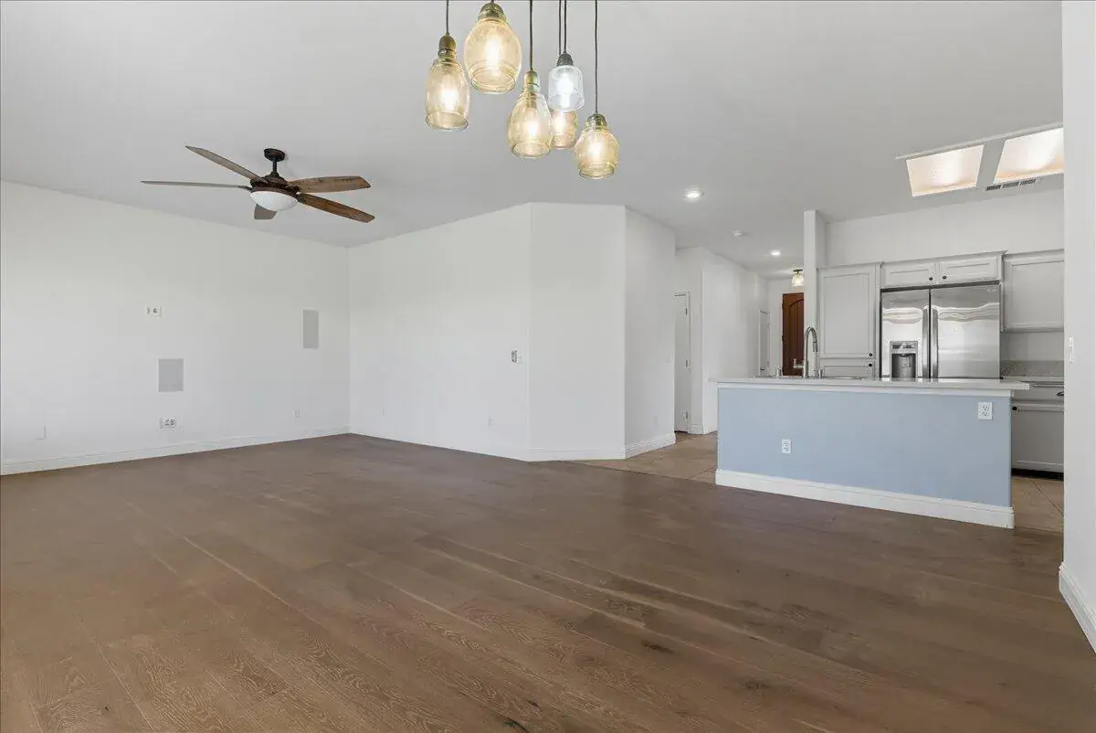 Step inside to find freshly painted interior and exterior spaces, central air conditioning, ceiling fans in every room, and a functional floor plan that includes a dedicated laundry room. The living room features built-in surround sound speakers, while the kitchen shines with brand-new quartz countertops, a new stainless steel sink, updated cabinetry, and a new garbage disposal. Appliances include a dishwasher and stainless steel refrigerator.