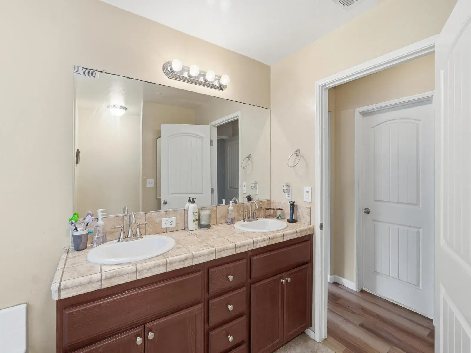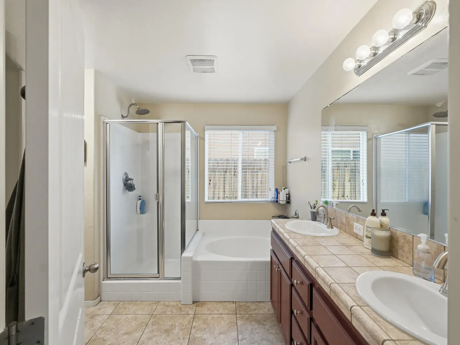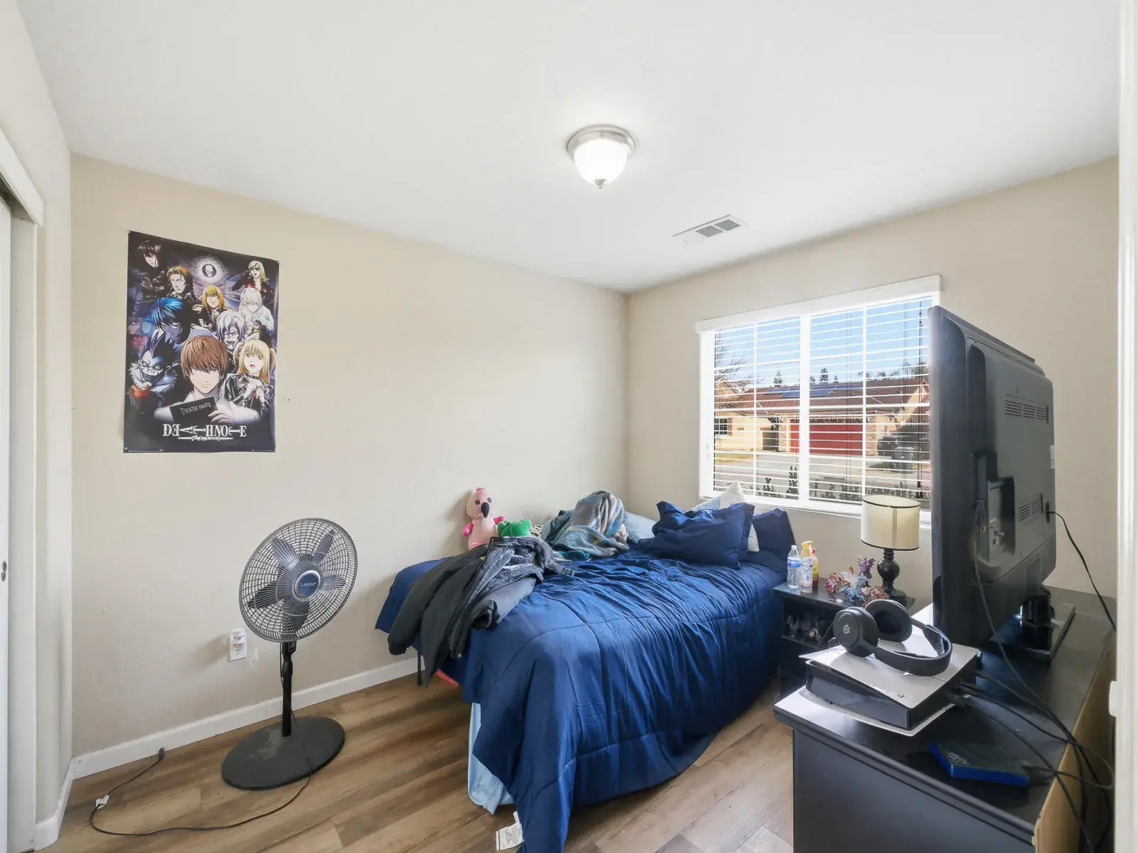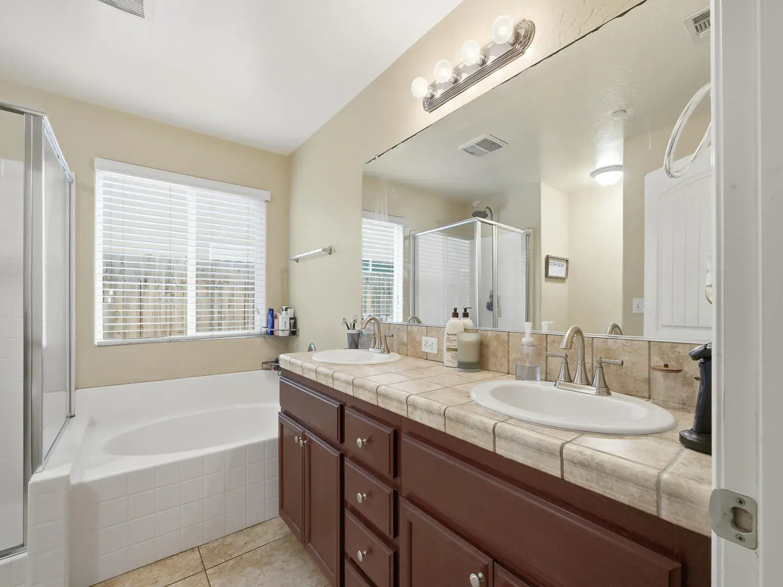 Welcome to this beautifully maintained 4 bedroom, 2.5 bath home offering a spacious, functional layout and standout outdoor living in a desirable Visalia neighborhood. The inviting entry opens to an open concept living space filled with natural light and finished with durable wood look flooring that flows seamlessly into the kitchen and dining areas. The kitchen features a large center island with bar seating, stainless steel appliances, ample cabinetry, and direct access to the dining area and covered patio beyond. A convenient half bath is located just off the entry hallway, ideal for guests, while the bedroom wing provides privacy and comfort throughout. The generous primary suite includes a dual sink vanity, soaking tub, separate walk in shower, and abundant storage, complemented by well sized secondary bedrooms and an indoor laundry room with cabinetry and garage access. Step outside to a private backyard retreat featuring a covered patio with ceiling fan, spa, and a sparkling in ground pool with waterfall feature, along with additional patio space and a gazebo area perfect for entertaining or relaxing year round. The home is complete with an attached garage, mature landscaping, and a clean, welcoming exterior, all conveniently located near parks, schools, and shopping, offering the perfect blend of comfort, function, and Central Valley lifestyle.