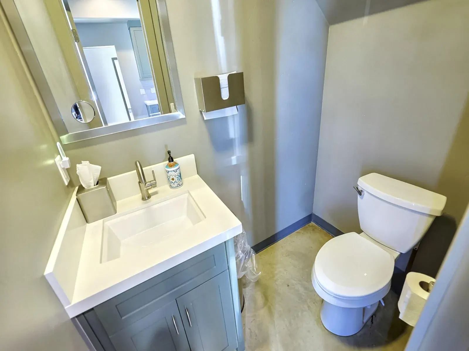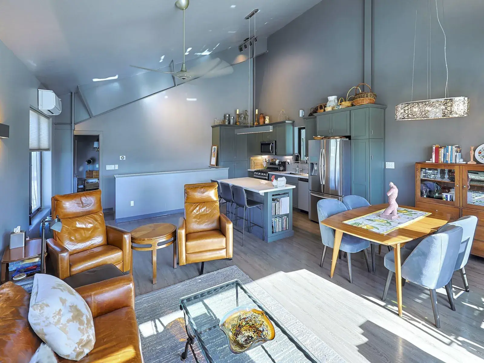 A 4,144 sq. ft. galvanized steel and concrete barn was built in 2018. It features a 1,764 sq. ft. two-story loft apartment with wrap-around windows. Agent remarks that the upstairs apartment was not permitted when built.