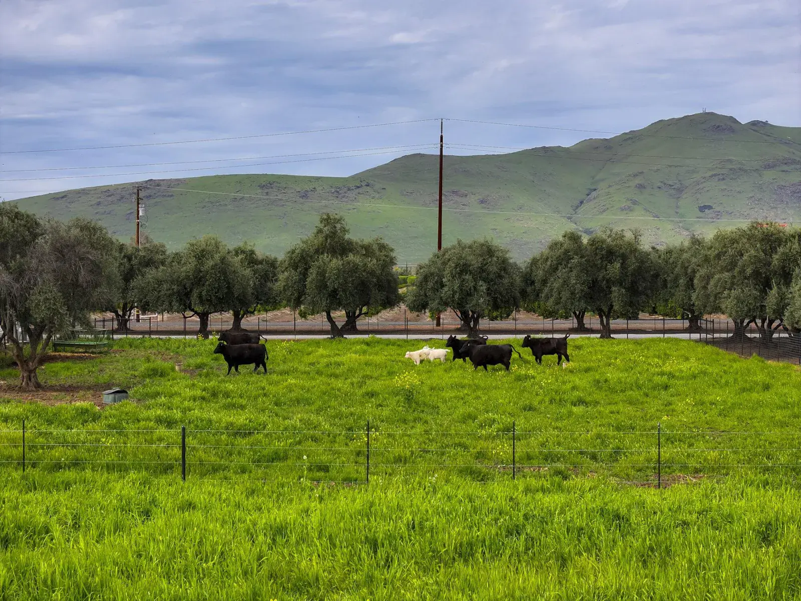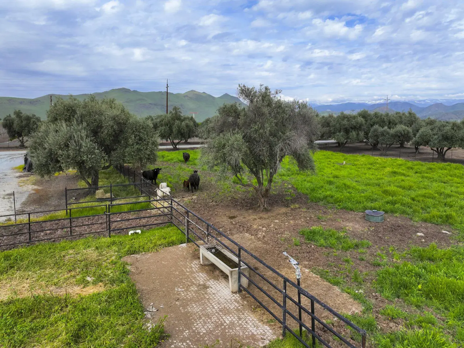Pastures: This property has +/-7 acres of seeded pastures, divided into six sections, with perimeter iron post fencing and hog wire, as well as mature olive trees for shade.