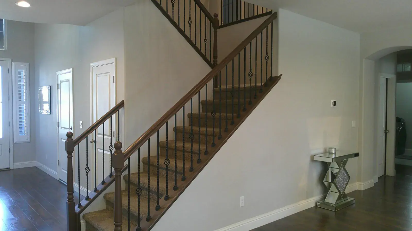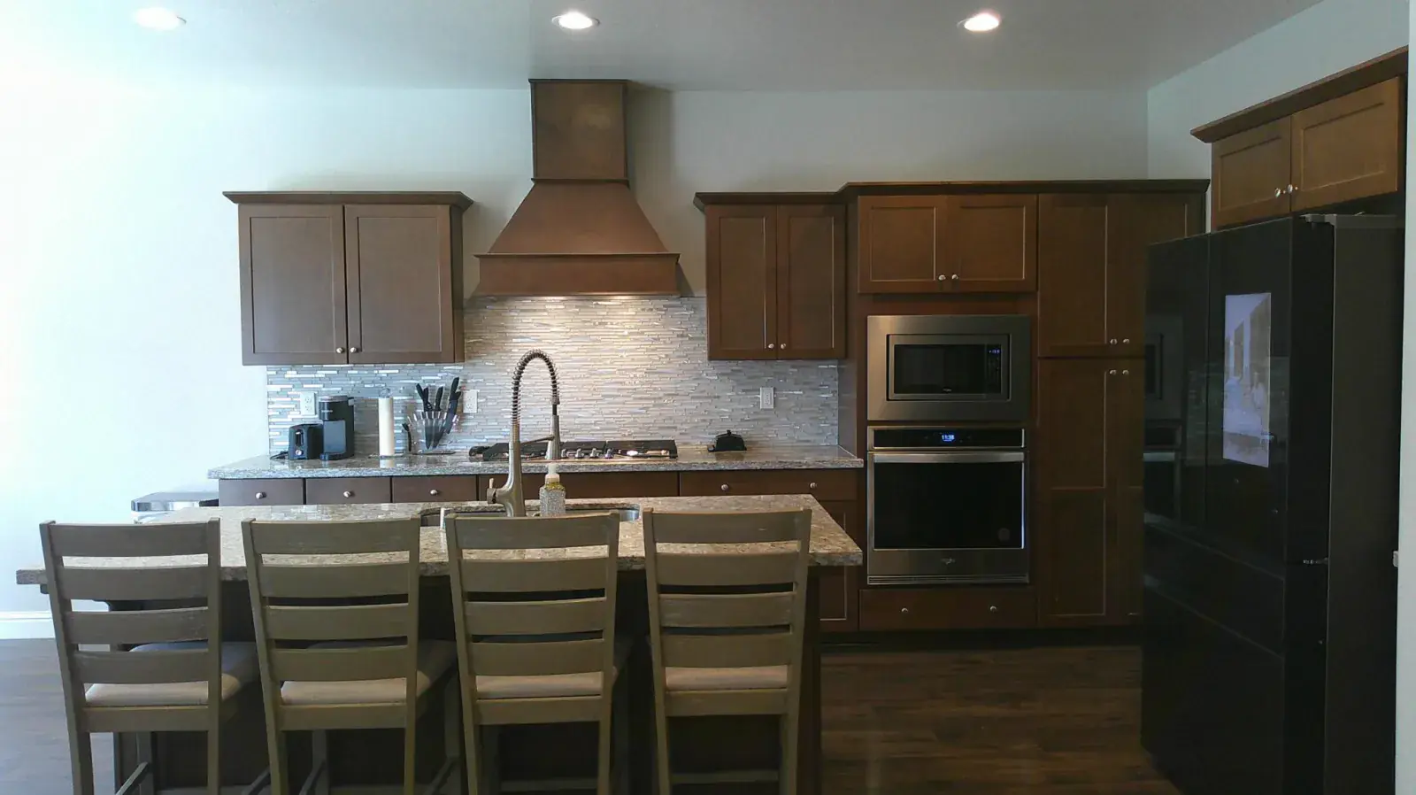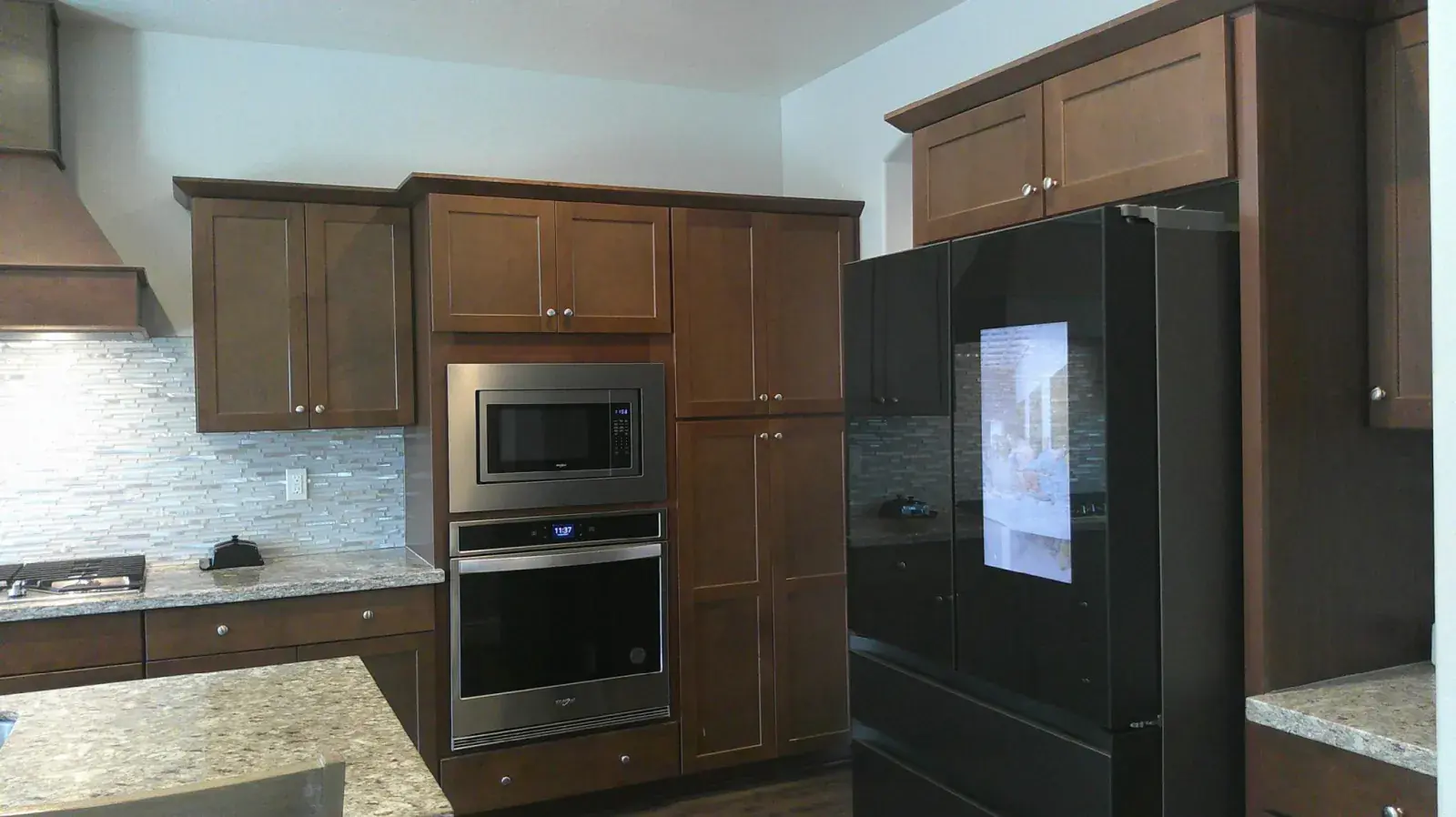 The gourmet kitchen features stainless steel appliances, granite countertops, a large walk-in pantry with a butler’s station, and a stylish upgraded backsplash. The main floor boasts upgraded laminate flooring, while plush carpet enhances comfort upstairs.