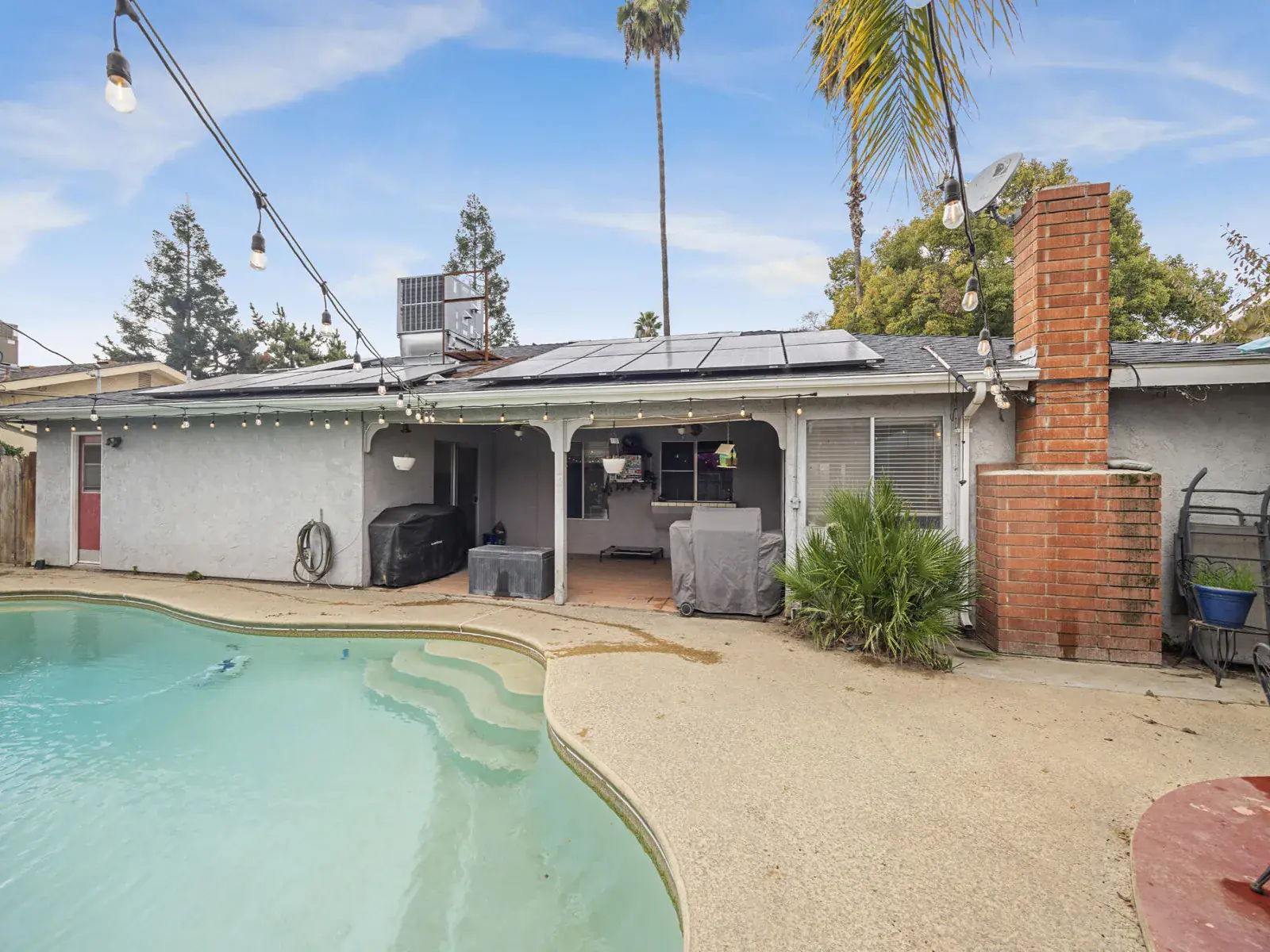 This is a 3-bedroom, 2-bath home That checks all the boxes for comfort and lifestyle. Step outside to your private backyard oasis complete with a large pool—ideal for gatherings, weekend lounging, and summer fun. Inside, updated flooring and contemporary light fixtures create a bright, inviting feel. With PAID SOLAR, you’ll enjoy lower utility costs while living sustainably. Great neighbors and neighborhood. Close to all shopping. This is what you are looking for. A home designed for both everyday living and entertaining.