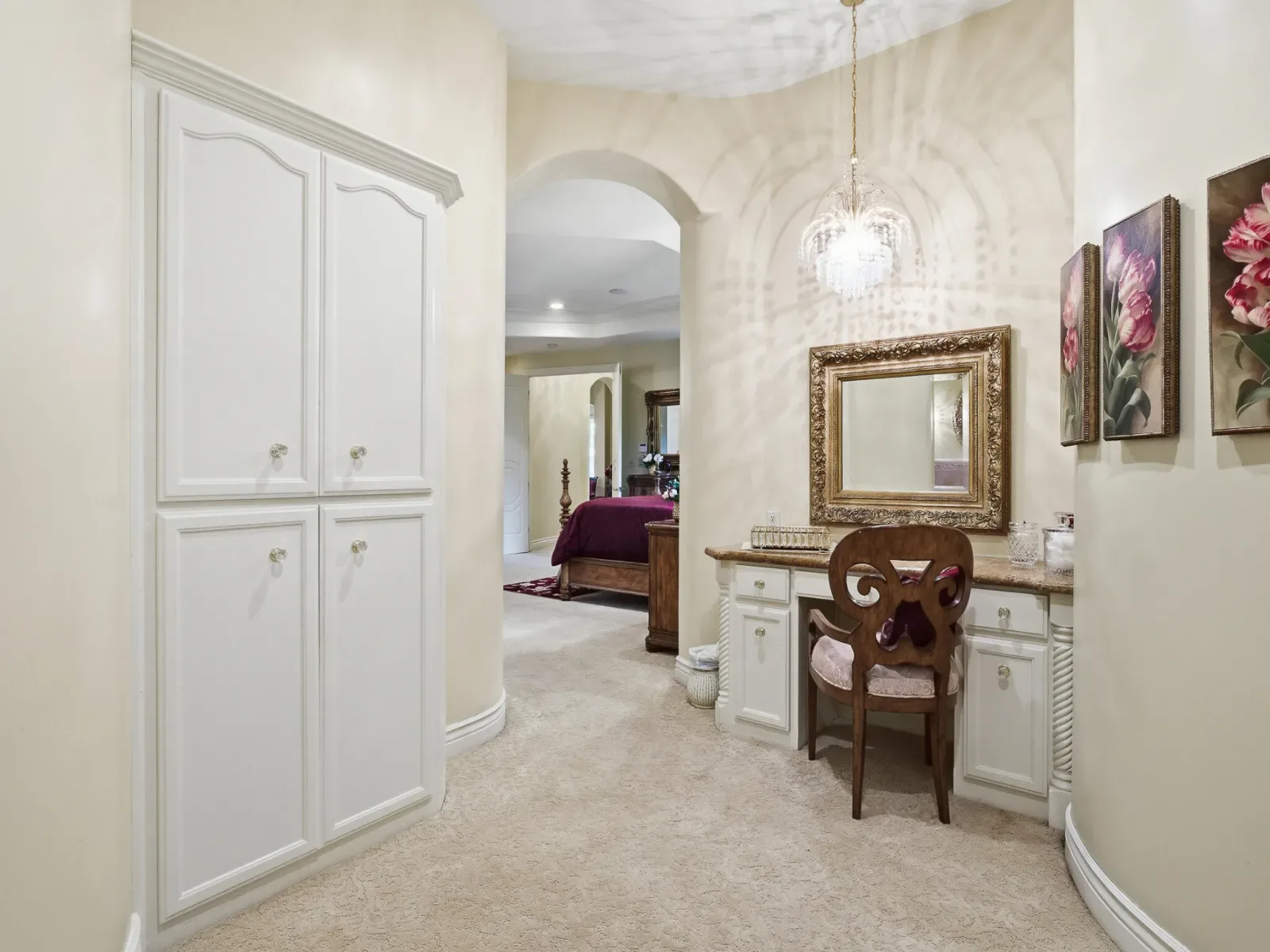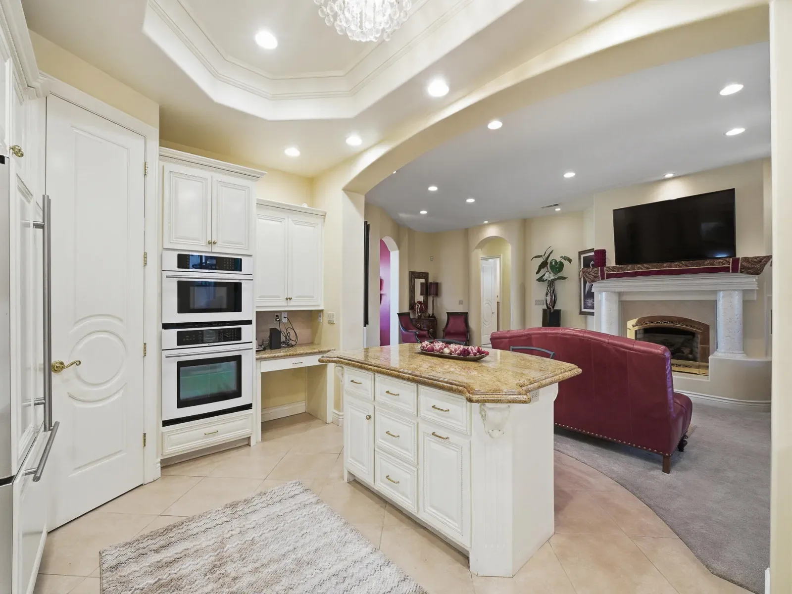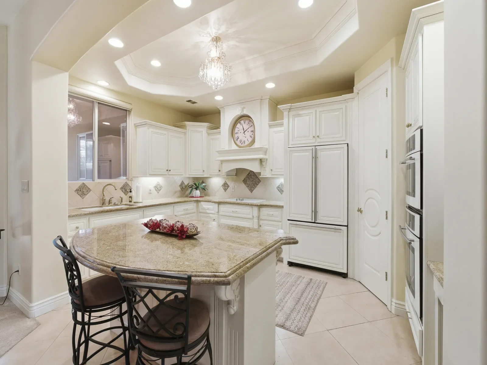 Located in desirable Gold Creek, this custom home showcases Mediterranean-inspired architecture, beautiful curb appeal, and a grand double door entry that immediately sets the tone for the quality and elegance found throughout. Thoughtfully designed for an elevated yet comfortable lifestyle, the home blends craftsmanship, functionality, and inviting living spaces in a low-maintenance setting. At the heart of the home is a bright and beautifully designed kitchen filled with natural light, generous counter space, classic custom cabinetry, and bar seating that creates the perfect place for everyday meals and gathering. Large windows enhance the open feel of the space. A dedicated dining area offers space for meals, while the flexible floor plan includes an additional living area that can serve as a sitting room, media room, or gathering space depending on your needs. The main living room is warm and welcoming, centered around a cozy fireplace that creates an inviting atmosphere for relaxing or entertaining. The thoughtfully designed split floor plan offers three spacious bedrooms plus a dedicated office with built-in storage and a closet, providing excellent flexibility. The expansive owner’s suite feels like a private retreat with generous space to unwind. The luxurious ensuite bathroom features a large walk-in shower, an elegant soaking tub, dual vanities, and a unique, beautifully designed makeup vanity that adds both style and function. A spacious walk-in closet completes the suite. Outdoor living is equally inviting, with several patio areas ideal for entertaining, relaxing, or creating your own outdoor retreat with space for a spa and seating areas. The finished garage offers additional versatility with ample space for storage, hobbies, or flexible use. Schedule your private showing to experience this exceptional home.