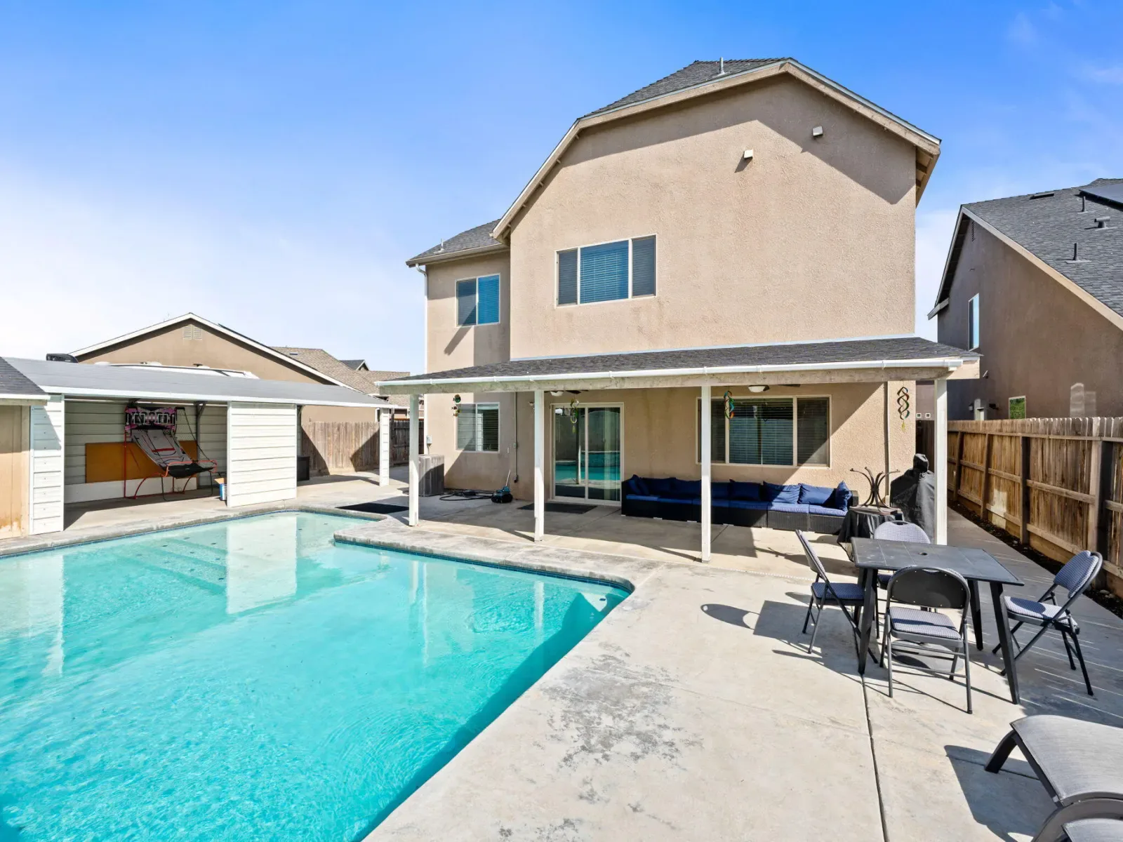 Beautifully maintained and thoughtfully designed, this 4-bedroom, 2.5-bath home with a dedicated office offers the perfect blend of comfort, function, and outdoor living. From the moment you arrive, the attractive curb appeal, extended concrete driveway, and gated RV parking set the tone for the versatility this property provides. Inside, you’ll find an open and inviting layout with abundant natural light, spacious living areas, and a well-appointed kitchen featuring granite countertops, rich cabinetry, center island with seating, and ample prep and storage space, ideal for both everyday living and entertaining. Upstairs and throughout the home, generous bedrooms provide flexibility for growing families or guests. The spacious master suite features a walk-in closet, dual sinks, a soaking tub & separate shower. The backyard is a true highlight, featuring a stunning 2-year-old pool, expansive concrete patio areas, covered patio for shaded lounging, and a versatile she shed/storage structure. Whether hosting gatherings, relaxing poolside, or utilizing the RV parking and additional hardscape space, this property offers exceptional outdoor functionality. Leased solar helps improve energy efficiency, making this home as practical as it is inviting. Schedule your showing today!