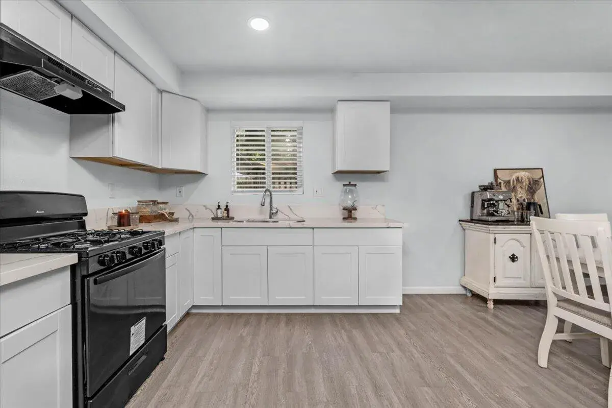 Step inside and fall in love with the open-concept layout featuring a bright, fully updated kitchen with shaker cabinets, quartz-style countertops, and luxury vinyl flooring throughout. The inviting family room showcases a classic brick fireplace, perfect for cozy evenings, while natural light fills every corner.