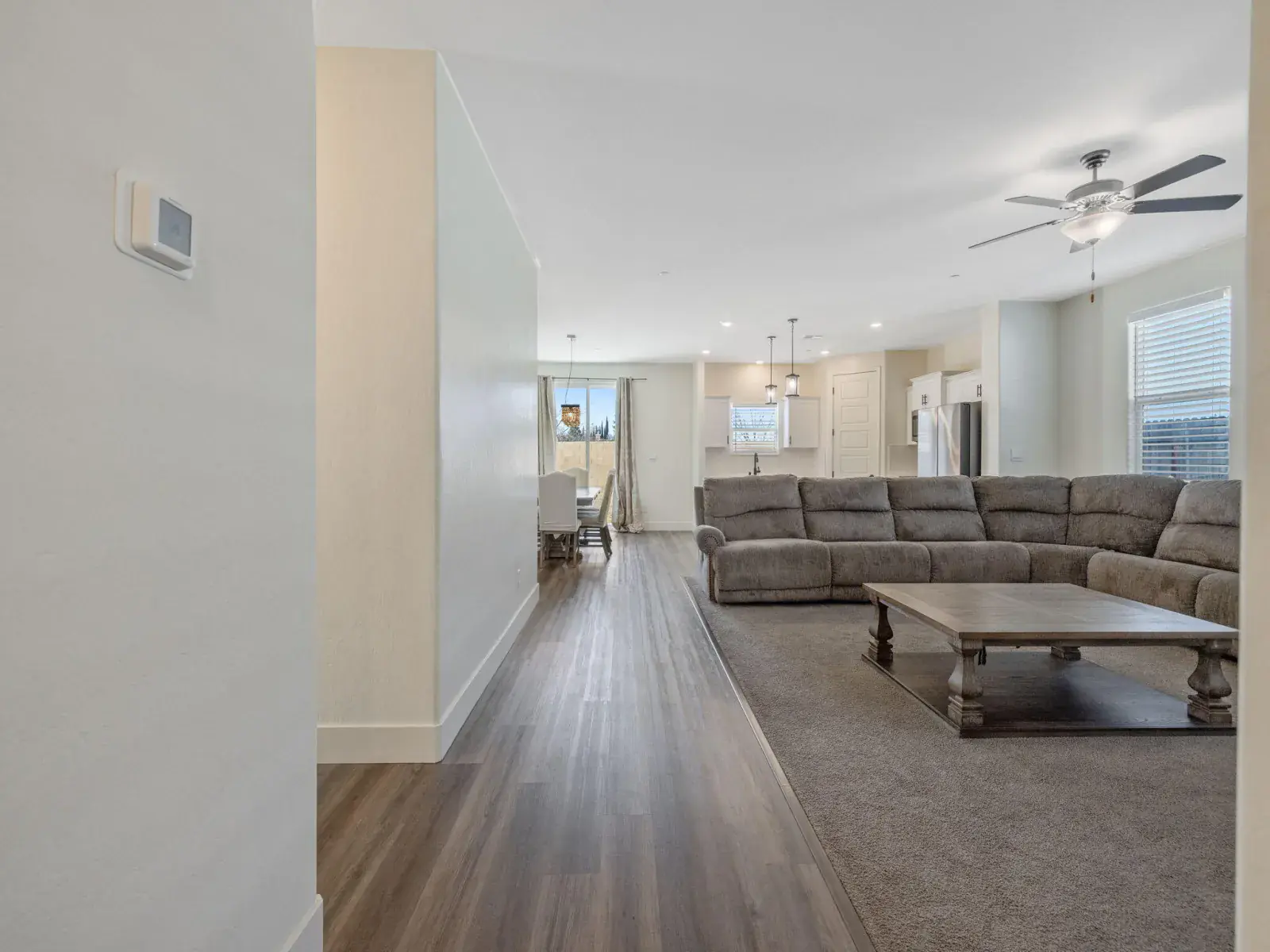 Turnkey and better than new! Built in 2022, this stunning 4-bedroom, 3-bath home is tucked away on a low-traffic cul-de-sac in the desirable Maddox at Caldwell community. Step inside to find high ceilings and 8-foot doors throughout, creating an open and airy feel. The thoughtfully designed floor plan includes Jack-and-Jill bedrooms with an attached bath featuring a spacious stone dual vanity and private shower area. A separate guest bedroom with a nearby full bath offers flexibility as a home office or private guest suite. The secluded owner’s suite provides a peaceful retreat with an in-suite bath, dual vanities, and a generous walk-in closet. The great room layout centers around a beautiful island kitchen complete with stone countertops, stainless steel appliances, and a large pantry—perfect for entertaining or everyday living. Enjoy modern safety and efficiency with fire sprinklers and an owned solar system. Outside, you’ll appreciate the extra-wide concrete driveway, expansive walkways, and a huge patio ideal for outdoor gatherings—all set on a quiet cul-de-sac street. Come take a look and fall in love with everything this exceptional home has to offer!