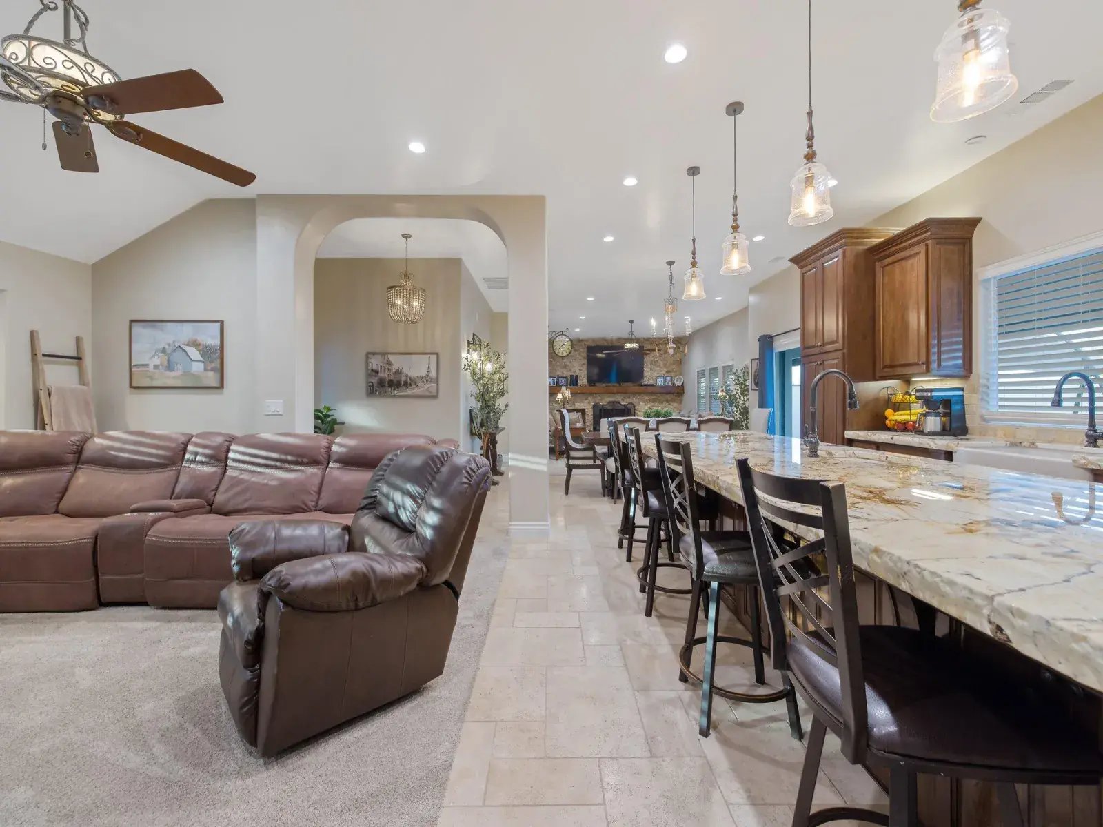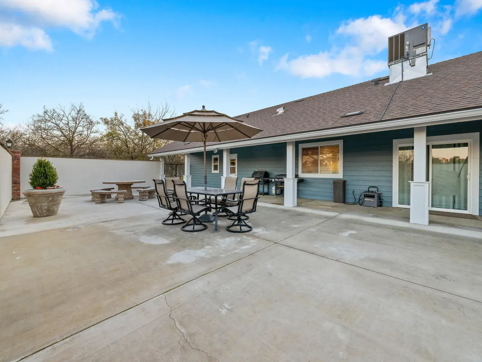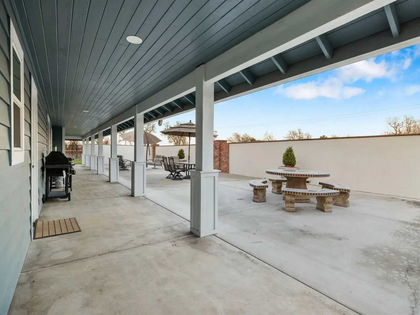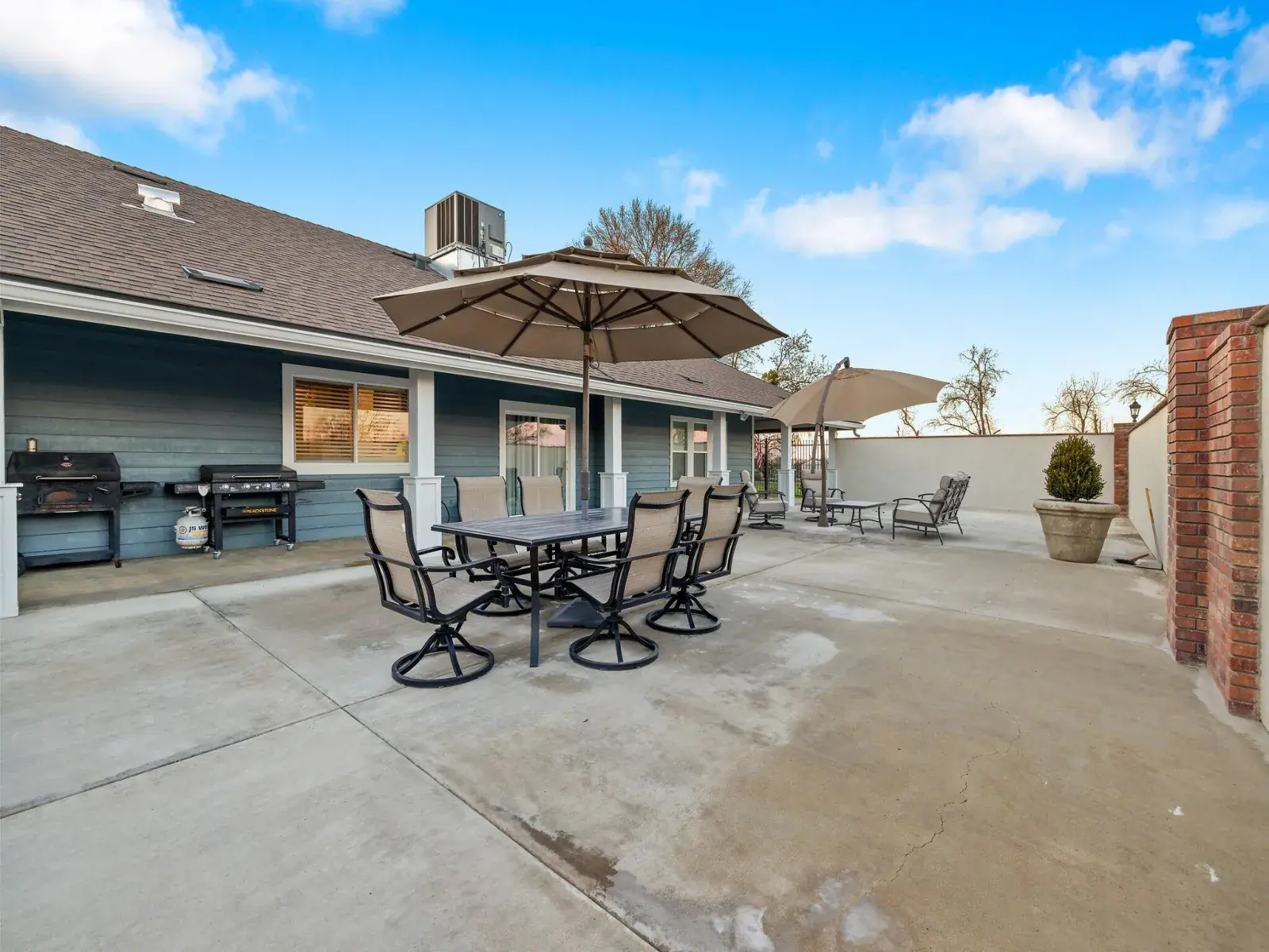 Welcome to 27387 Road 100 a stunning 2-acre country estate on the edge of town, offering the perfect blend of luxury, space, and modern convenience. This meticulously designed property boasts hickory hardwood cabinetry throughout the kitchen, laundry room, and bathrooms, all complemented by 3cm granite countertops for a timeless, elegant look. The chef’s kitchen is a true entertainer’s dream, featuring a commercial stand-alone Dacor refrigerator and freezer, a Thermador commercial stove with double ovens, a built-in trash compactor, and a built-in ice maker. A huge walk-in pantry provides ample storage, while the hickory-built entertainment center adds warmth and sophistication to the living space. The spa-inspired primary suite offers a massive walk-in closet with enclosed glass cabinetry, perfect for organizing shoes, bags, or wardrobe essentials, and a walk-in shower with full-body sprays for a true retreat experience. Designed for ultimate comfort and efficiency, the home includes two 5-ton central heating and air conditioning units with all-new ductwork, a whole-house fan, new windows and doors throughout, and fully updated electrical with new panels and overhead plumbing. For added convenience, there are three washer and dryer hookups. Step outside to an entertainer’s paradise with a dedicated outdoor entertainment room featuring its own bathroom and mini-split heating and air conditioning unit—perfect for hosting guests or creating a private retreat. Cozy up by the real wood-burning fireplace on cool evenings. For RV enthusiasts, the property includes a massive RV garage with a hook-up and dump station, making it the ultimate home base for travelers. A fully upgraded water well with a new pump ensures a reliable water supply. This exceptional estate offers the perfect balance of country charm and modern luxury, just minutes from town. Don’t miss this rare opportunity—schedule your private tour today!