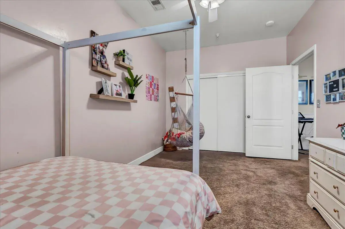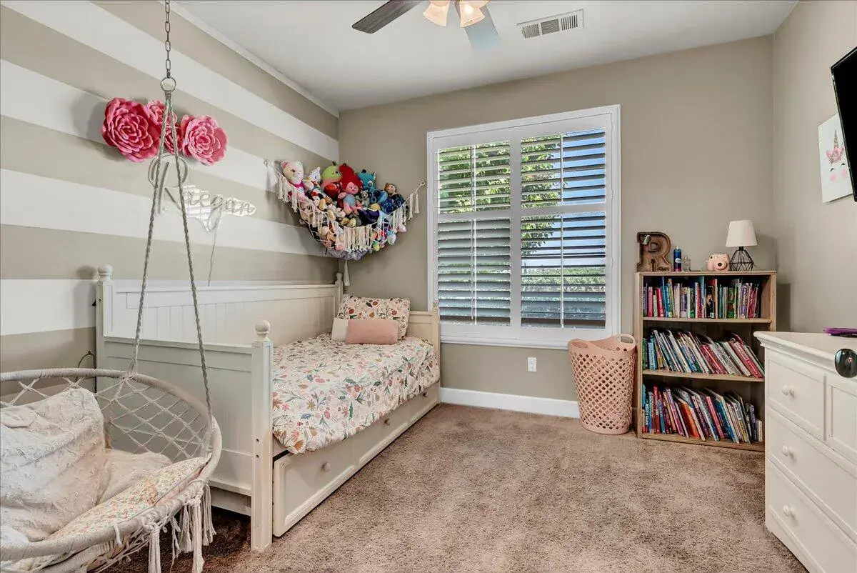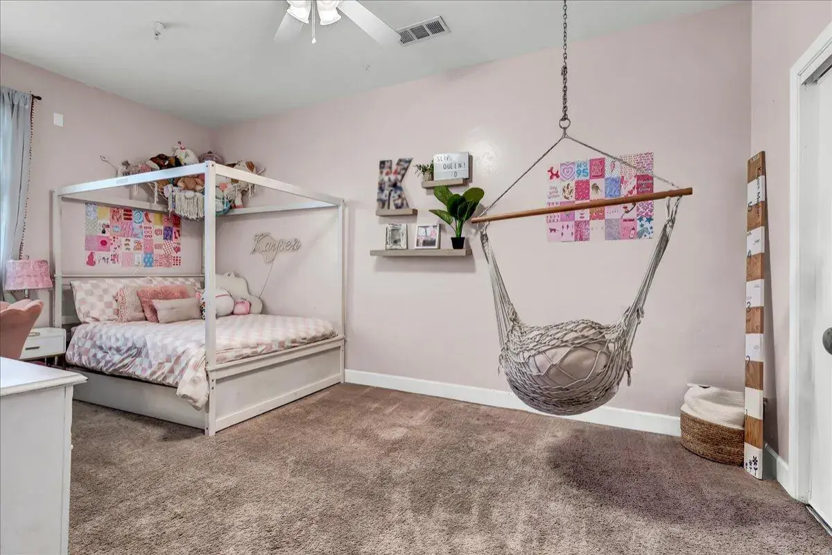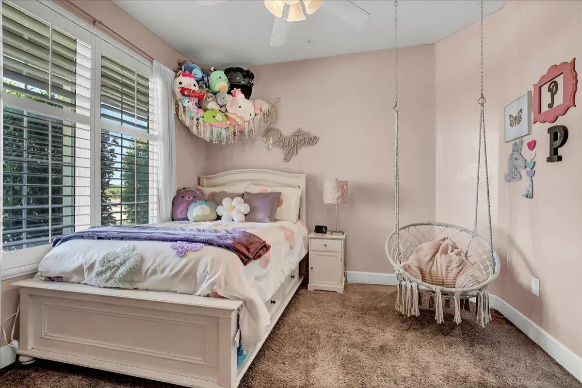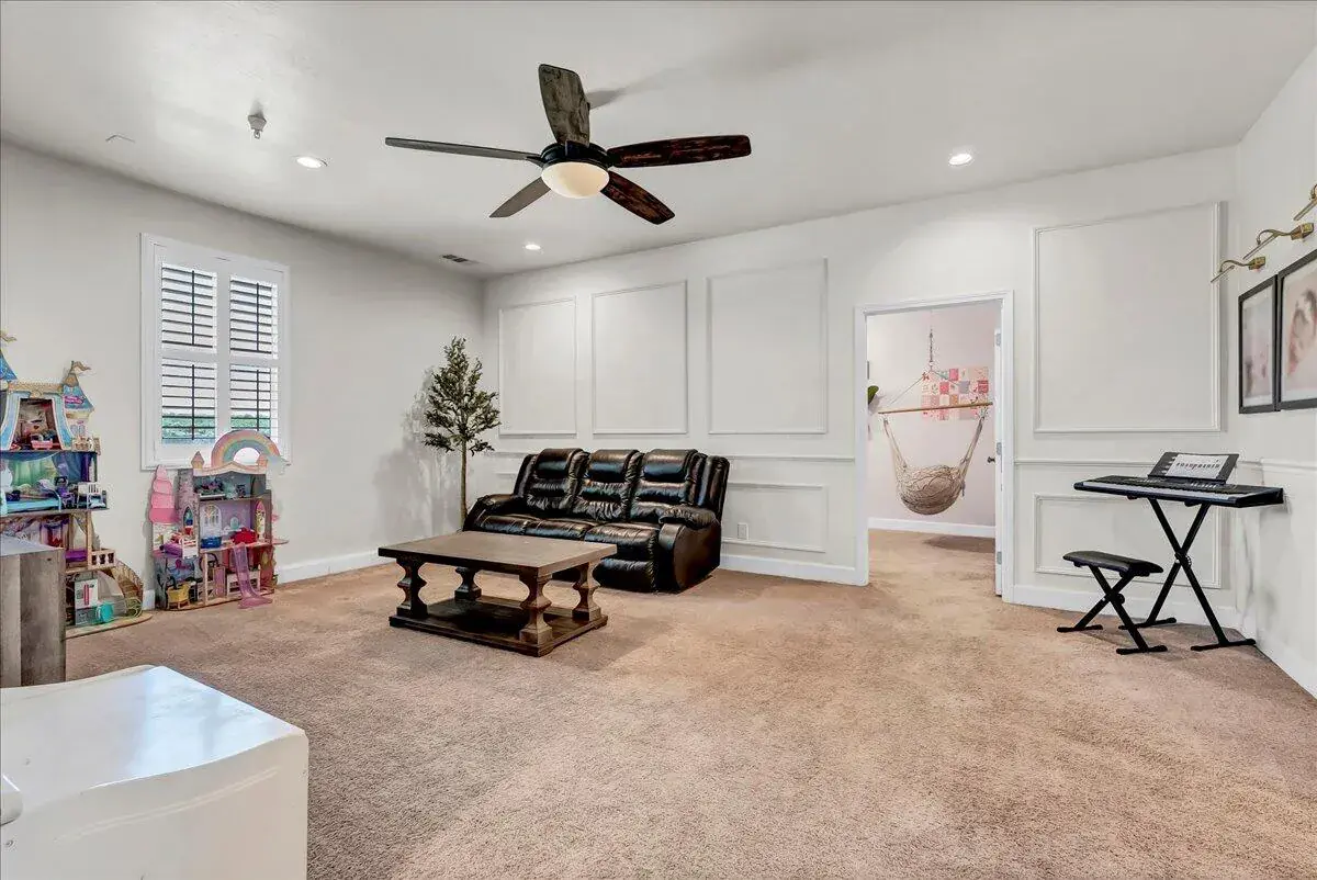 Step outside to a fenced backyard designed for fun and relaxation – featuring a covered patio, in-ground trampoline, sandbox play area, and plenty of green space. And don’t miss the fully finished ”man cave” with its own gym and movie theater setup – your ultimate retreat right at home. Leased solar adds energy efficiency, rounding out this turnkey property.