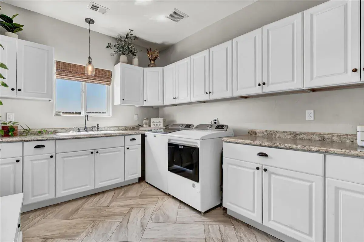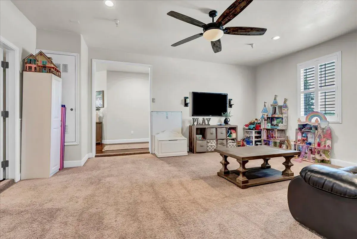 The entertainers kitchen features granite countertops, stainless steel appliances, and ample bar seating, flowing seamlessly into the dining and living areas – ideal for both daily living and entertaining. The large in-home laundry room adds convenience, while a bonus playroom offers flexible space for a home office, hobby room, or study zone.
