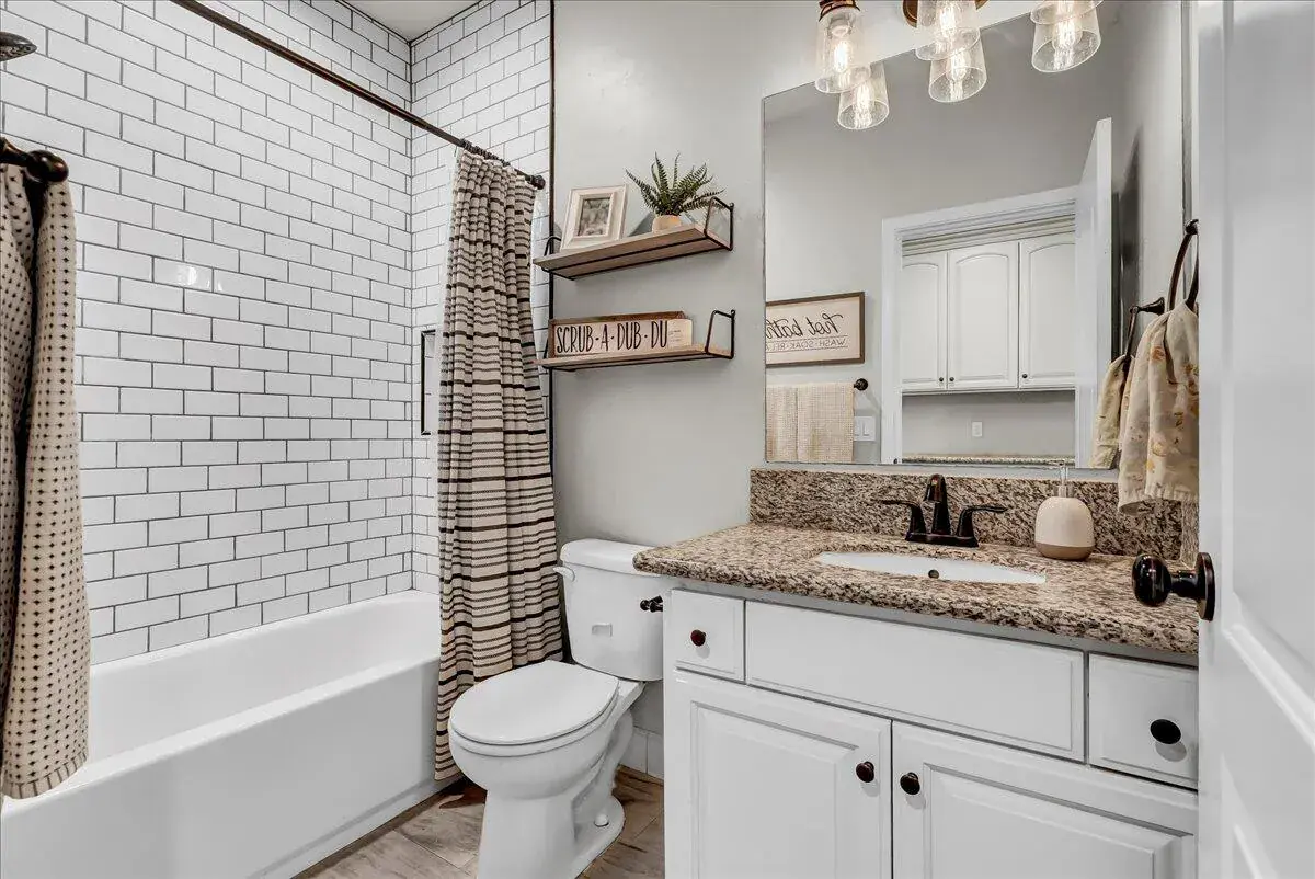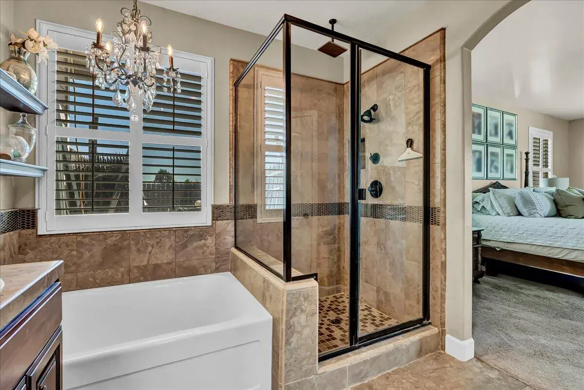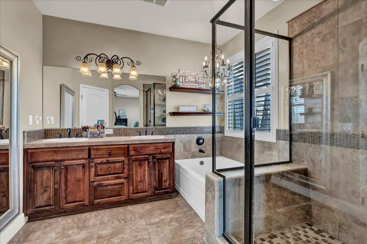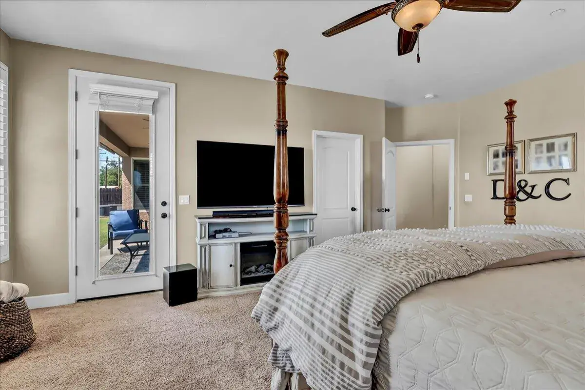 The private primary suite includes a spa-like bathroom with dual sinks, a soaking tub, walk-in shower, and large closet. Three additional bedrooms provide comfortable living for family or guests.