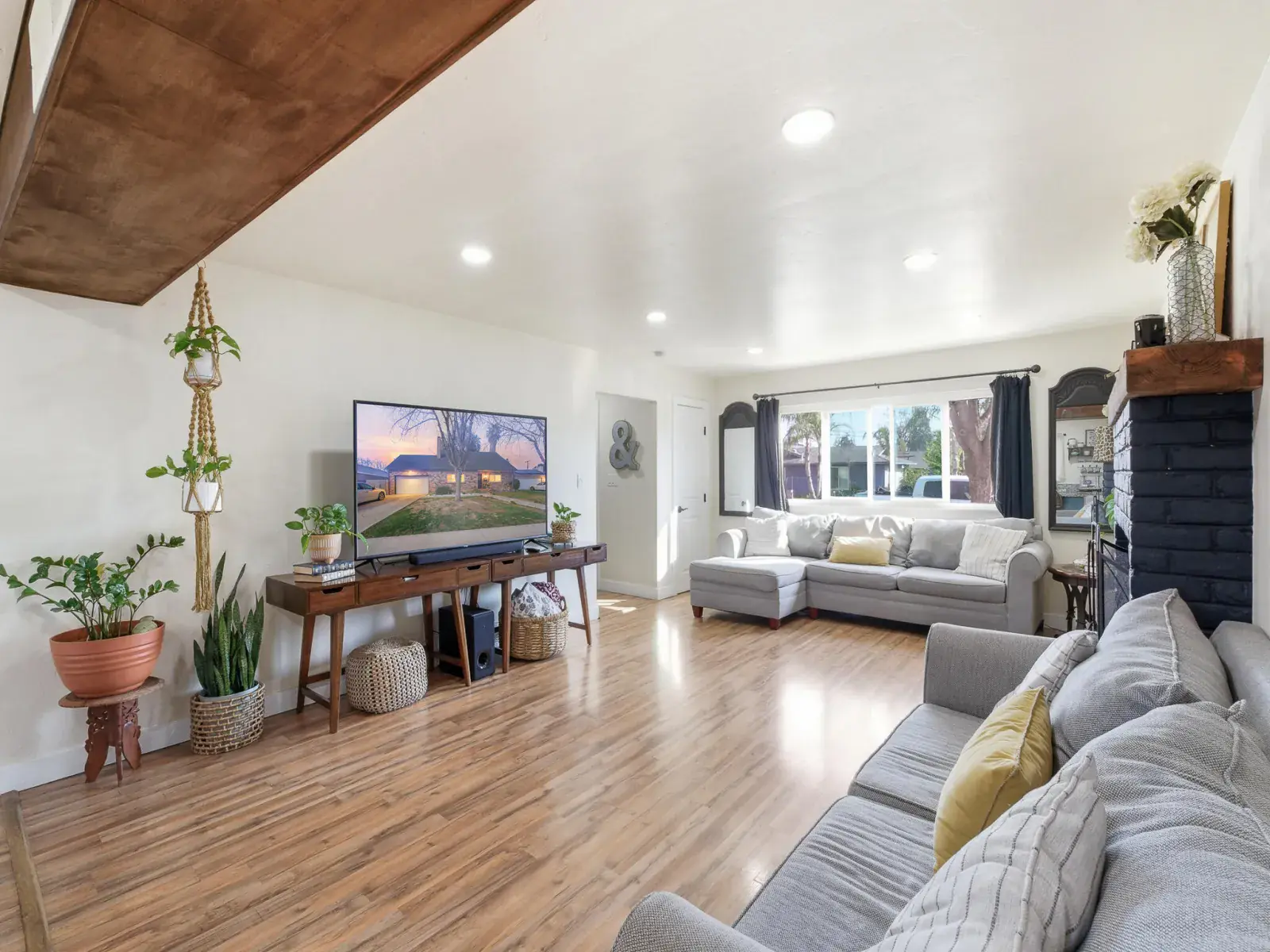 Welcome to this beautifully updated and spacious two story home located in the heart of Southwest Visalia, offering an ideal blend of comfort, functionality, and prime convenience. Inside, you’ll find a bright open concept layout featuring a large living area with abundant natural light, warm wood tone flooring, exposed beam accents, recessed lighting, and a charming painted brick fireplace that creates a welcoming focal point. The remodeled kitchen is designed for both everyday living and entertaining, showcasing granite countertops, white cabinetry, stainless steel appliances, decorative backsplash, and an oversized center island with seating that flows seamlessly into the dining and living spaces. Upstairs, generously sized bedrooms provide flexible living options, including an expansive primary suite with ample closet space and an updated bathroom featuring dual sinks and a spacious walk in shower. Step outside to a large backyard designed for relaxation and gatherings, complete with a covered patio, mature shade trees, and plenty of open lawn space ideal for outdoor dining, play, or future customization. Additional exterior features include a charming brick façade, mature landscaping, and convenient side yard access with extra concrete space for storage or recreational use. Situated just minutes from College of the Sequoias, this location offers excellent convenience for students, faculty, and long term investment potential, while nearby Mooney Boulevard provides quick access to shopping, dining, medical services, and everyday amenities. Commuters will also appreciate the close proximity to Highway 198, allowing easy travel throughout Visalia and across the Central Valley. With its modern updates, generous living space, large yard, and prime central location, this home presents an outstanding opportunity for homeowners and investors alike.