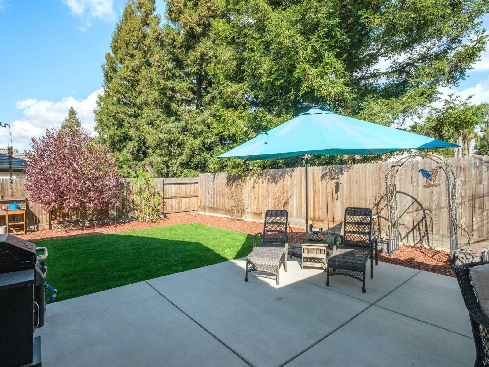 Welcome to this beautifully maintained 3-bedroom, 2-bath, 1,778 sq. ft. Woodside home with a dedicated office (That could be converted to a 4th Bedroom), built in 2021 and located in a desirable southeast Visalia neighborhood. Thoughtfully designed for today’s lifestyle, this newer construction home offers modern finishes, energy efficiency, and low-maintenance living with owned solar for long-term energy savings. Situated on a premium lot with additional space on both sides, the home features an inviting open-concept layout with luxury vinyl plank flooring throughout. The stylish kitchen is ideal for everyday living and entertaining, offering upgraded cabinetry, ample counter space, a farmhouse sink, spacious pantry, and a large center island perfect for gathering with family and friends. The two guest bedrooms and guest bath are conveniently located near the front of the home, while the private primary suite is tucked away for added privacy and features a tiled walk-in shower, relaxing soaking tub, and a large walk-in closet, creating a comfortable retreat. Step outside to a beautifully landscaped backyard professionally designed for outdoor living, complete with a 15′ x 15′ covered patio, lush landscaping, and irrigation, providing the perfect setting for relaxation or entertaining. Additional highlights include a durable tile roof, owned solar system, and RV parking potential with 50-amp electrical service and sewer connection already in place. Conveniently located near major commuter routes, parks, shopping, and dining, and just minutes from College of the Sequoias, this home offers both accessibility and neighborhood comfort. This is a rare opportunity to own a highly upgraded, move-in-ready home on a premium lot in southeast Visalia. Don’t miss the opportunity to own a newer home with owned solar in a prime Visalia location!