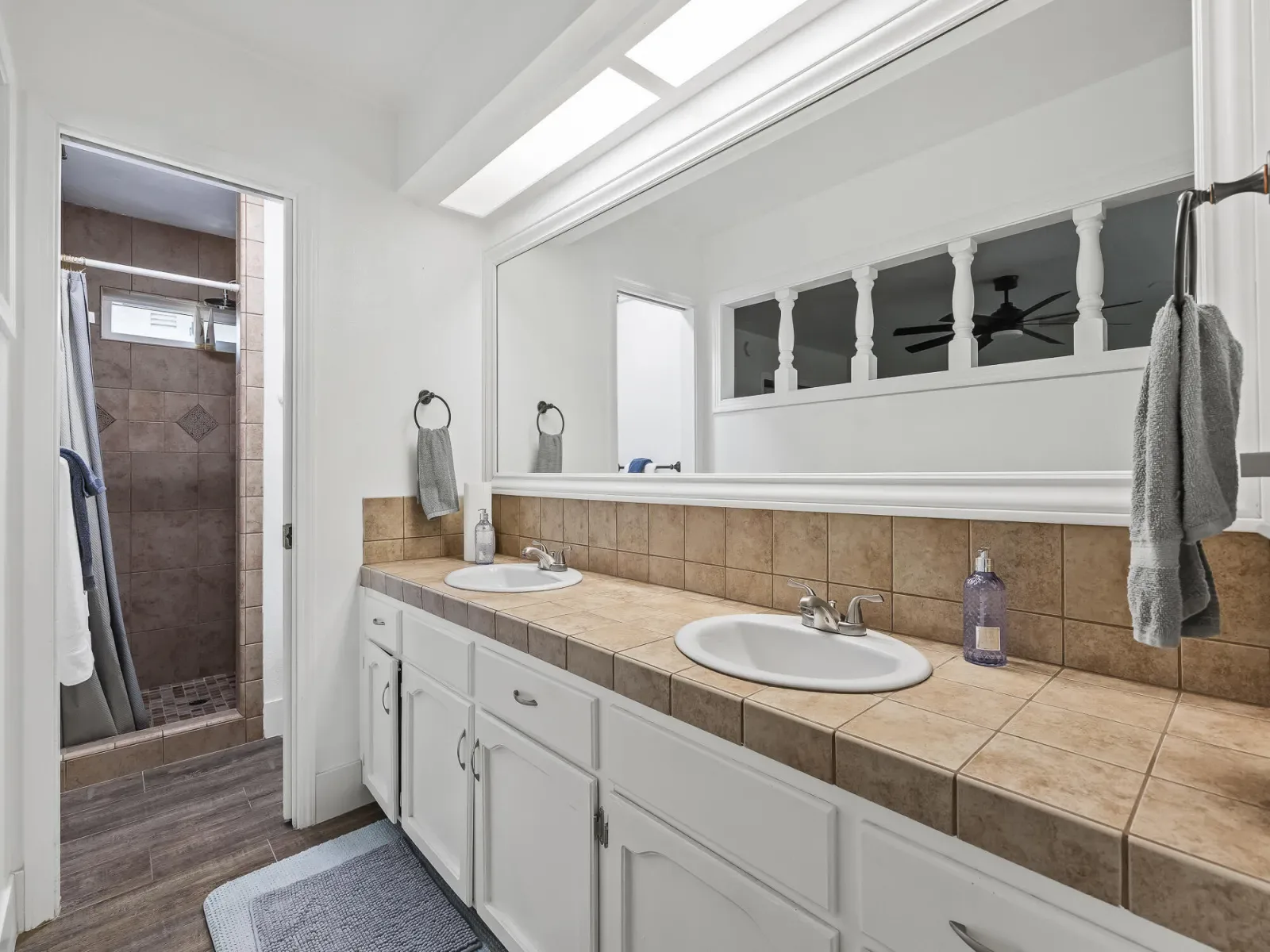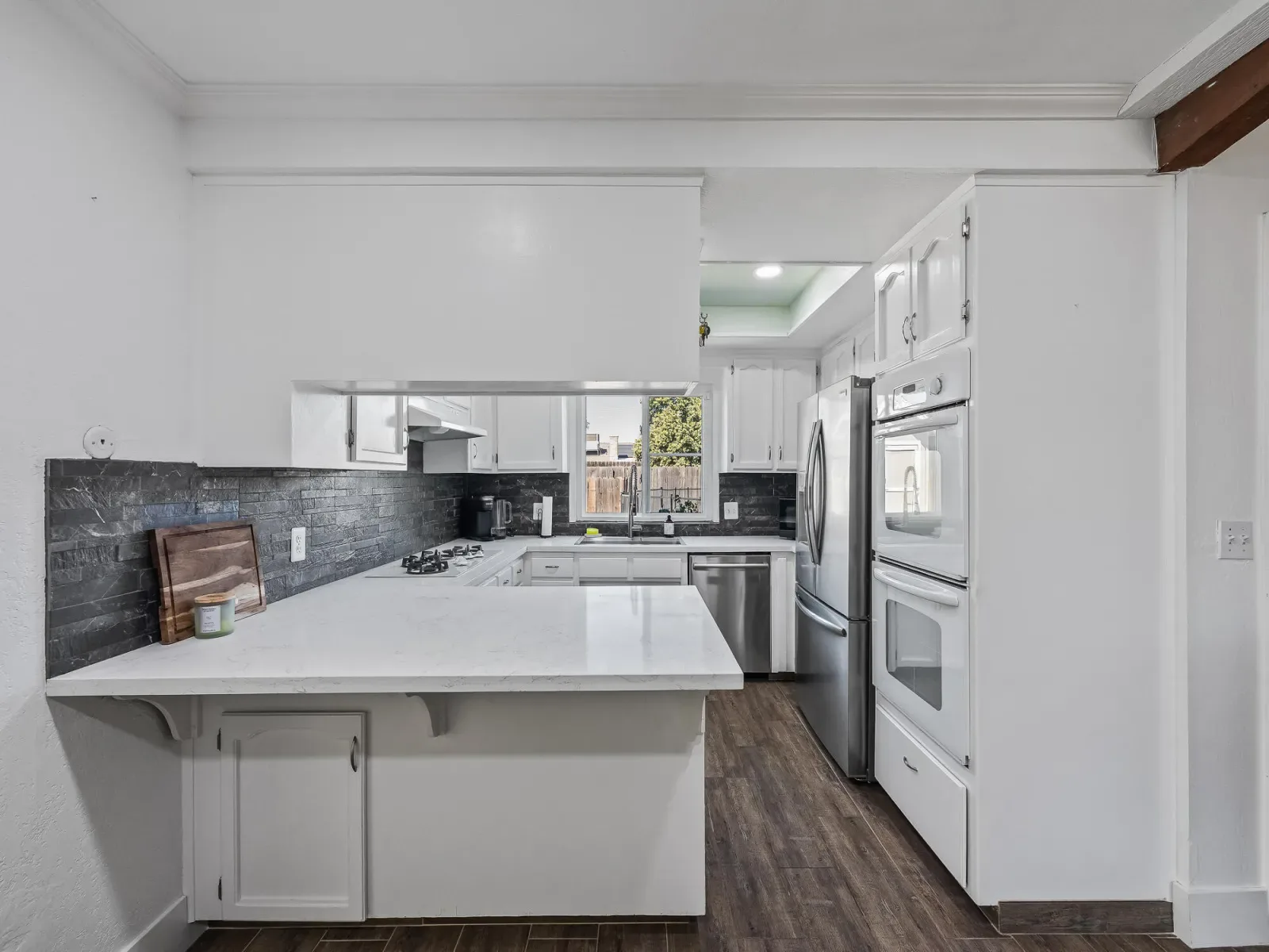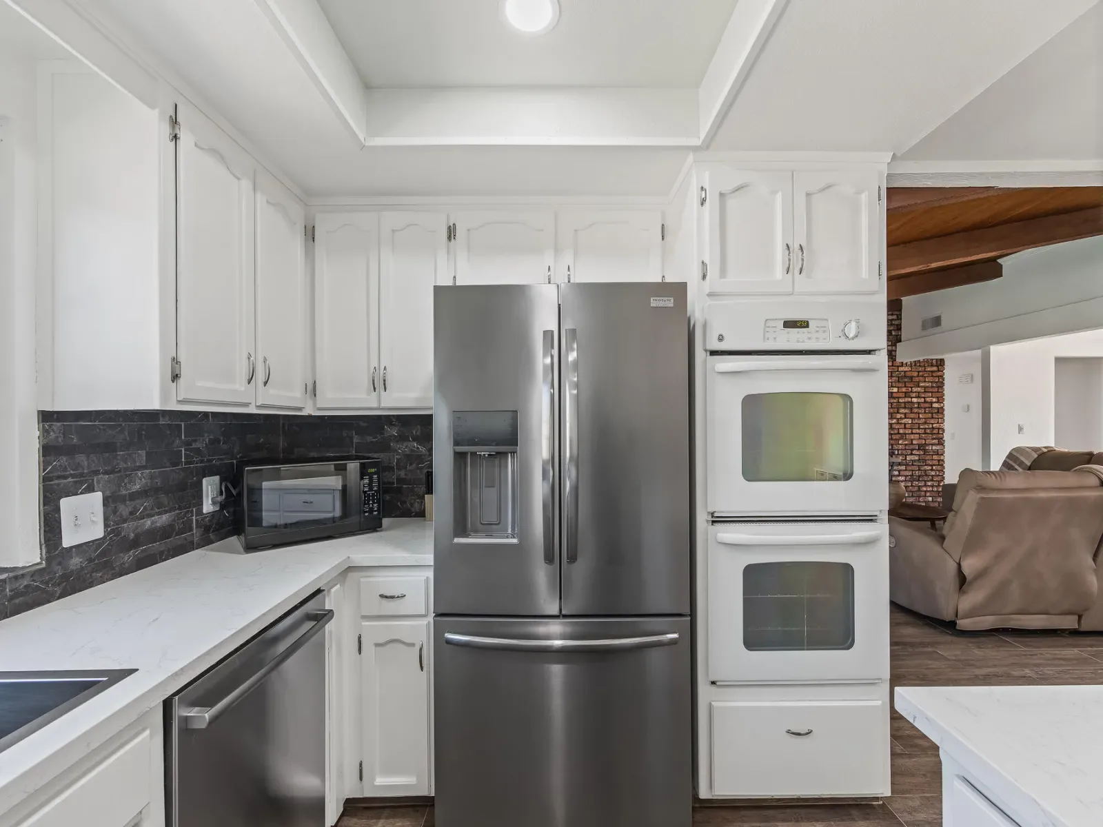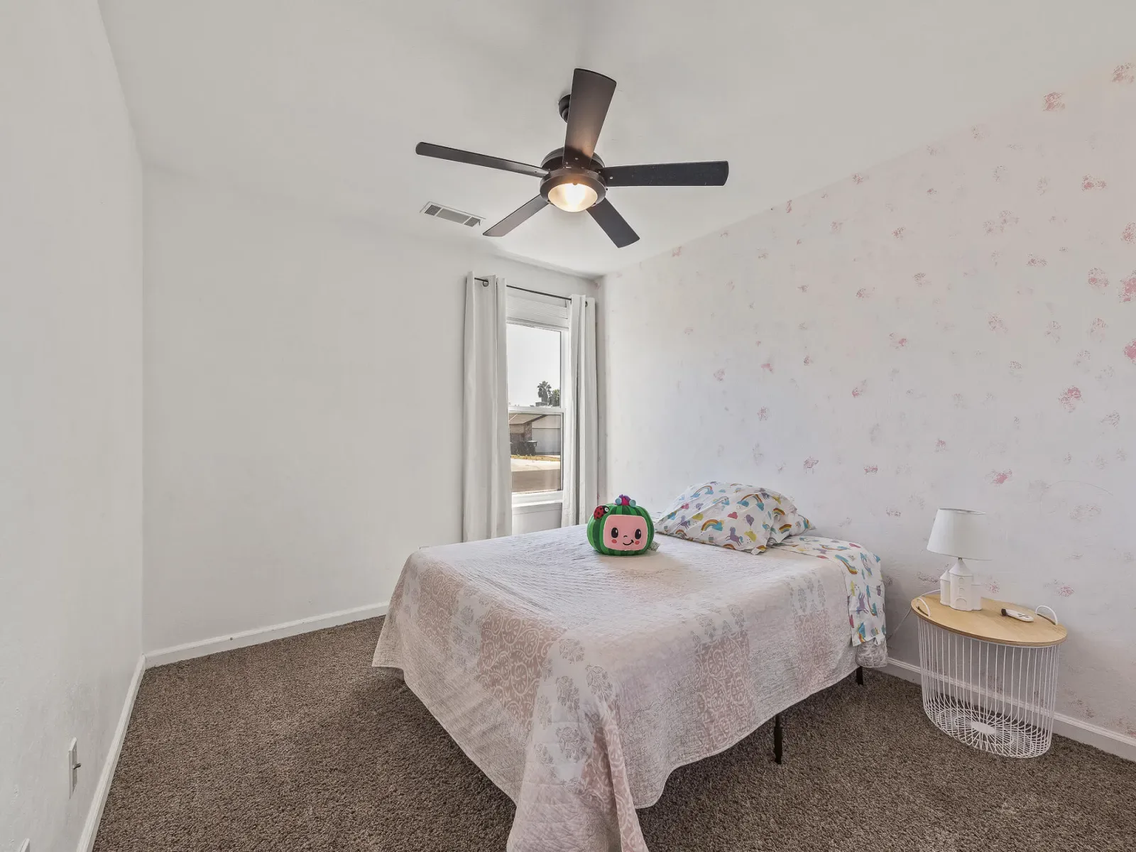 Fall in love the moment you arrive! This stunning 3 bedroom, 2 bathroom home in desirable Visalia with incredible curb appeal. Step inside to an open, light-filled floor plan with large windows, vaulted ceilings, beautiful wood beams, wood like tile, and a cozy brick fireplace that anchors the spacious living room. The kitchen features stainless steel appliances, double ovens, and plenty of cabinet space, plus a formal dining area for gatherings. Just off the kitchen is a huge bonus flex room with a massive slider that opens to the backyard—perfect for entertaining or a game room. The spacious primary suite includes backyard access, mirrored closets, and a bath with dual sinks and an oversized counter. Step outside to your own tropical oasis featuring a large fenced pool with a rock waterfall, covered patio, storage shed, and plenty of space to relax or entertain. Additional highlights include solar, a whole house fan, and indoor laundry. This home truly has it all—don’t miss your chance to see it!