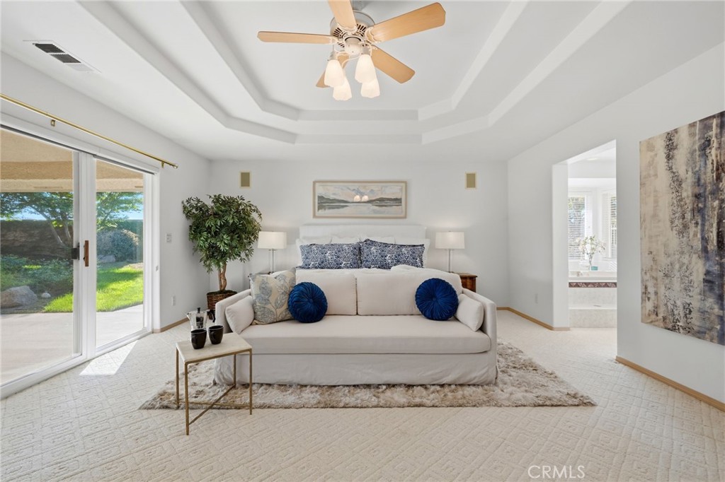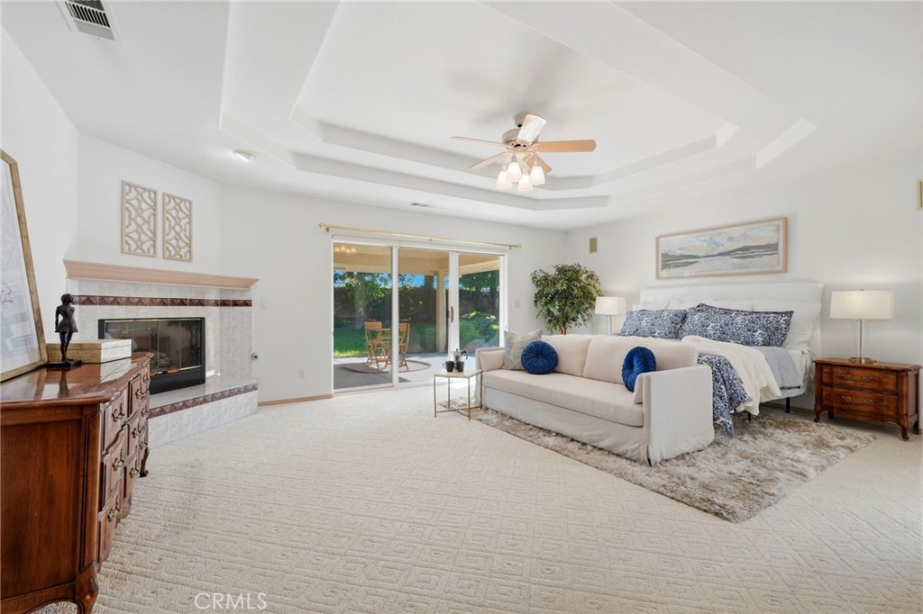 Incredible custom home located in Visalia’s premier gated Bonaventure community. This 4 bedroom, 3 bathroom home offers a rare combination of space, functionality, and a beautifully designed setting on a gorgeous lot with potential RV parking and a 3-car garage. From the moment you step inside, you’re welcomed by vaulted ceilings, natural light, and detailed craftsmanship throughout, including coffered ceilings, built-ins, and elegant finishes. A formal sitting room sits to the left, with a formal dining room to the right featuring crystal chandeliers. The main living space is open and inviting with a fireplace, coffered ceilings, and large sliding doors leading to the backyard. The kitchen flows seamlessly into the living area with bar-height countertops — perfect for everyday living and entertaining. The backyard is a true highlight-designed as a peaceful, private oasis with a rock waterfall feature, mature landscaping, citrus trees, large pines, and built-in speakers both inside and out. The primary suite is spacious and private, featuring its own fireplace, direct access to the covered patio, a soaking tub, walk-in shower, dual vanities, and a large closet. The split floor plan offers three additional bedrooms on the opposite side of the home. Two bedrooms share a hall bathroom, while the third has its own en suite, making it ideal for guests or multi-generational living. Located in one of Visalia’s most sought-after neighborhoods, this home offers the space, layout, and setting that are hard to find.