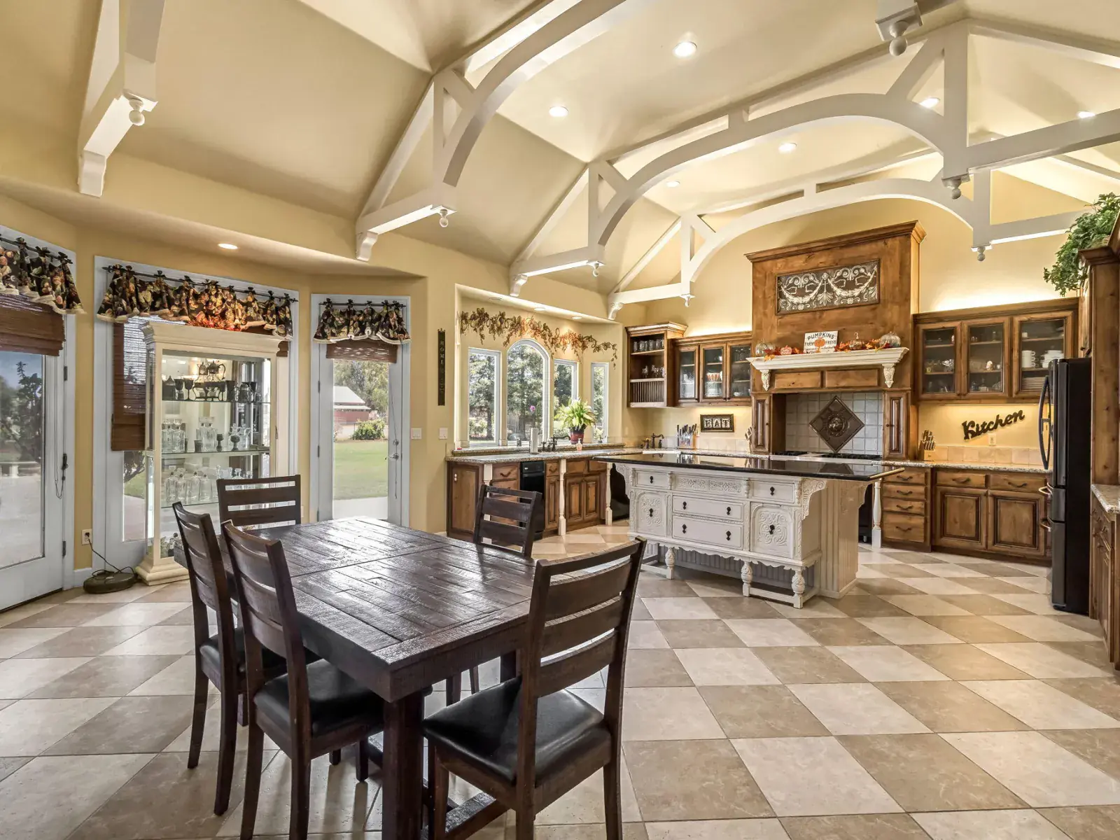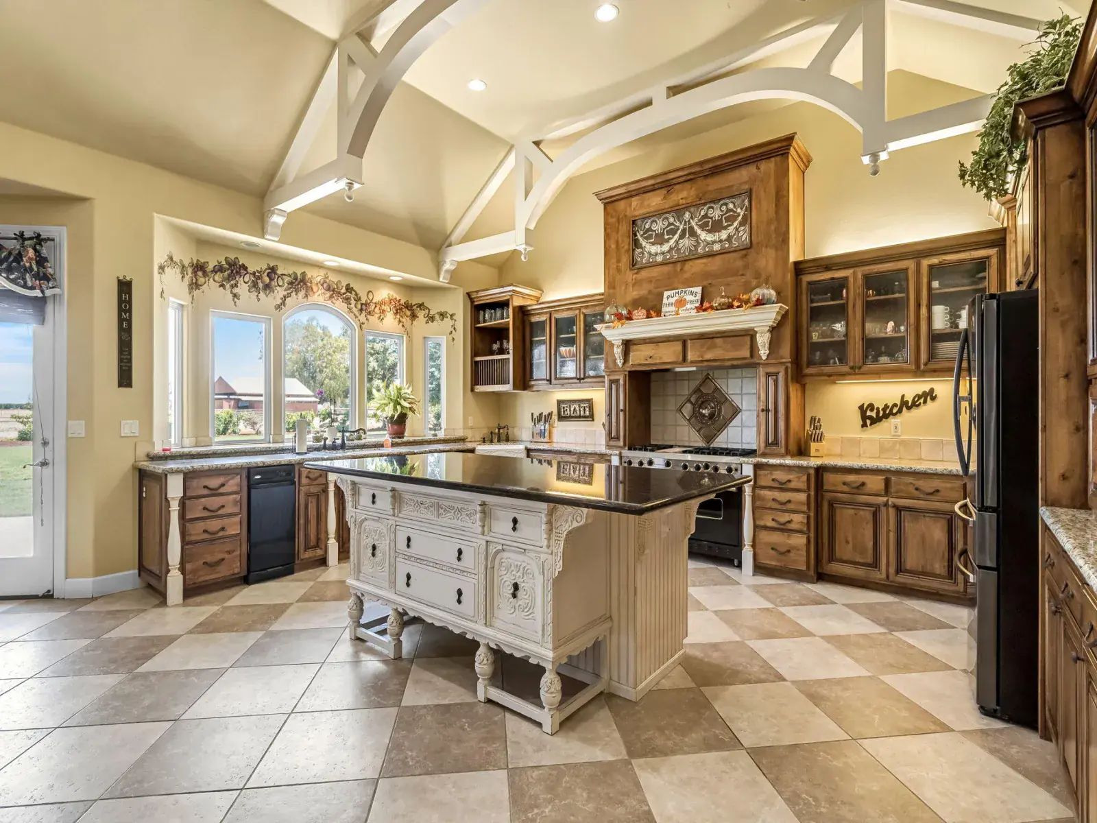 The chef’s kitchen is a standout, featuring three ovens including two commercial-grade Viking gas ovens and one electric plus a 6-burner Viking range. Additional highlights include dual central A/C units, dual water heaters, two fireplaces, a whole-house water purification system, and Yamaha surround sound. Additional features include a 5 HP pump to maintain the home and beautifully landscaped yard,