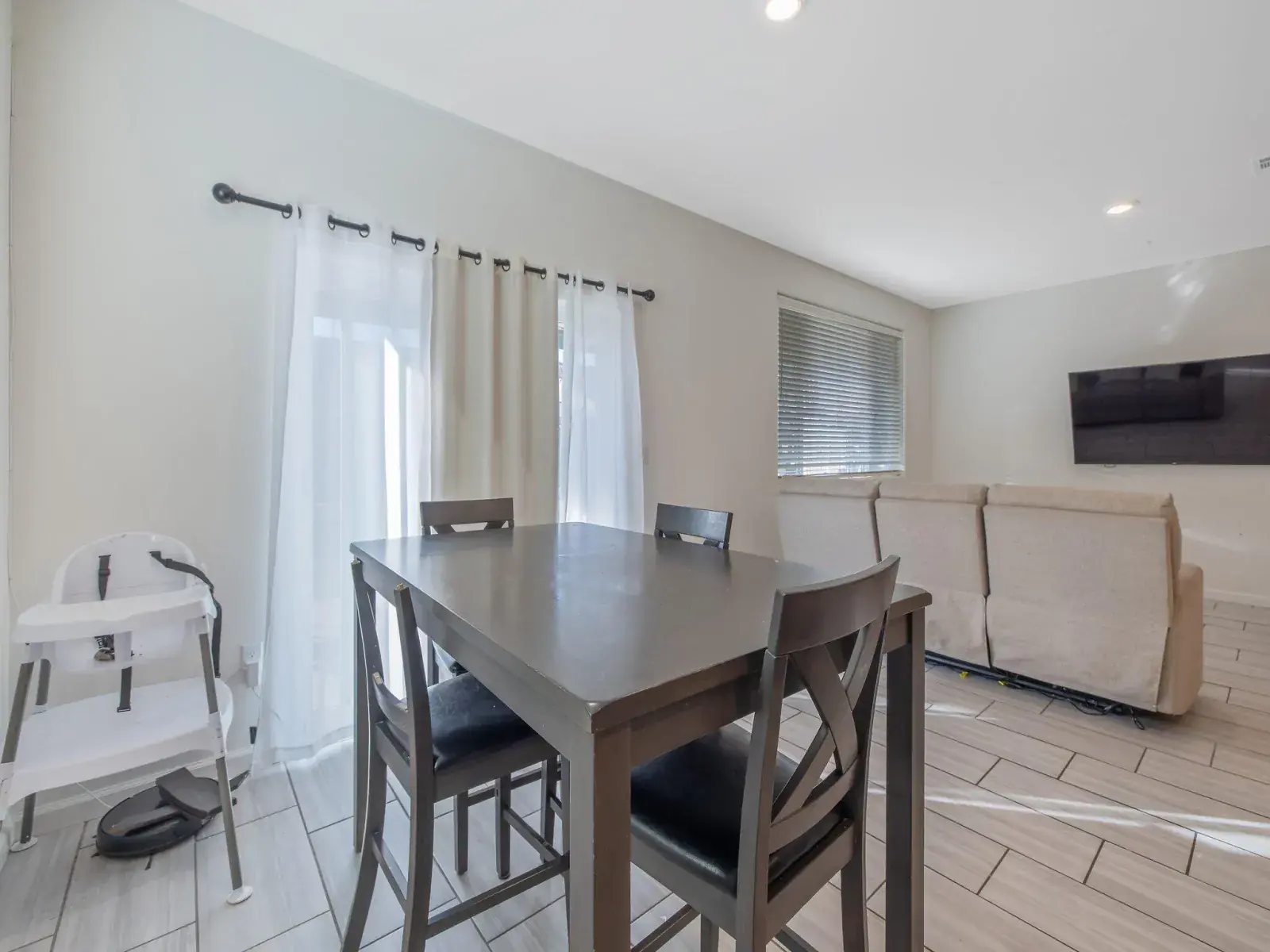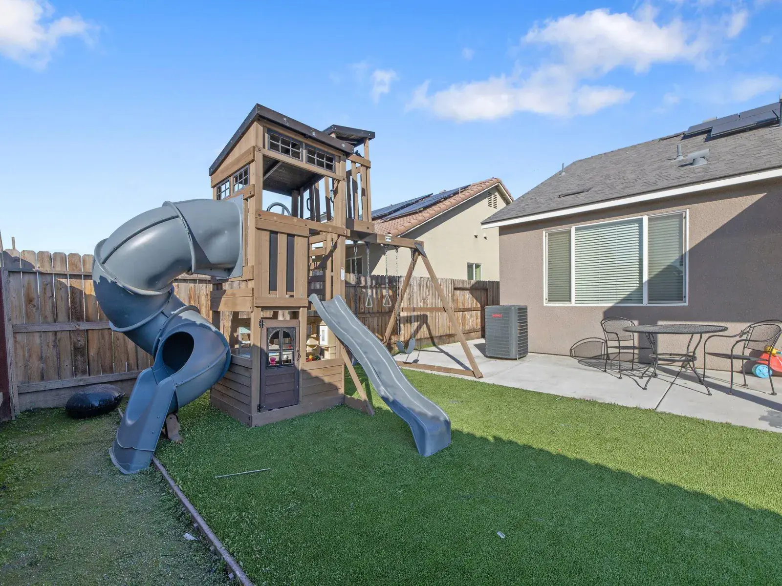 This delightful 3-bedroom, 2-bathroom home offers 1,552 sq. ft. of comfortable living space with a thoughtful split floor plan. The property features tile flooring throughout, ensuring both style and easy maintenance. Enjoy the beautifully landscaped backyard with pet-friendly turf, a covered patio for relaxation, and a convenient side iron gate with RV accessibility. This home is a perfect blend of functionality and outdoor charm, ideal for making memories with family and friends.