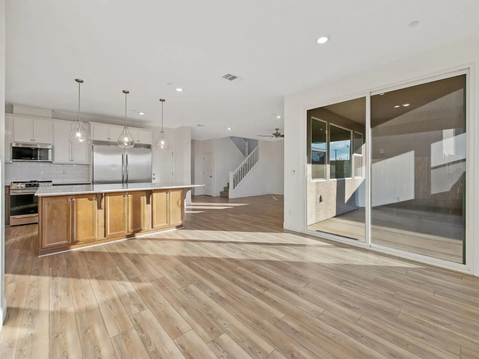 Beautifully maintained modern two-story home offering space, style, and flexibility in a desirable Visalia location. Featuring 5 spacious bedrooms, 3 full bathrooms, and over 3,240 sq ft, this open-concept layout is ideal for both everyday living and entertaining. The main level flows seamlessly between kitchen, dining, and living areas with abundant natural light. Upstairs offers a large loft perfect for a second living area, media room, or home office. The primary suite provides comfort and privacy, while all bedrooms are generously sized. Enjoy a low-maintenance backyard and the freedom of no HOA. Close to parks, schools, and shopping. Exceptional value at this price point.