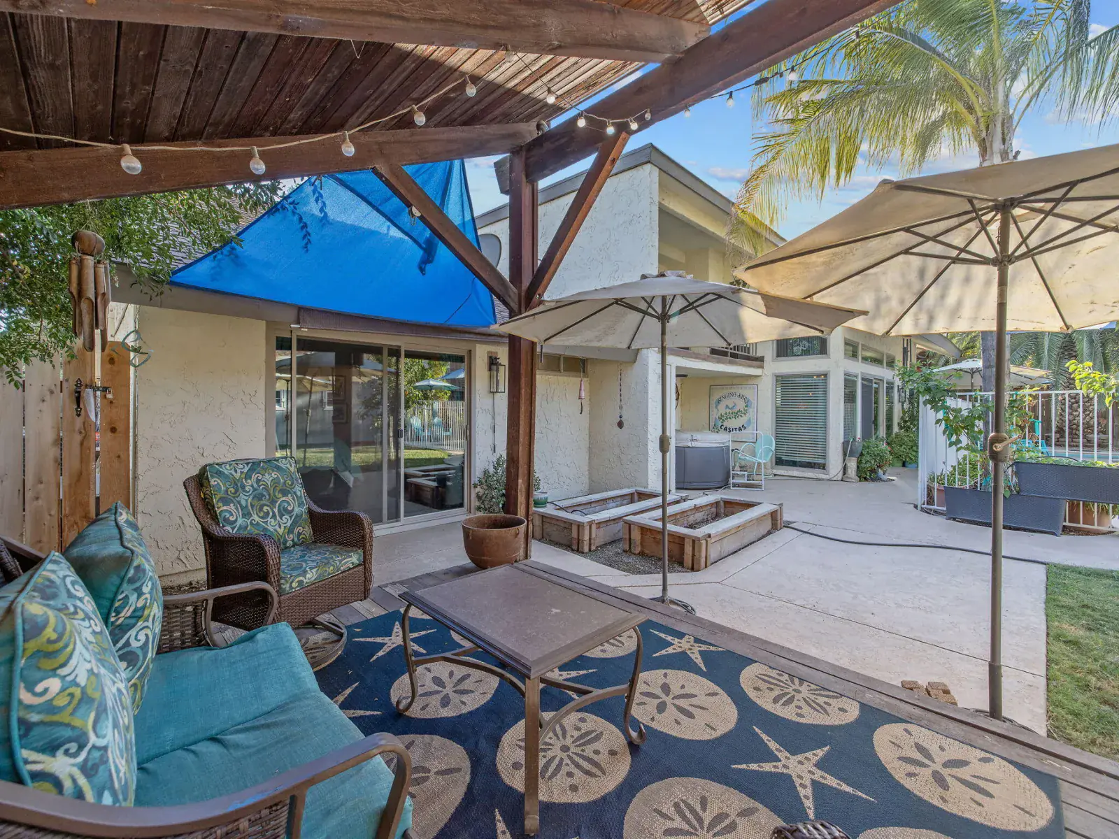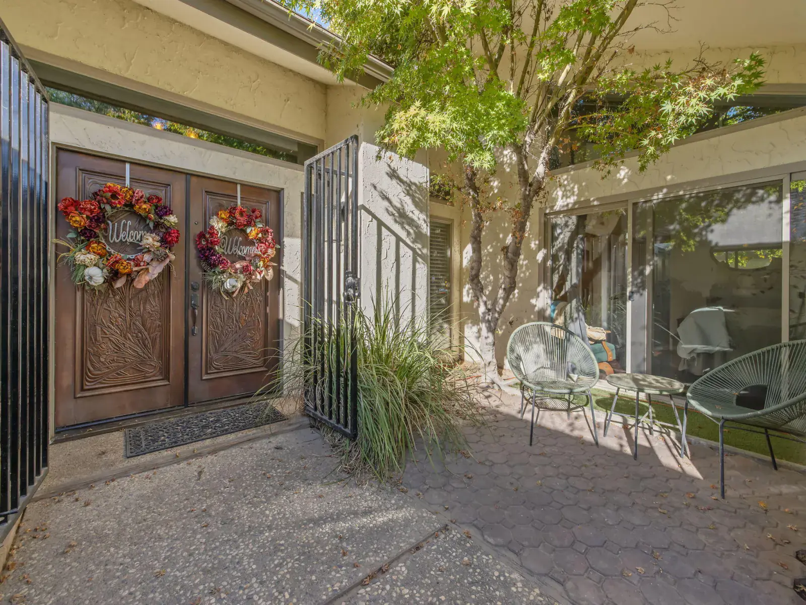 Outside, the possibilities are endless. The property offers an incredible five (5!) distinct outdoor seating areas, plus the pool deck, creating the ultimate space for entertaining or relaxing. The courtyard even features a lovely dwarf mandarin orange tree!