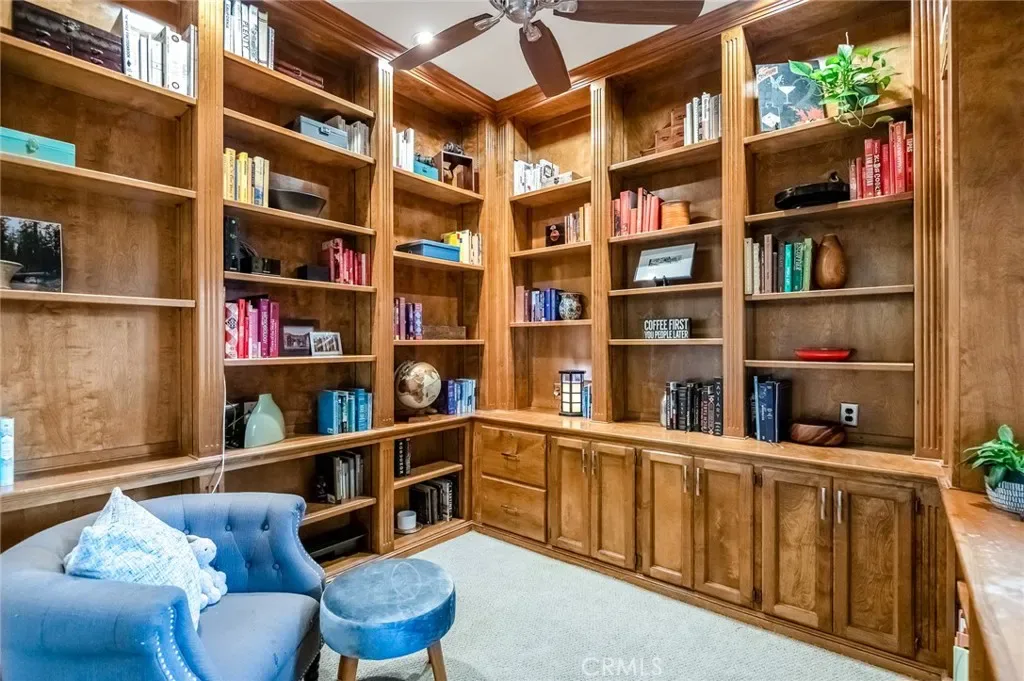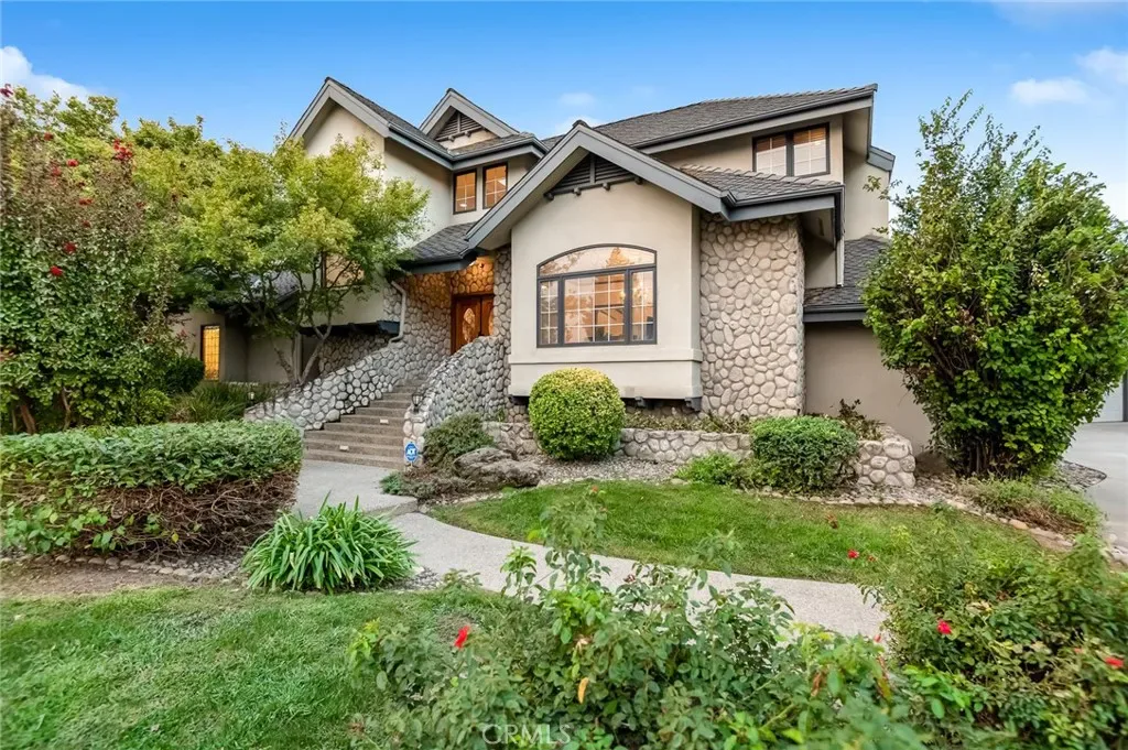 This stunning custom home is truly in a league of its own. From the striking river rock façade to the wood-cased windows, plethora of built-ins, and artful layout, every inch of this residence reflects quality craftsmanship. Enter on hardwood floors to an inviting formal dining room complete with a cozy window seat and built-in buffet—perfect for intimate gatherings or holiday dinners. The heart of the home is the impressive great room, featuring soaring ceilings, a marble-flanked fireplace and wood mantle. Adjoining this is a dream kitchen with large island topped with a dramatic copper hood, housing a gas cooktop and indoor grill. Roomy wood cabinetry, an appliance garage, prep sink, built-in kitchen desk, and pebble-tech flooring add both charm and practicality. A built-in banquette invites relaxed meals or a front-row seat to all the action. Beyond the kitchen, a multi-functional family room/den serves as the informal entry from the garage or side entrance. The spacious laundry room includes a sink, built-in desk, ironing board, and even a laundry chute from the upstairs bathroom—keeping things tidy has never been easier. A half bath with fun chalkboard walls and a generous walk-in pantry are conveniently nearby. The main-level primary suite features a sitting area with floor-to-ceiling bookshelves, a travertine-faced fireplace, coved ceiling, dual walk-in closets, granite-topped vanities, a soaking tub, and walk-in shower. Upstairs, a balcony overlooks the main living areas and connects a private bedroom with half bath on one side, and two additional bedrooms with a shared full bath on the other—ideal for family, guests, or home office. And yes, there’s even a basement! A stairway leads down to additional living space and a temperature-controlled wine room. Step outside to enjoy multiple patio spaces, a sparkling pool, an above-ground spa, and lush mature landscaping. The 3-car garage and ample driveway parking provide plenty of space for guests