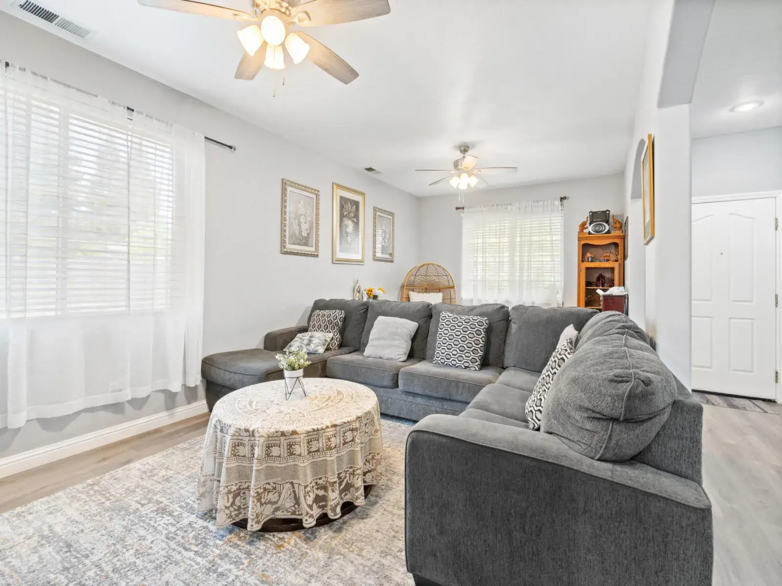 This stunning 2-story home boasts elegant features and a spacious 0.3-acre lot, perfect for creating your dream backyard oasis. Imagine a sparkling pool or a cozy ADU nestled amongst mature landscaping. Inside, the home features 5 bedrooms and 2.5 baths, including a generously sized kitchen with thoughtful details. Natural light floods the interior, ideal for entertaining family and friends. Relax on the covered patio, complete with RV parking, during summer and fall evenings. Conveniently located near schools, parks, shipping facilities, and Highway 198 for effortless commutes.