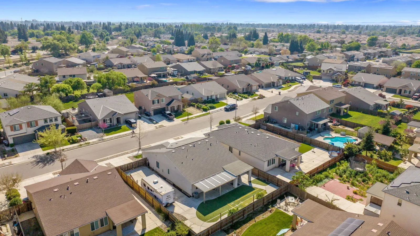 Welcome to 4002 E Cypress in Visalia, a recently built 3 bedroom, 2 bathroom home loaded with upgrades that add both value and convenience. This property features a paid oversized solar system with a battery for added efficiency and peace of mind, newly poured 6-inch RV parking with hookups, and a recently added aluminum patio perfect for relaxing or entertaining outdoors. With modern construction and thoughtful enhancements already in place, this home is move-in ready and built to impress.