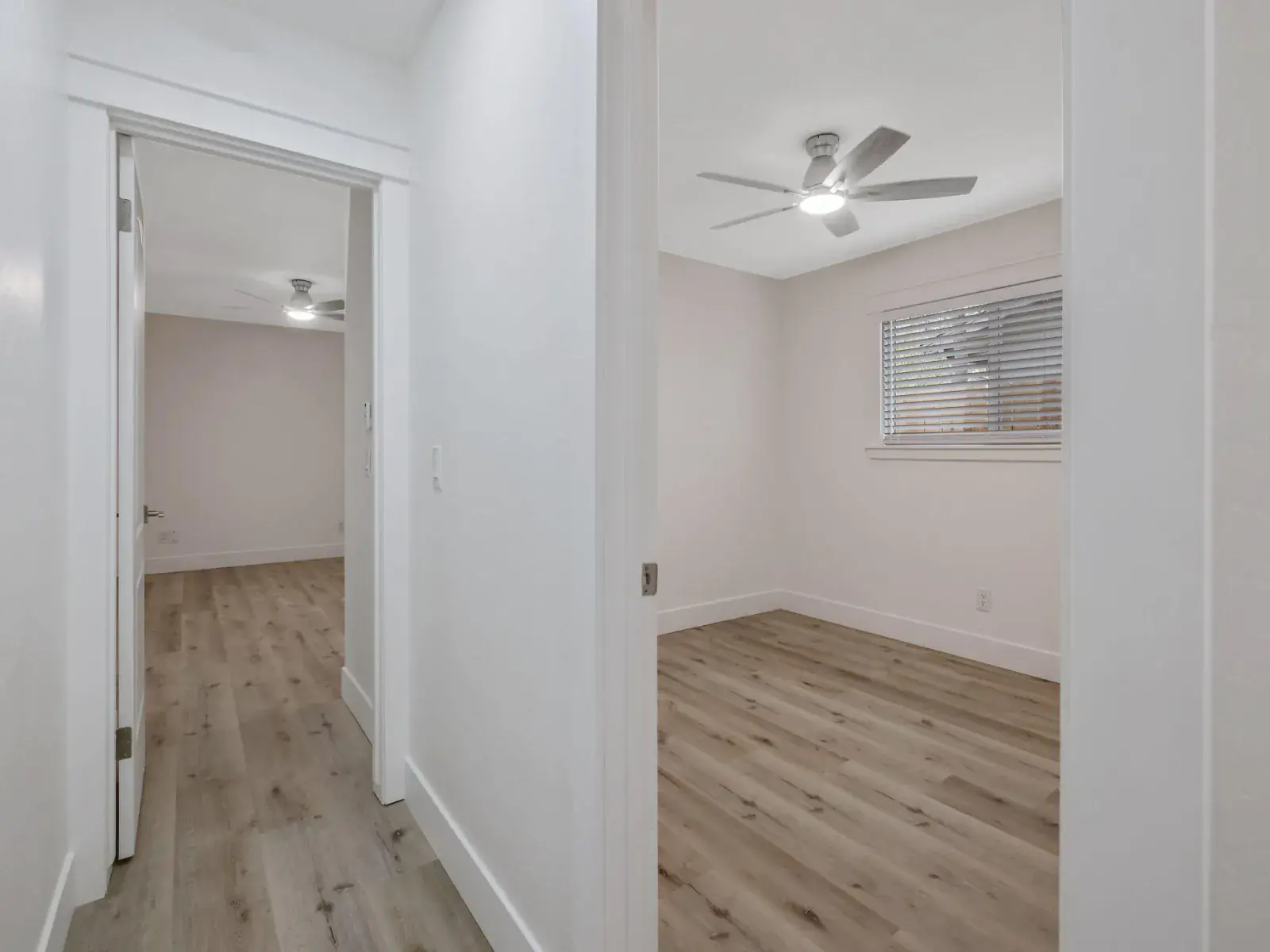 Both bathrooms have been fully remodeled with new vanities, tile flooring, lighting, fixtures, and a new bathtub. Additional upgrades include new interior doors, plus dual sliding glass doors, updated electrical throughout, new ceiling fans and lighting, and fresh wall texture, blinds, and baseboards.