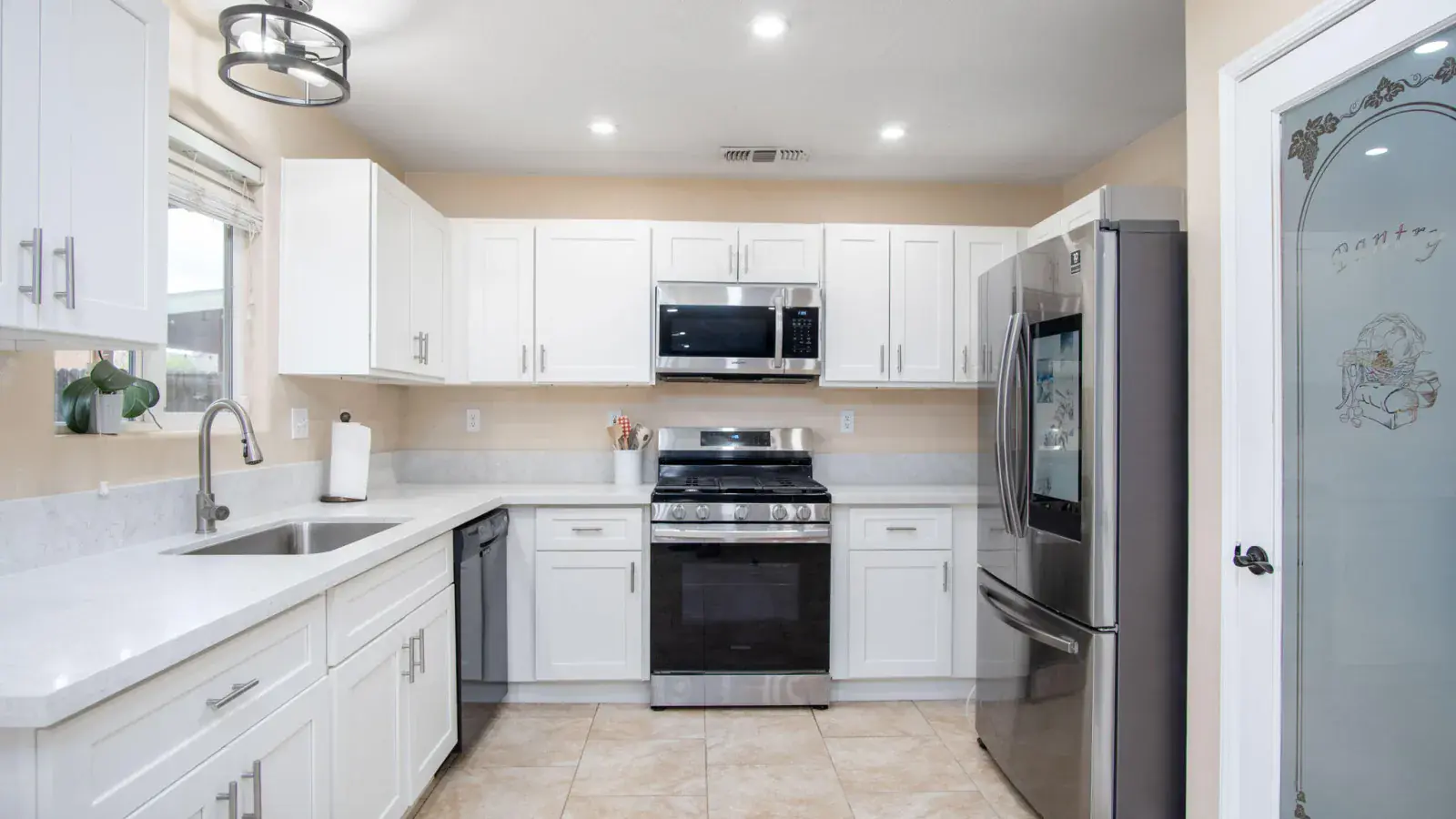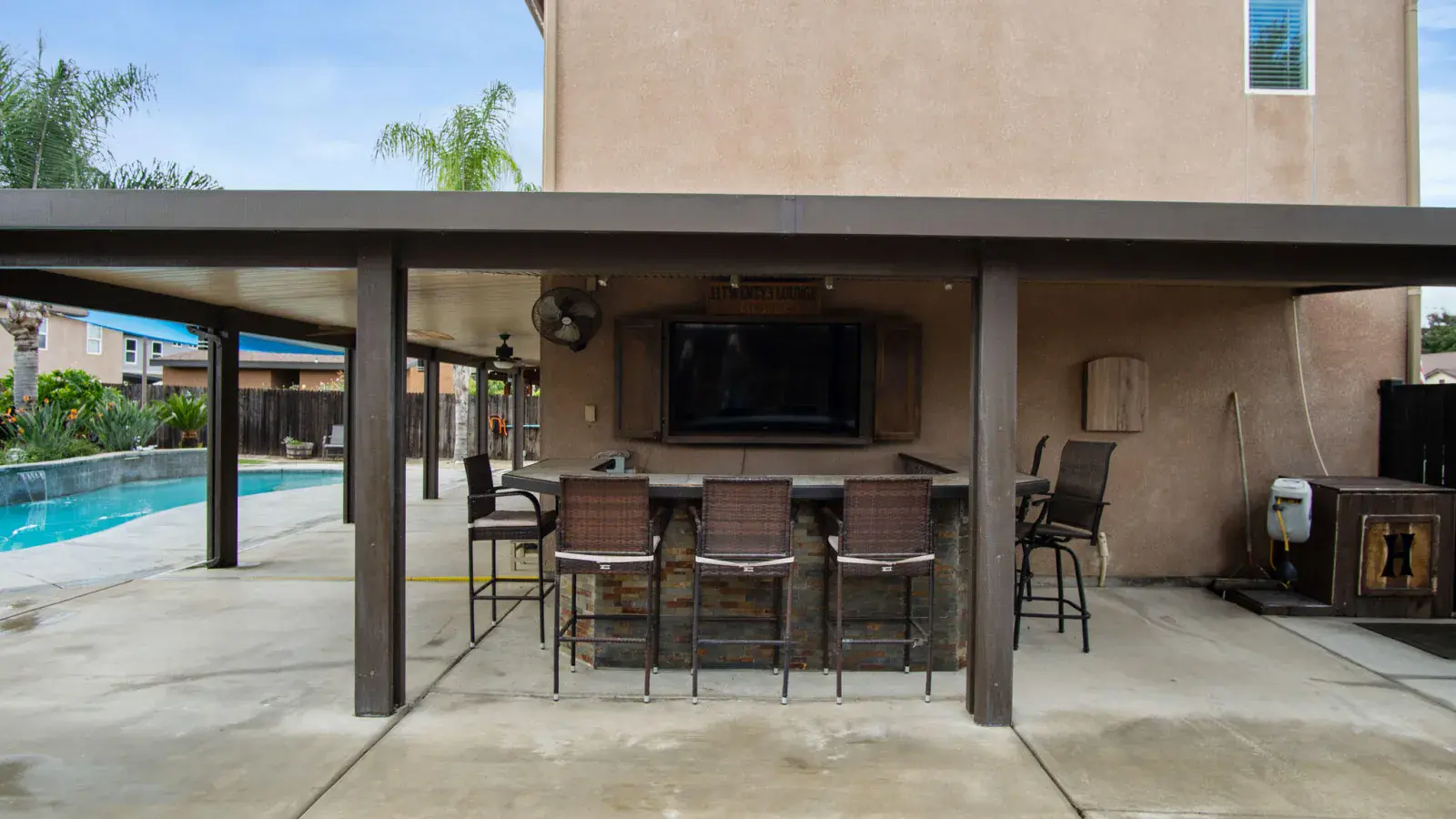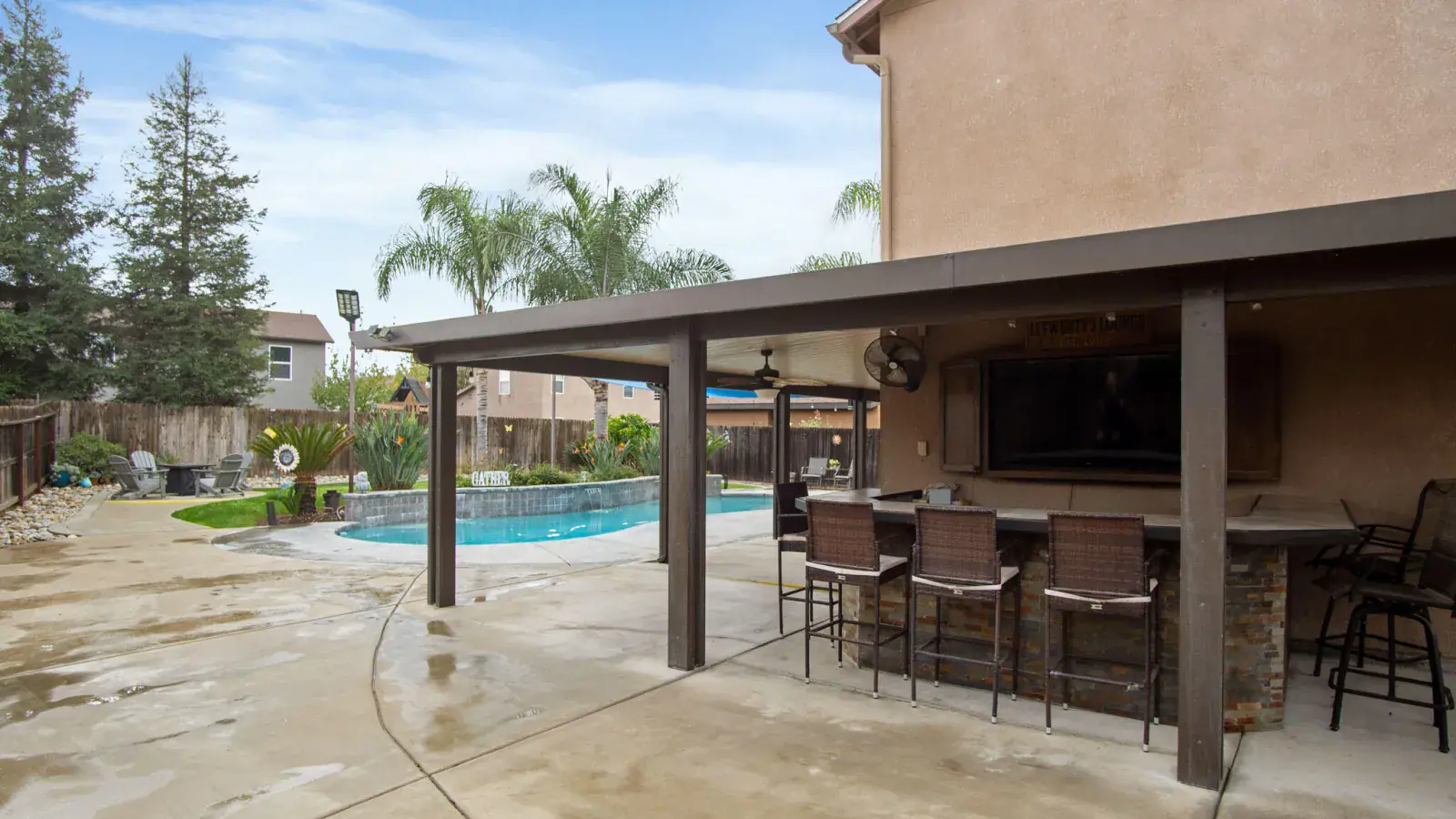 Step inside this stylish, move in ready home featuring fresh updates, a bright open layout, and a completely upgraded kitchen overlooking your backyard oasis. Enjoy summer living with an in ground pool, outdoor mini bar, and plenty of covered patio space for entertaining. Inside offers modern finishes, spacious bedrooms, and three baths perfect for comfortable everyday living. The large RV parking and owned solar make this home as functional as it is fun.