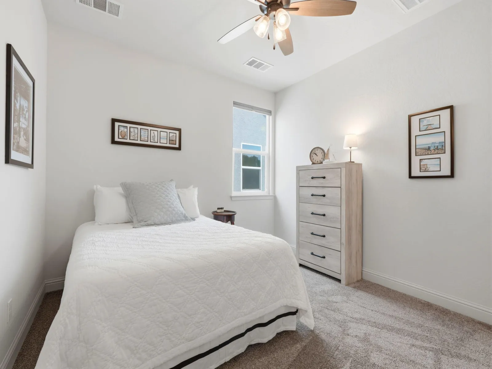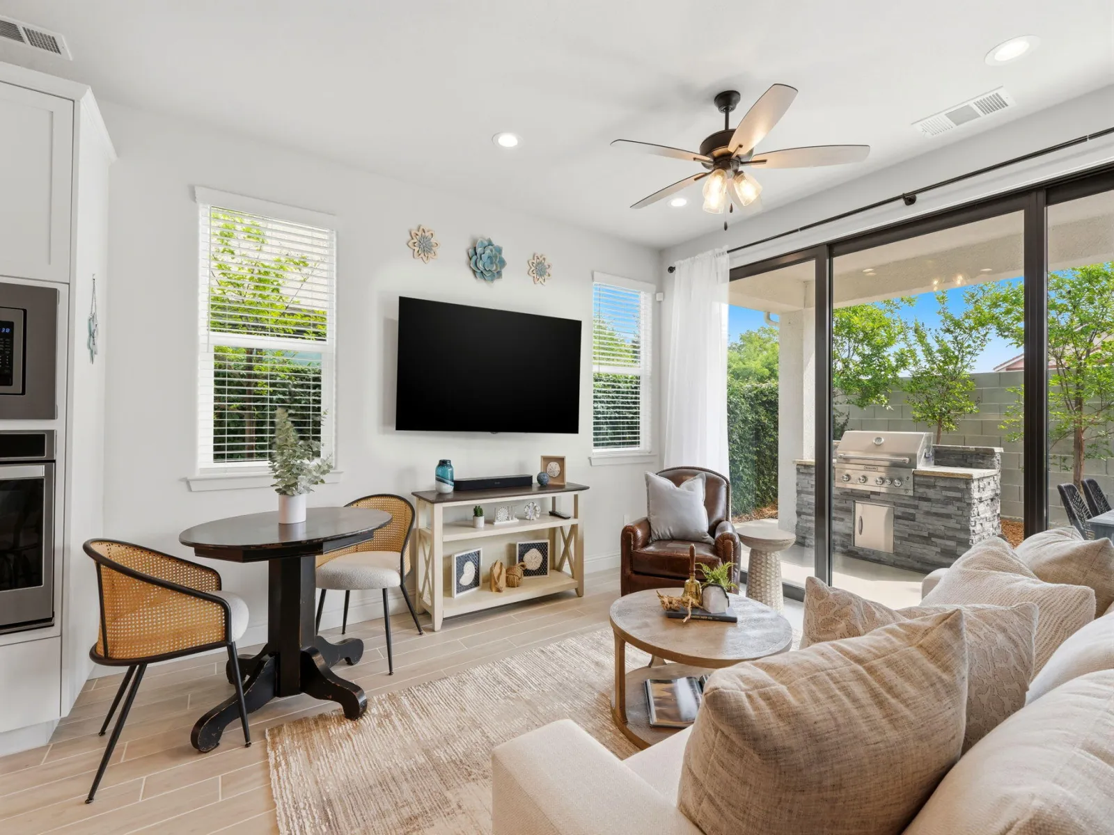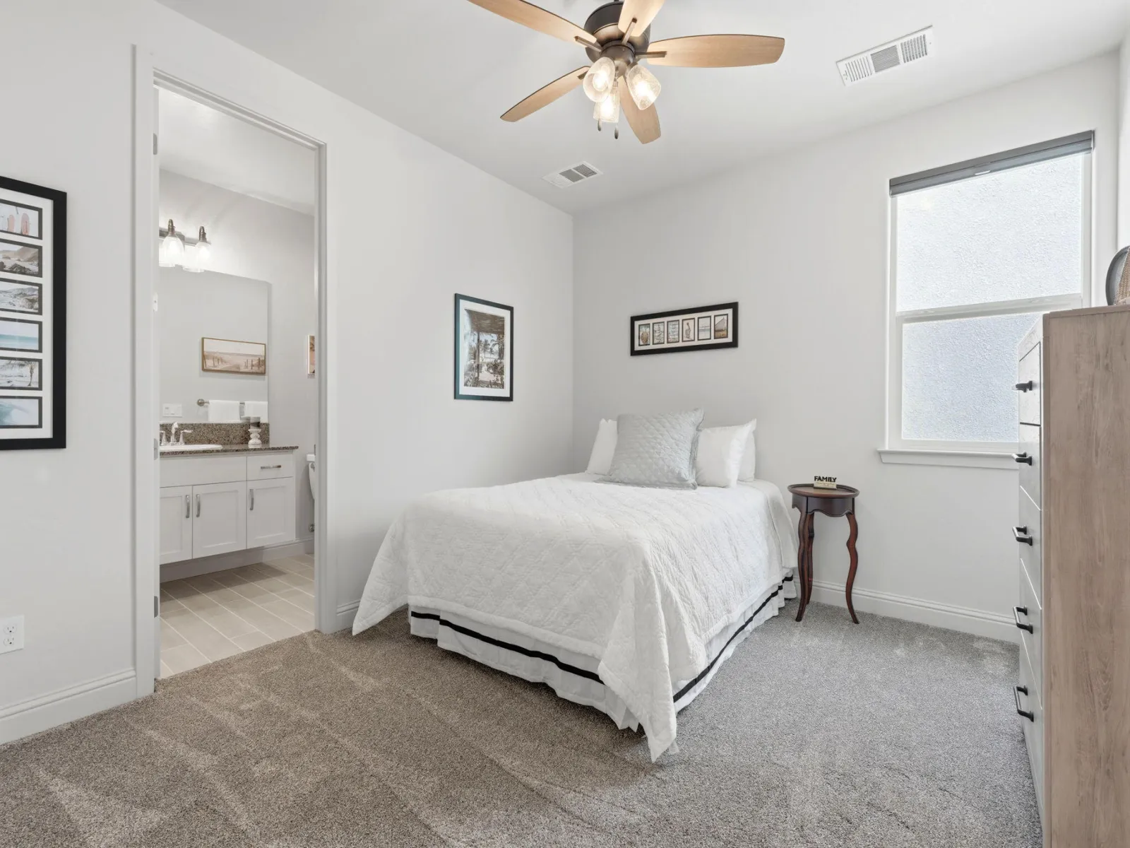 Welcome to life in the gated Southern Highlands community in Southwest Visalia—where style, comfort, and effortless indoor-outdoor living come together. This beautifully designed 3 bedroom, 3 bathroom home offers a flexible and highly desirable layout with the main bedroom suite and an additional bedroom and full bath on the first floor—perfect for multi-generational living, hosting guests, or those looking to simplify without sacrificing space. Step inside and you’re greeted with a bright, open-concept design that feels both inviting and elevated. The kitchen is truly the heart of the home, featuring granite countertops, a large island for gathering, stainless steel appliances, and seamless flow into the living and dining areas—ideal for everyday living and entertaining. One of the standout features is the expansive sliding glass doors that open from either side, creating a true indoor-outdoor experience and filling the home with natural light. Step outside to an oversized backyard designed for enjoying Central Valley evenings, complete with a covered patio and a built-in BBQ area—perfect for hosting, relaxing, and making the most of your space. Upstairs offers a private bedroom and full bath, creating the perfect retreat for guests, a home office, or added privacy when needed. Finished with a charming farmhouse-style exterior, 2-car garage, and located in one of Southwest Visalia’s most desirable gated communities near shopping, dining, and schools—this home offers a lifestyle that is both refined and easy to enjoy. Other upgrades offered throughout the home include 9 foot doors, upgraded kitchen package (cabinets, appliances, backsplash and sink), upgraded laundry room features, French doors in the owners suite and other flooring and tile throughout. Truly you must see to appreciate all this home has to offer.