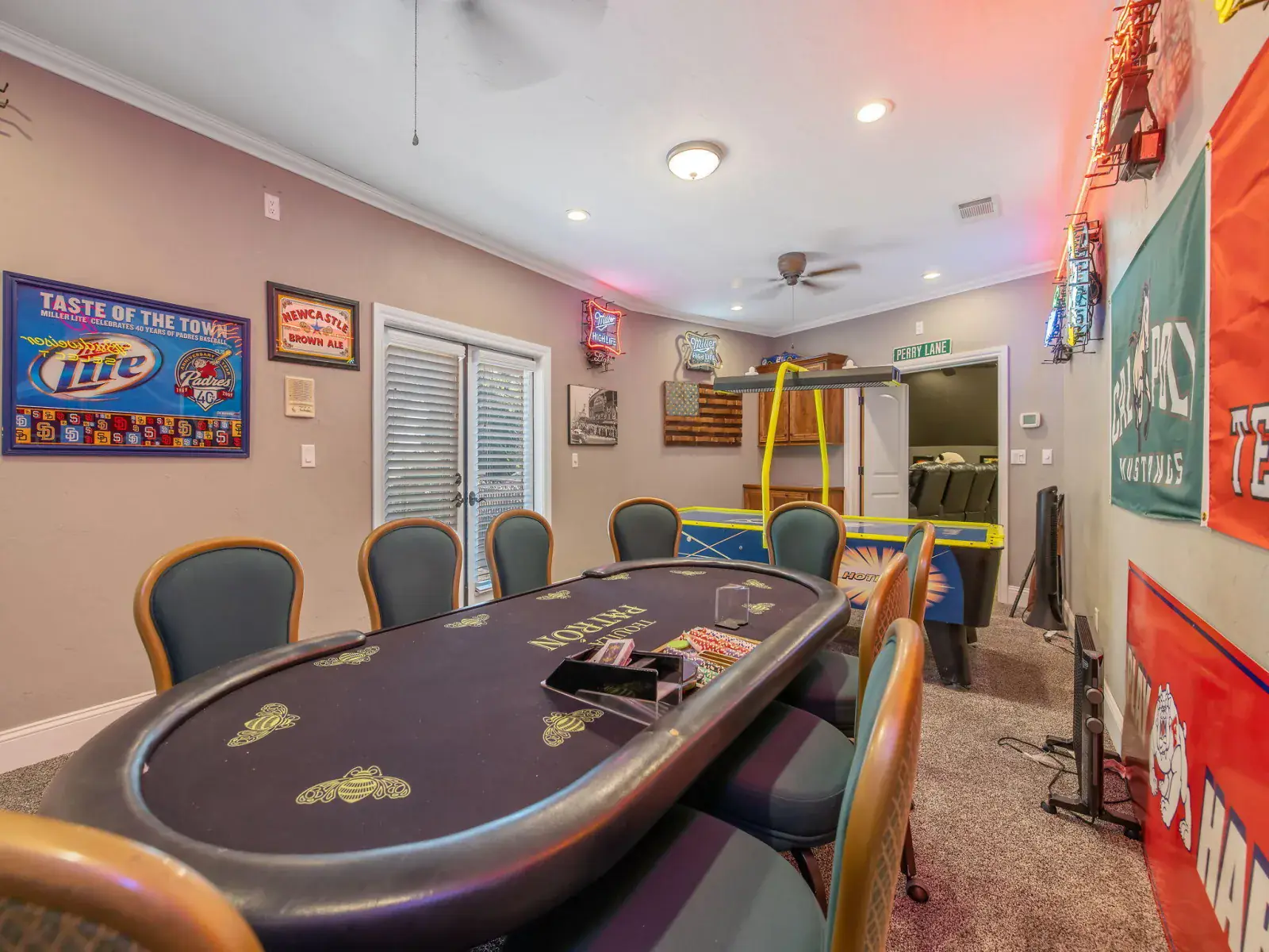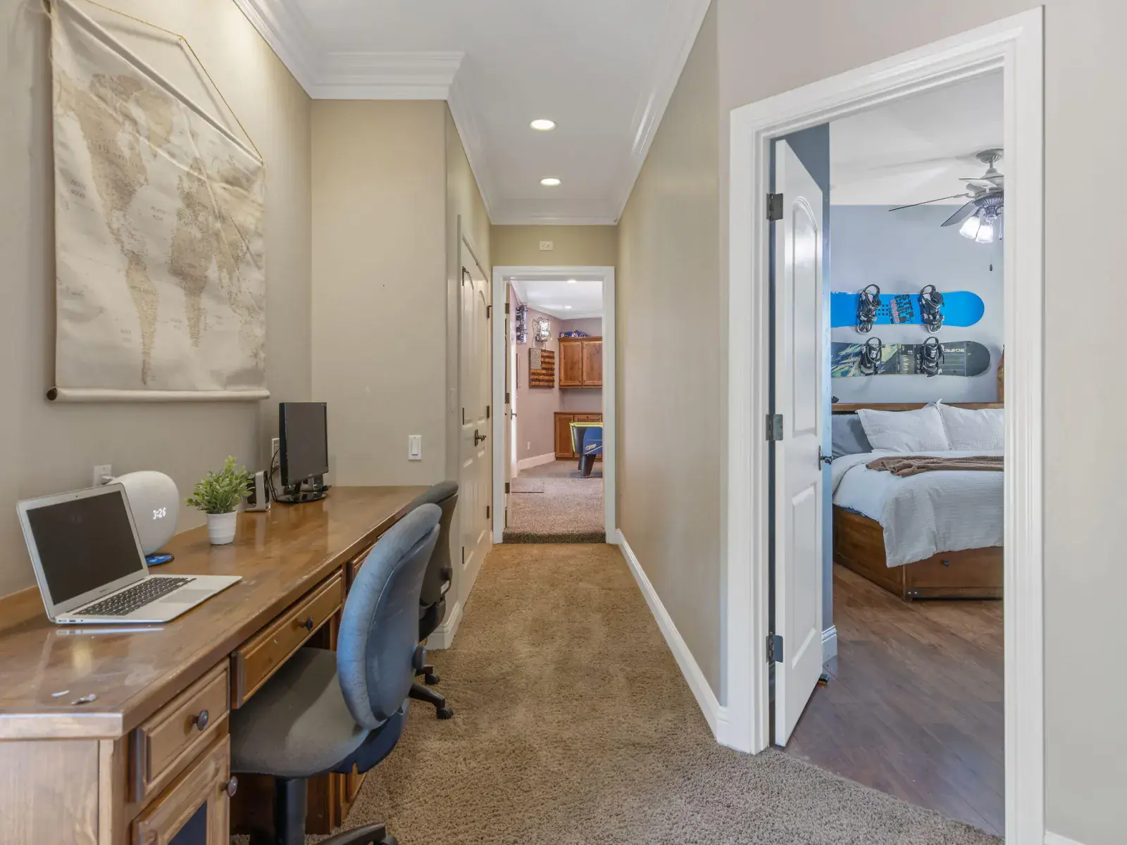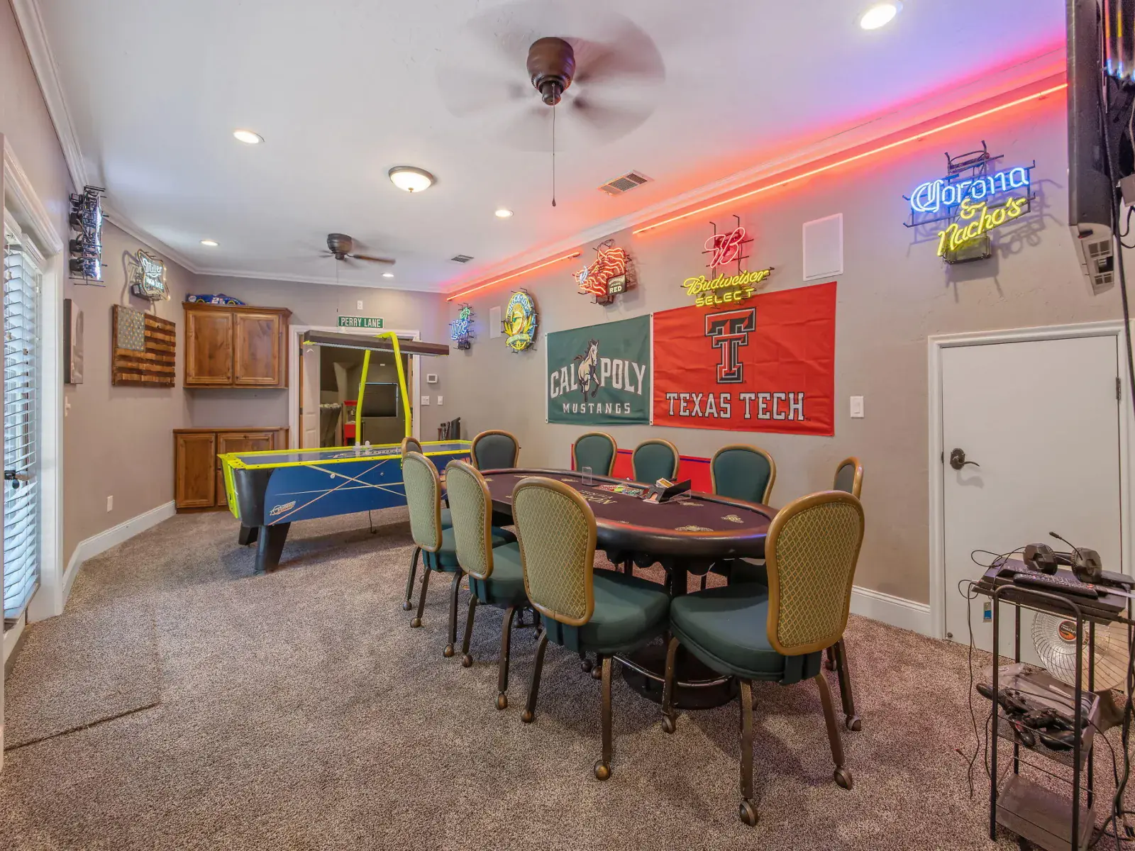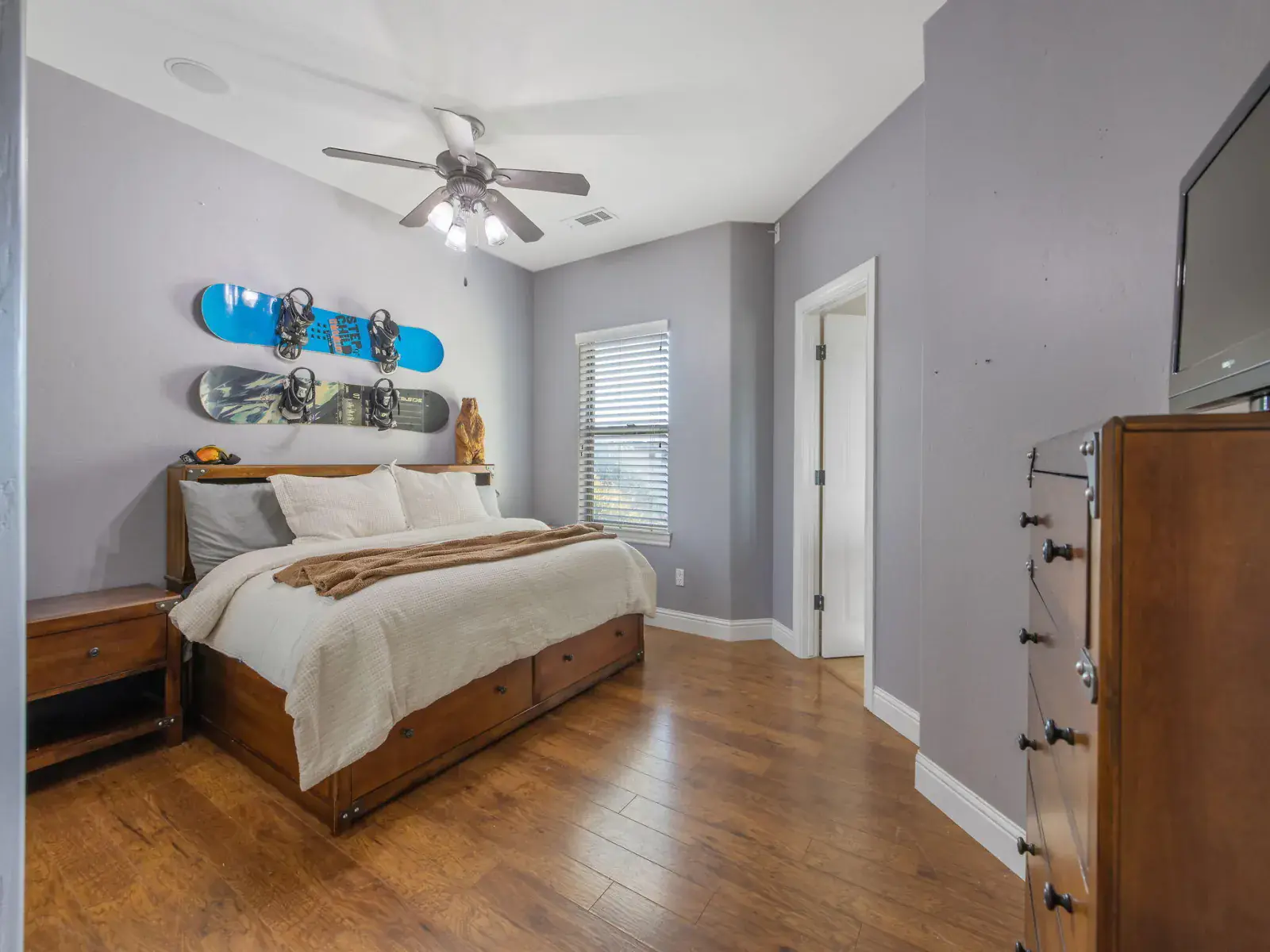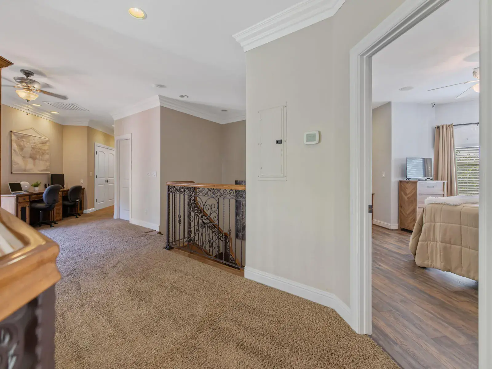 Gorgeous, luxurious estate situated on 1.28 Acres in prime SW Visalia location! Located in the highly desirable rural corridor between NE Tulare and SW Visalia, this custom 5 bed, 3.5 bath luxury home offers a country setting, conveniently located near schools, shopping, and all the amenities. Beyond the private and circle drive, custom wrought iron entry doors into formal entry with two story ceilings, Cantera stone pillars imported from Mexico, and travertine floors. The great room features 20′ ceilings, a wall of windows, wood-burning fireplace, hand-scraped hickory floors, and custom built-in entertainment. Showstopping chef’s kitchen is with two islands, granite countertops, Sub-Zero fridge, Wolf range with double ovens, Butler’s pantry, Knotty Alder cabinetry, under-cabinet lighting, and custom stained glass details. A built-in desk sits just off the kitchen, along with a spacious laundry room and mudroom with built-in bench leading to the 4-car garage. The luxurious ground-floor primary suite features a sitting area, his and hers walk-in closets, French doors to a private patio with above-ground jacuzzi, and spa-like bath with marble countertops and tub surround. A private office (or 5th bedroom) and powder bath with outdoor access round out the main level. Upstairs, a landing with built-in desks and shelves, three spacious bedrooms (Jack & Jill + en suite), a bonus/game room (room for air hockey table, as shown, and more!) with French doors to a deck overlooking the backyard, and a custom home theater with projector, screen, seating, and storage. Outdoors, enjoy an entertainer’s dream setup: covered patio, outdoor kitchen with built-in grill, fridge, gas cooktop, and serving space. The beautifully landscaped yard features mature trees for shade and privacy. Around the property, discover fruit trees (pomegranate, lemon, lime, persimmon, and more), RV parking, chicken coop, dog run, and even an in-ground deep pit. Truly one-of-a-kind home – must see!